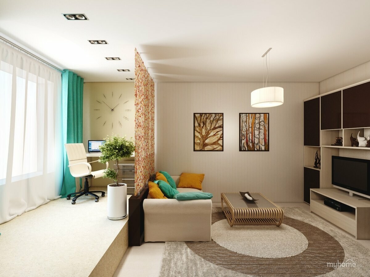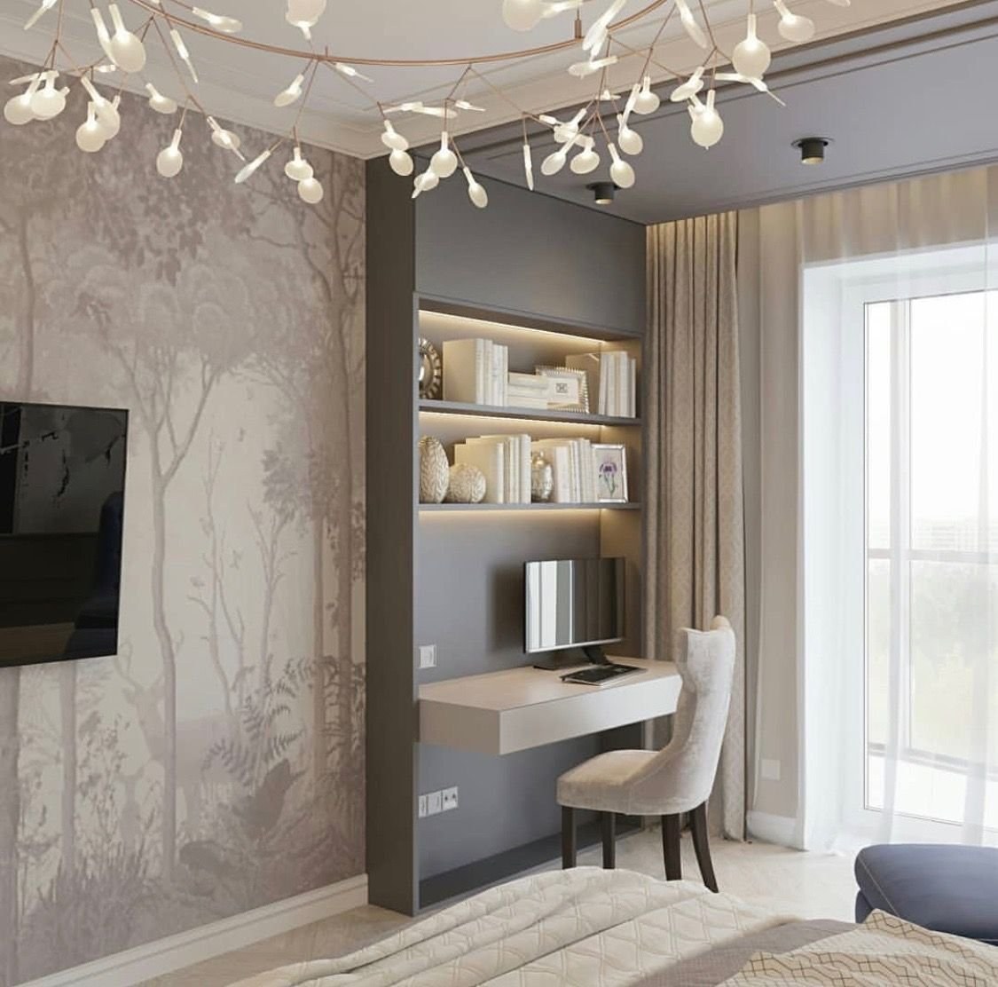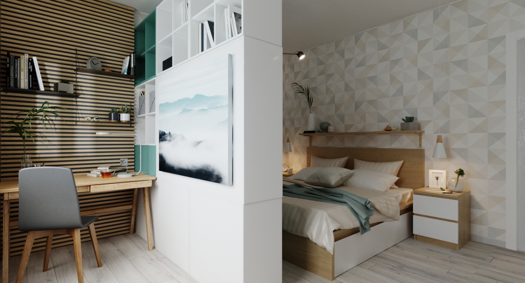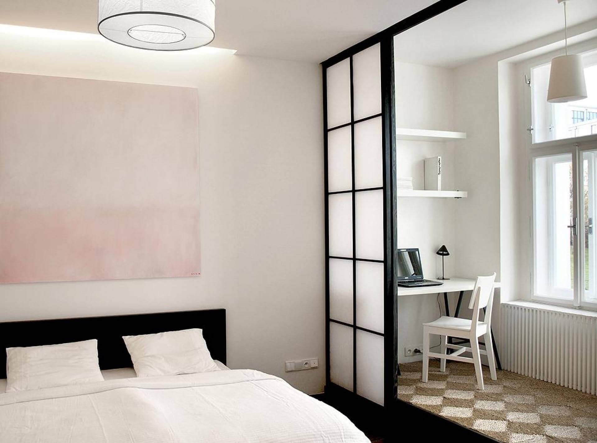 Спальня с кабинетом в одной комнате зонирование (98 фото)