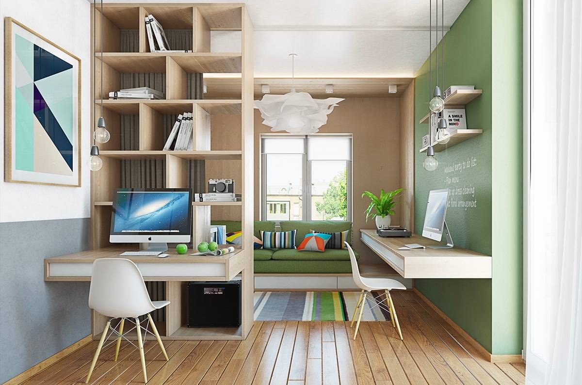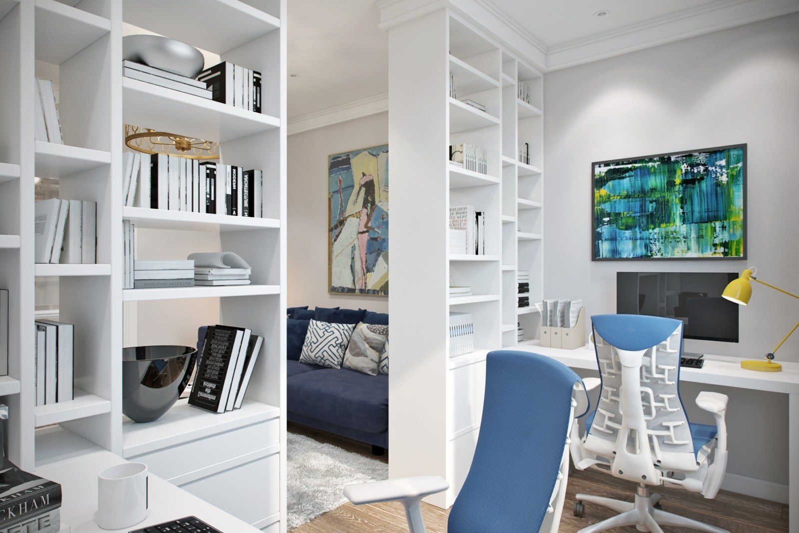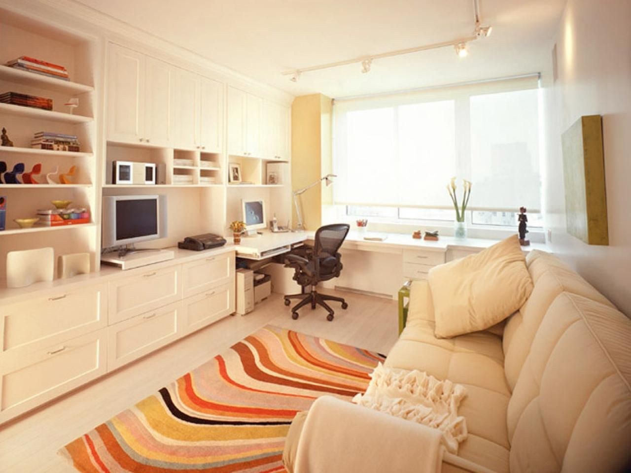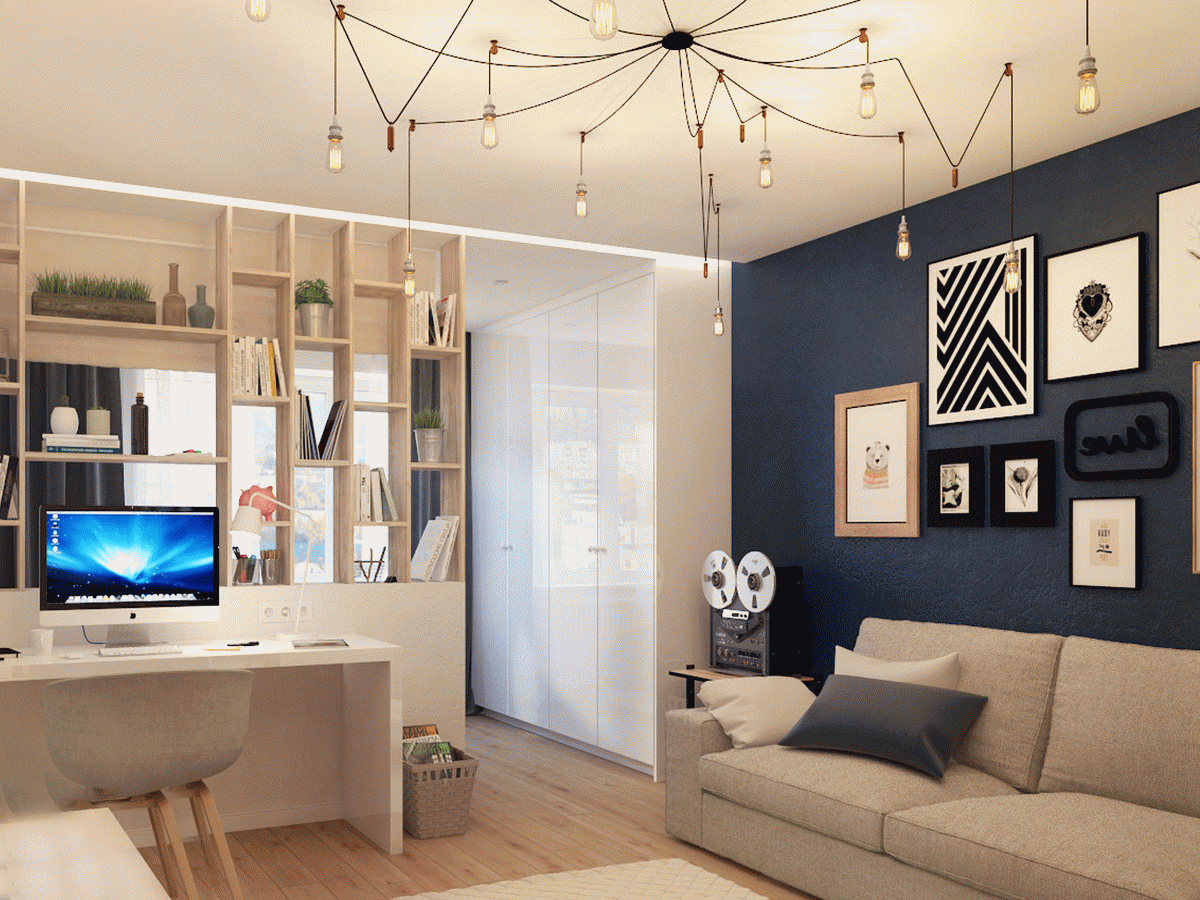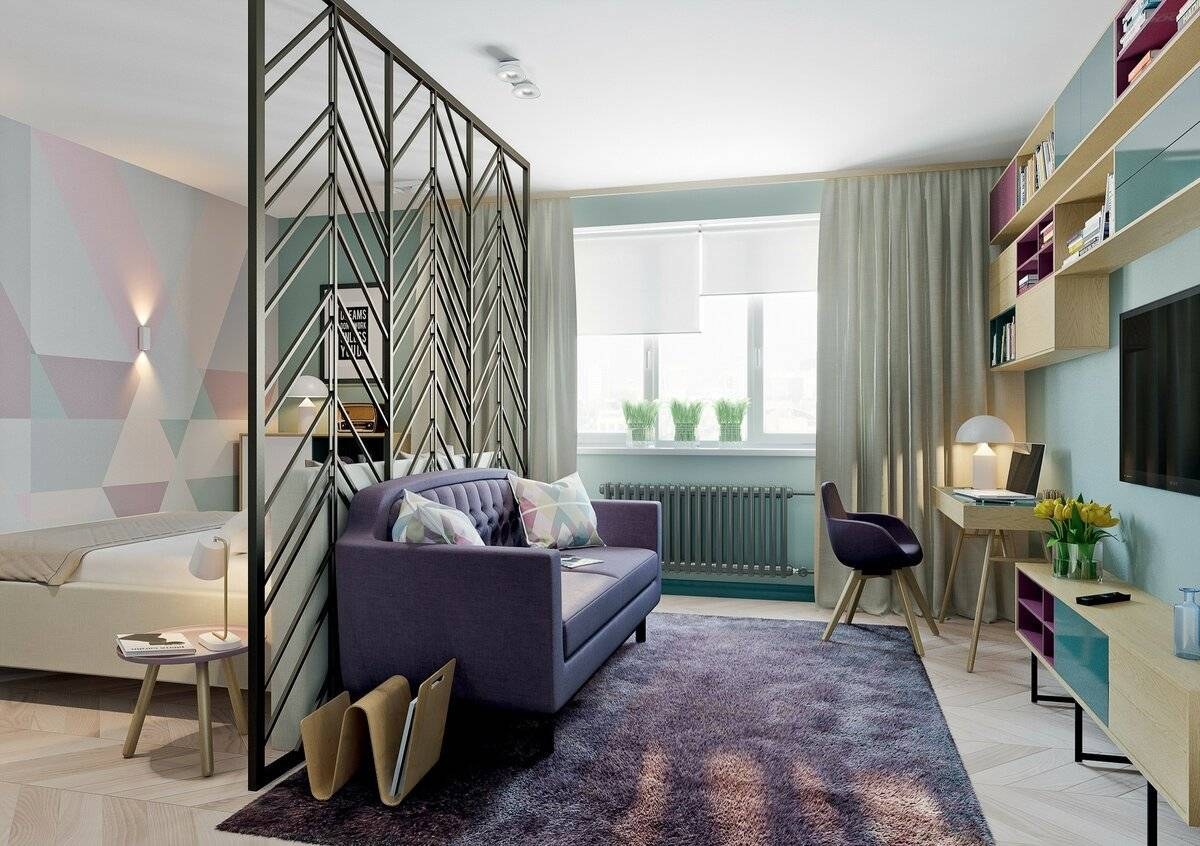 Спальня с кабинетом в одной комнате зонирование (98 фото)
