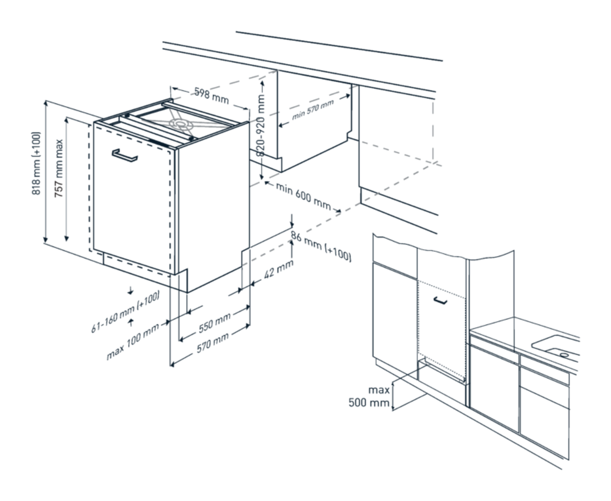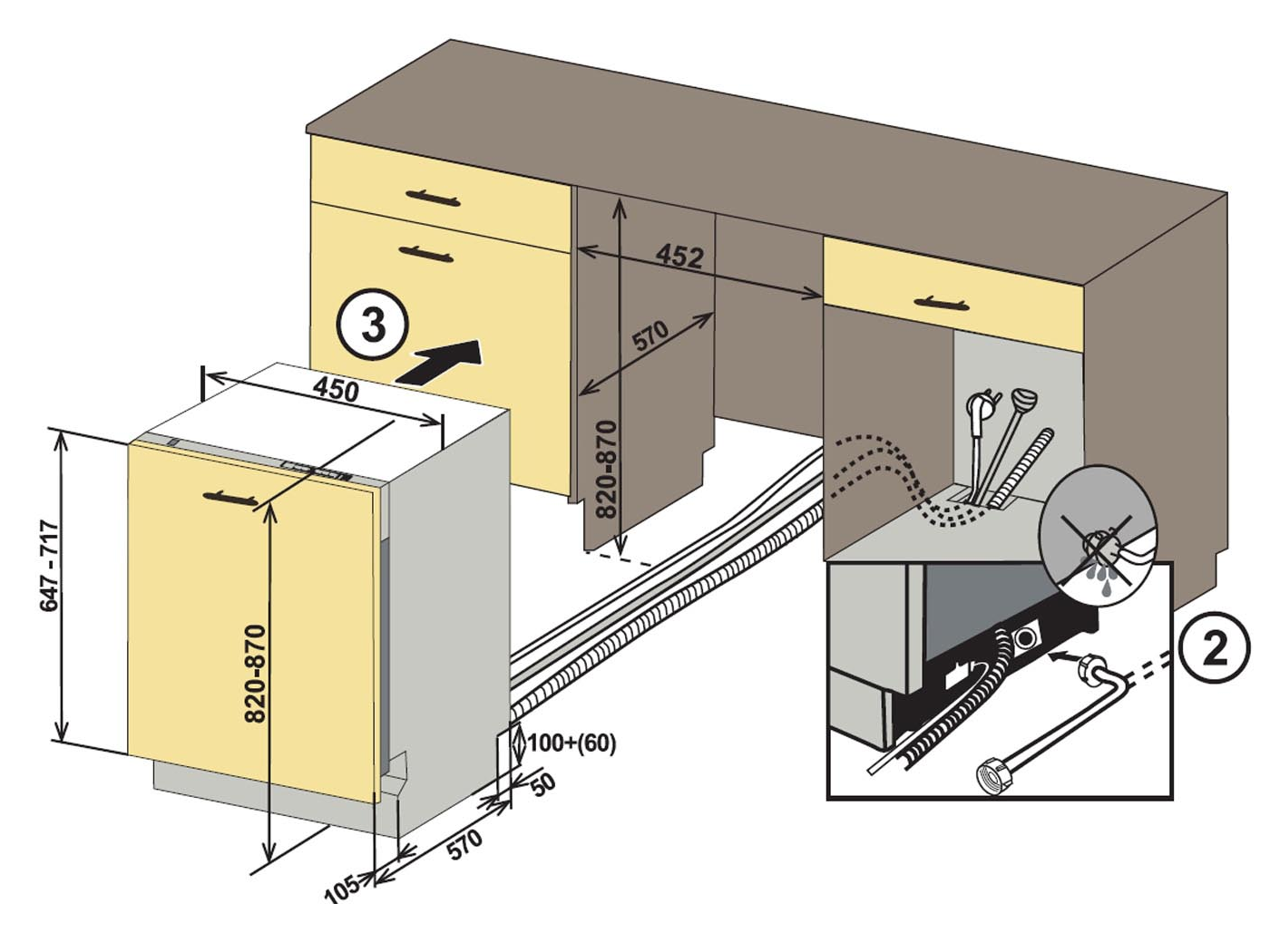 Посудомоечная машина 45 см встраиваемая схема монтажа