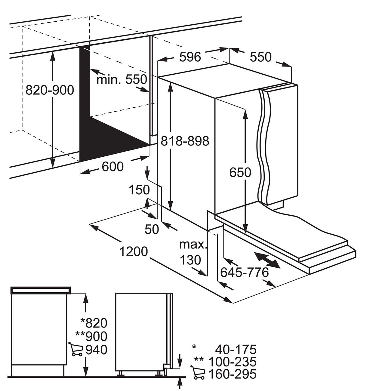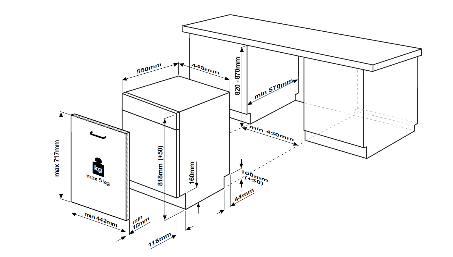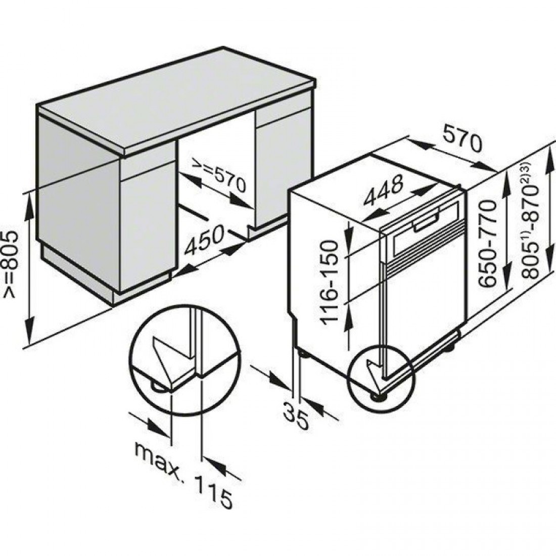 Высота посудомоечной машины встраиваемой 45 см Размеры