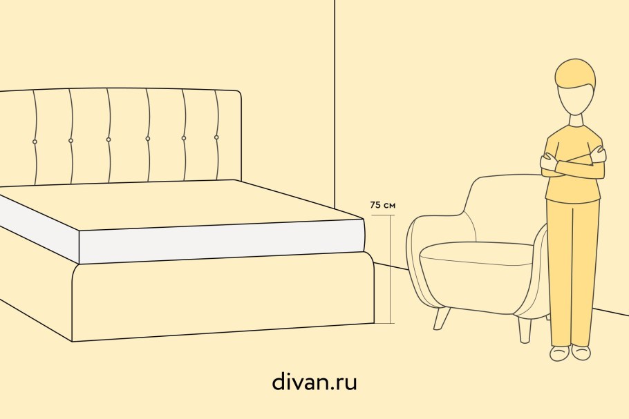 Высота двуспальной кровати с матрасом от пола (87 фото)