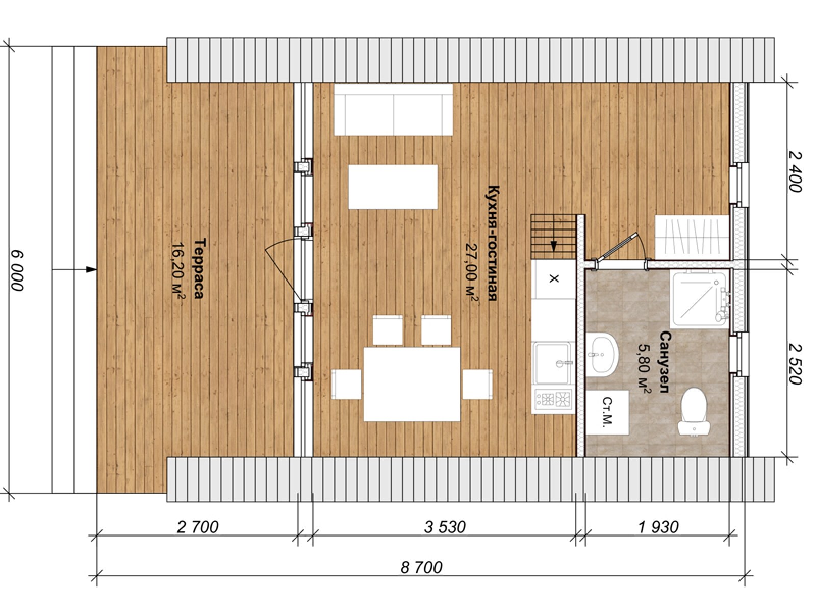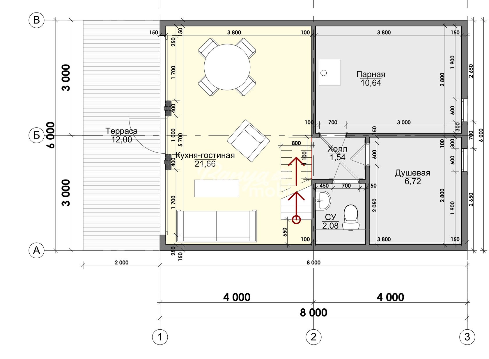Минидом модульный 6х9,2м "Вольтер" Люкс