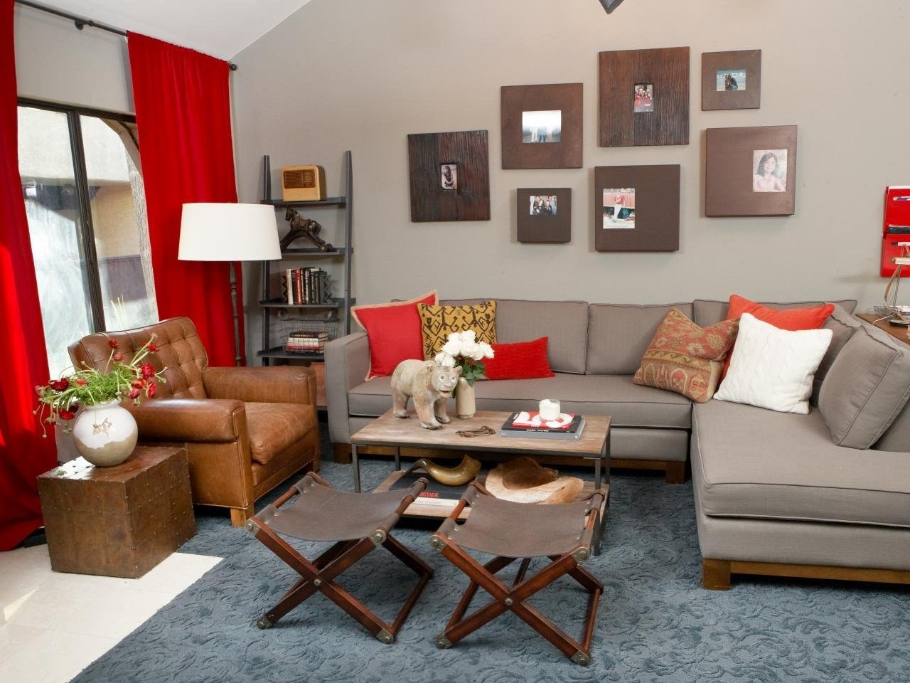 Гостиная с красным диваном