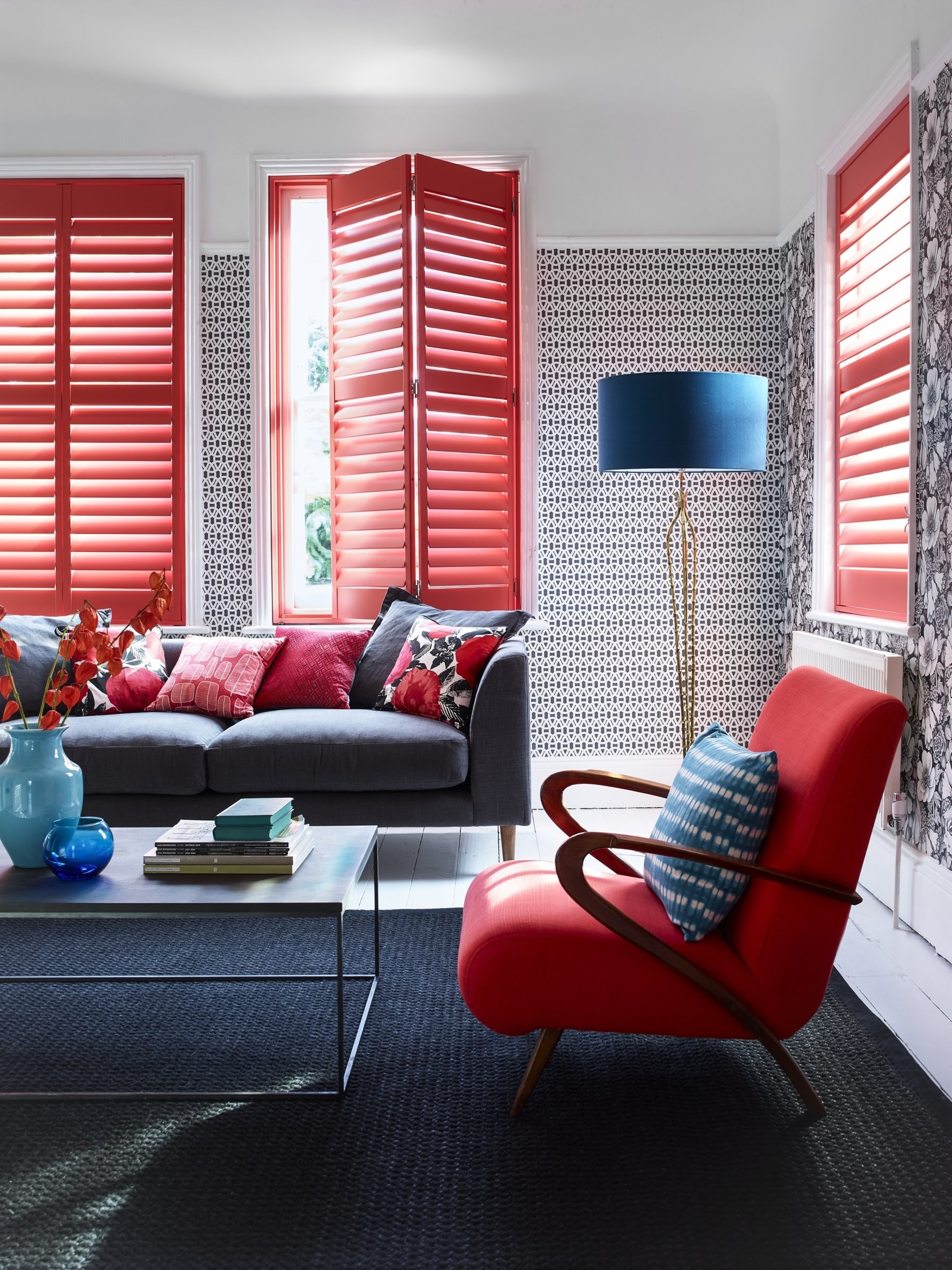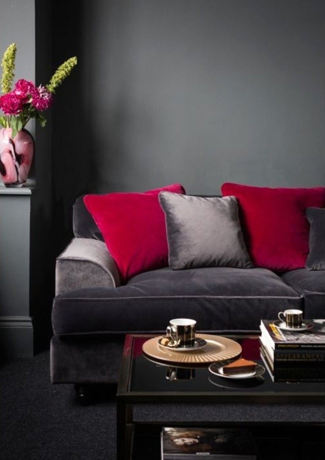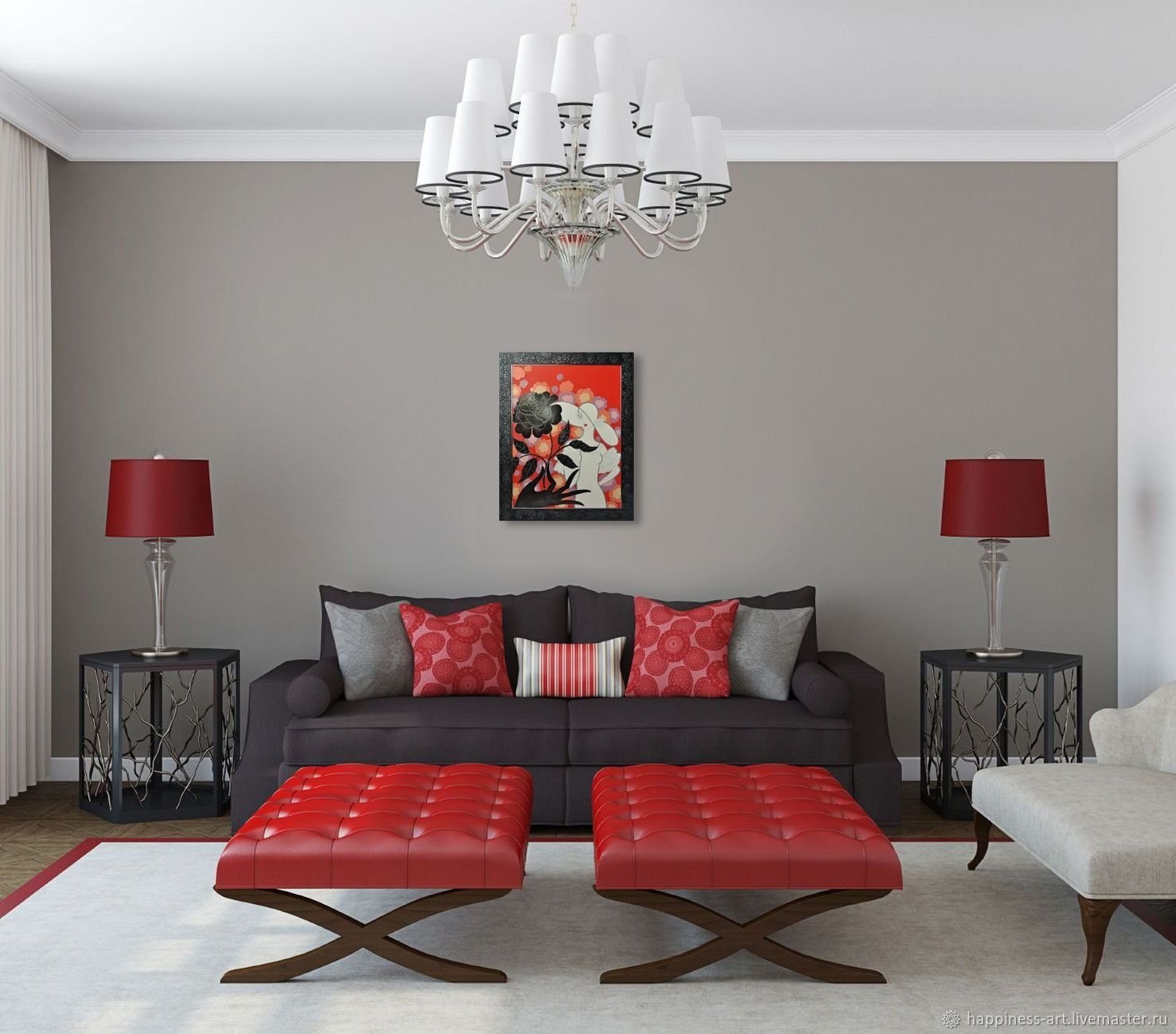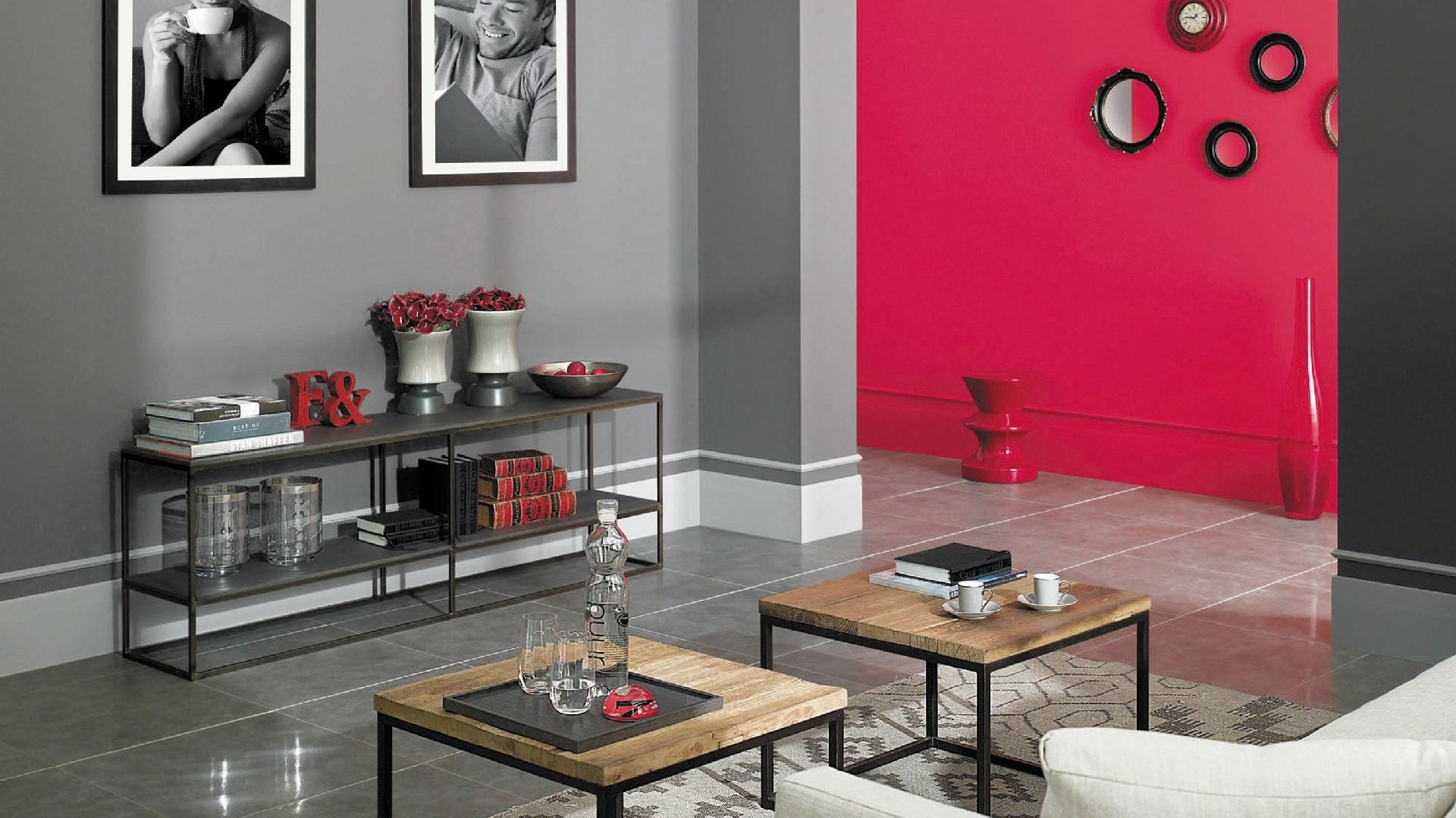 Серый с красным в интерьере