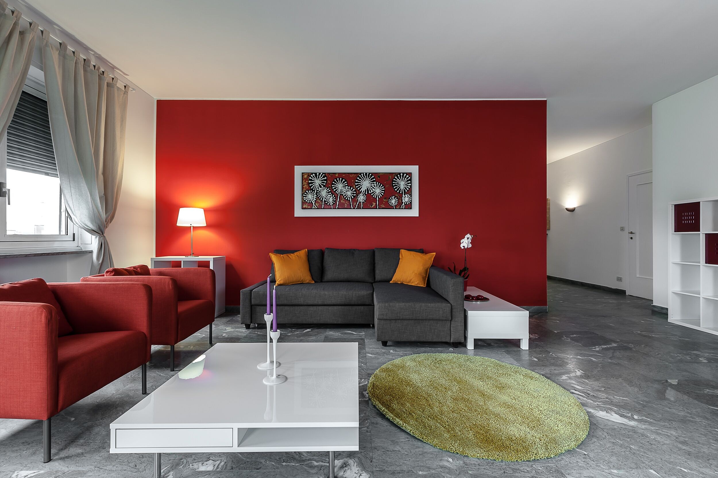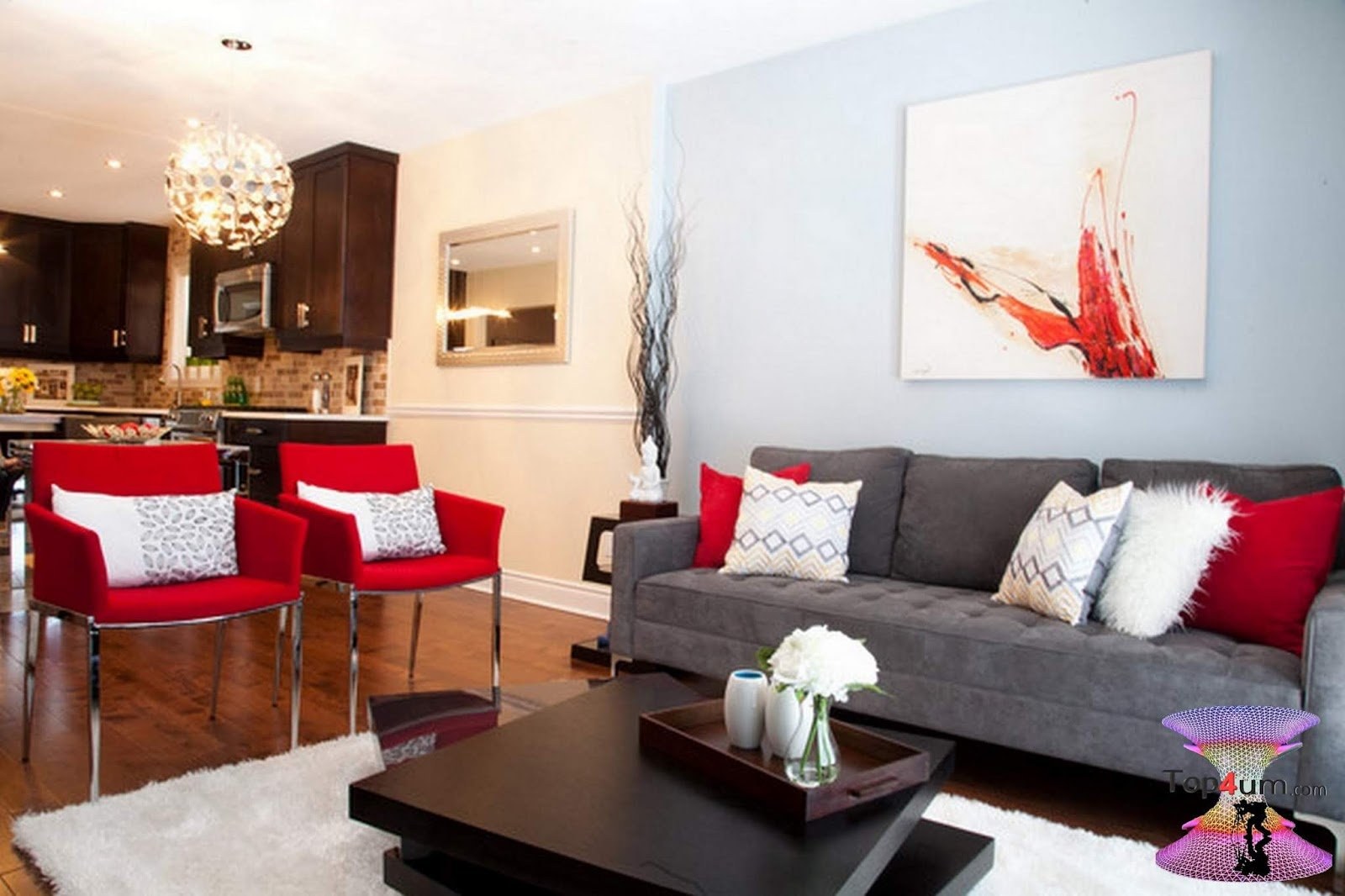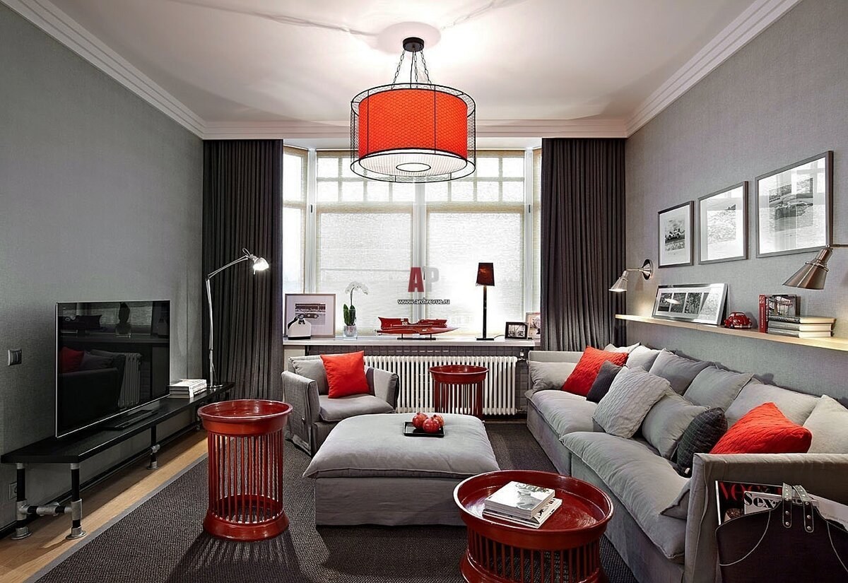 Сочетание серого и красного в интерьере