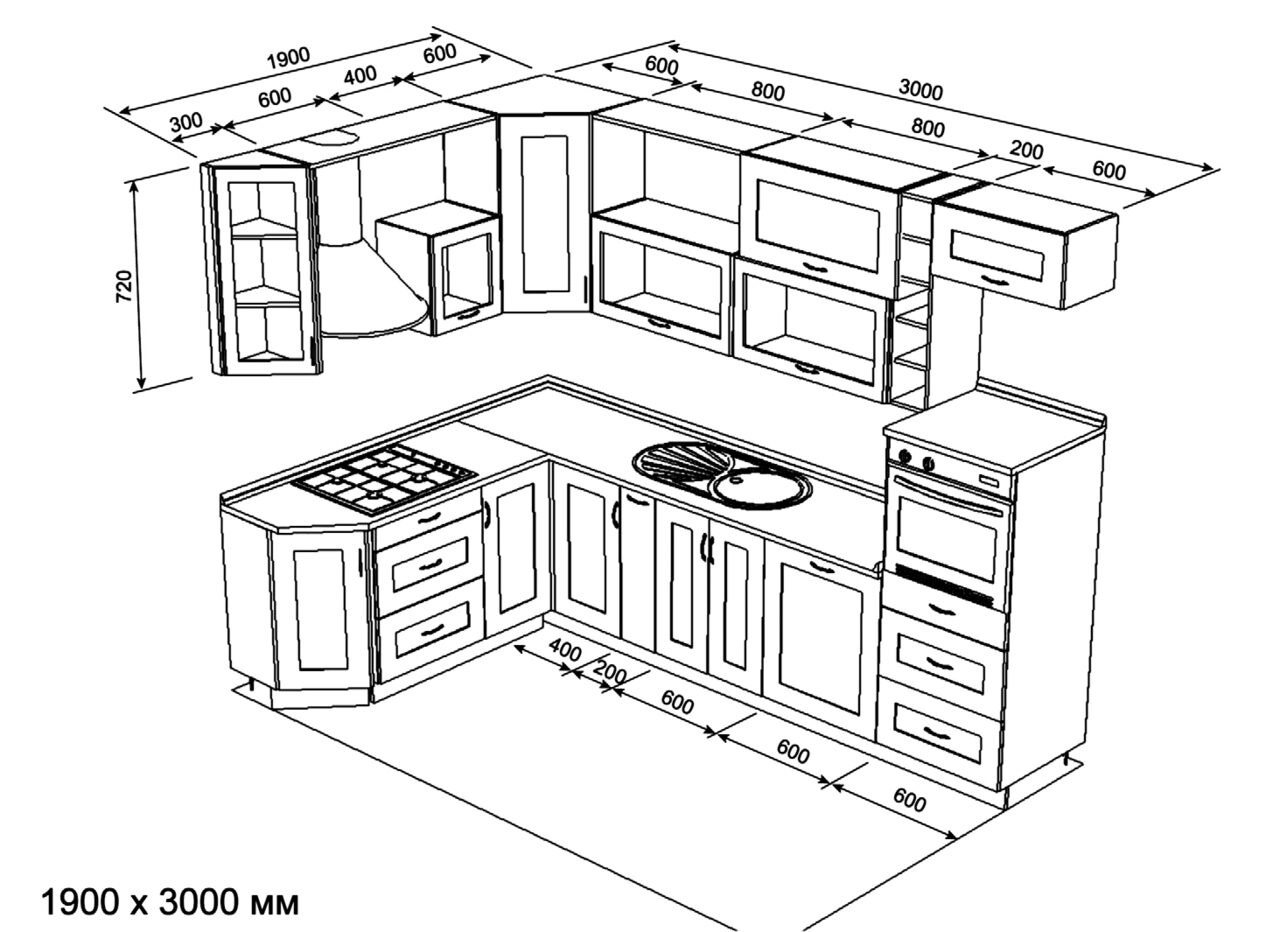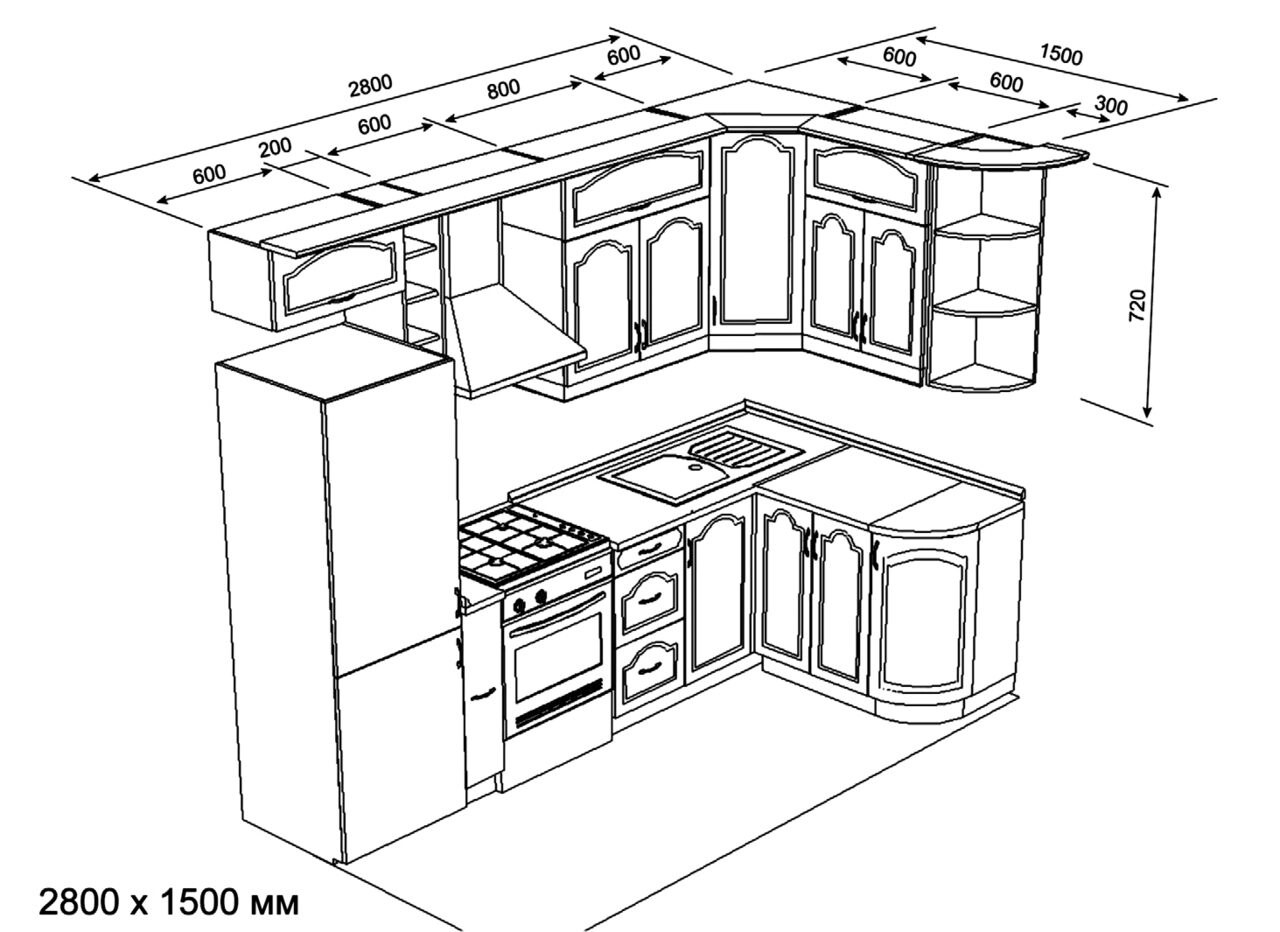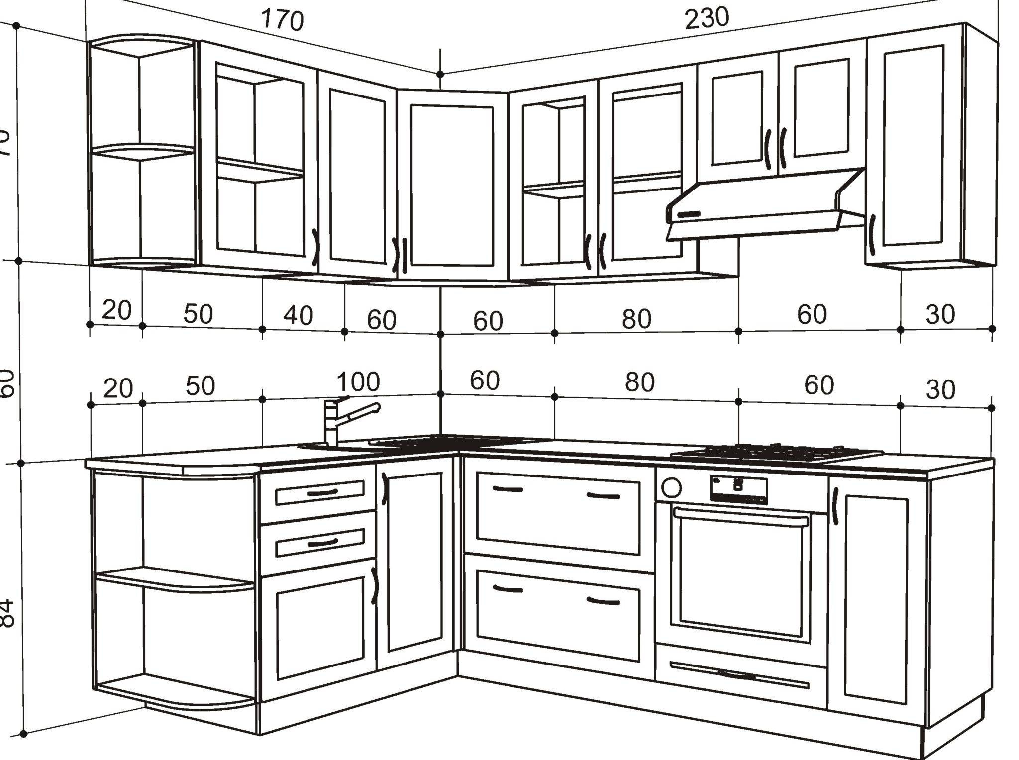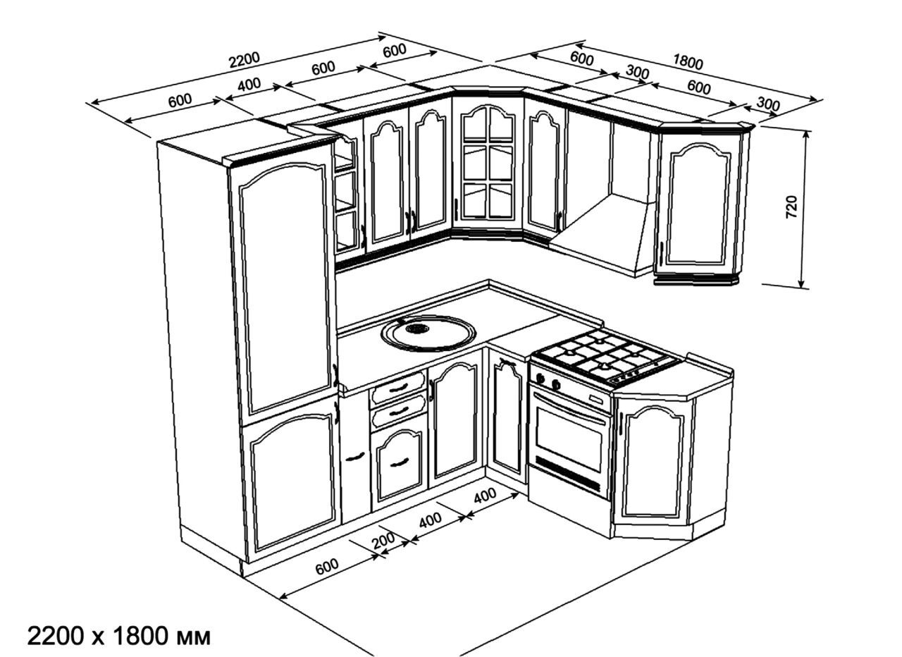 Кухонный мебель угловой 210х200 чертеж с размерами