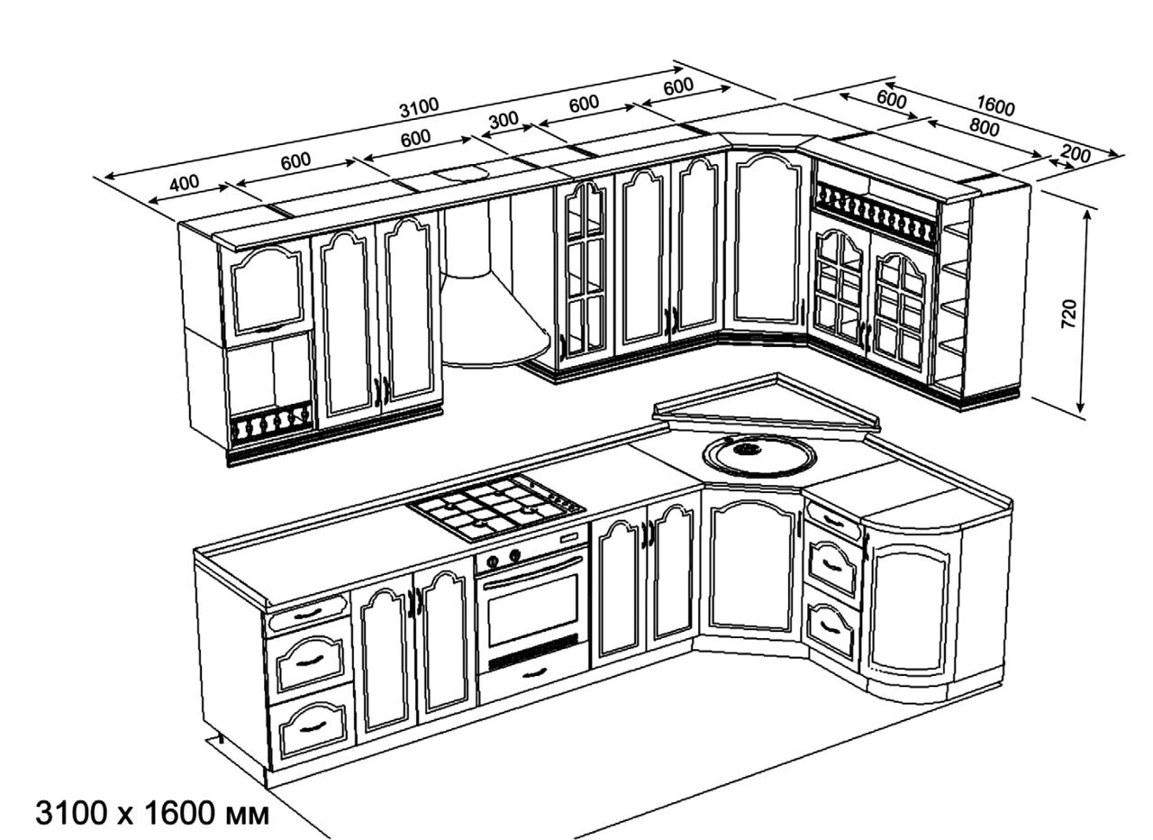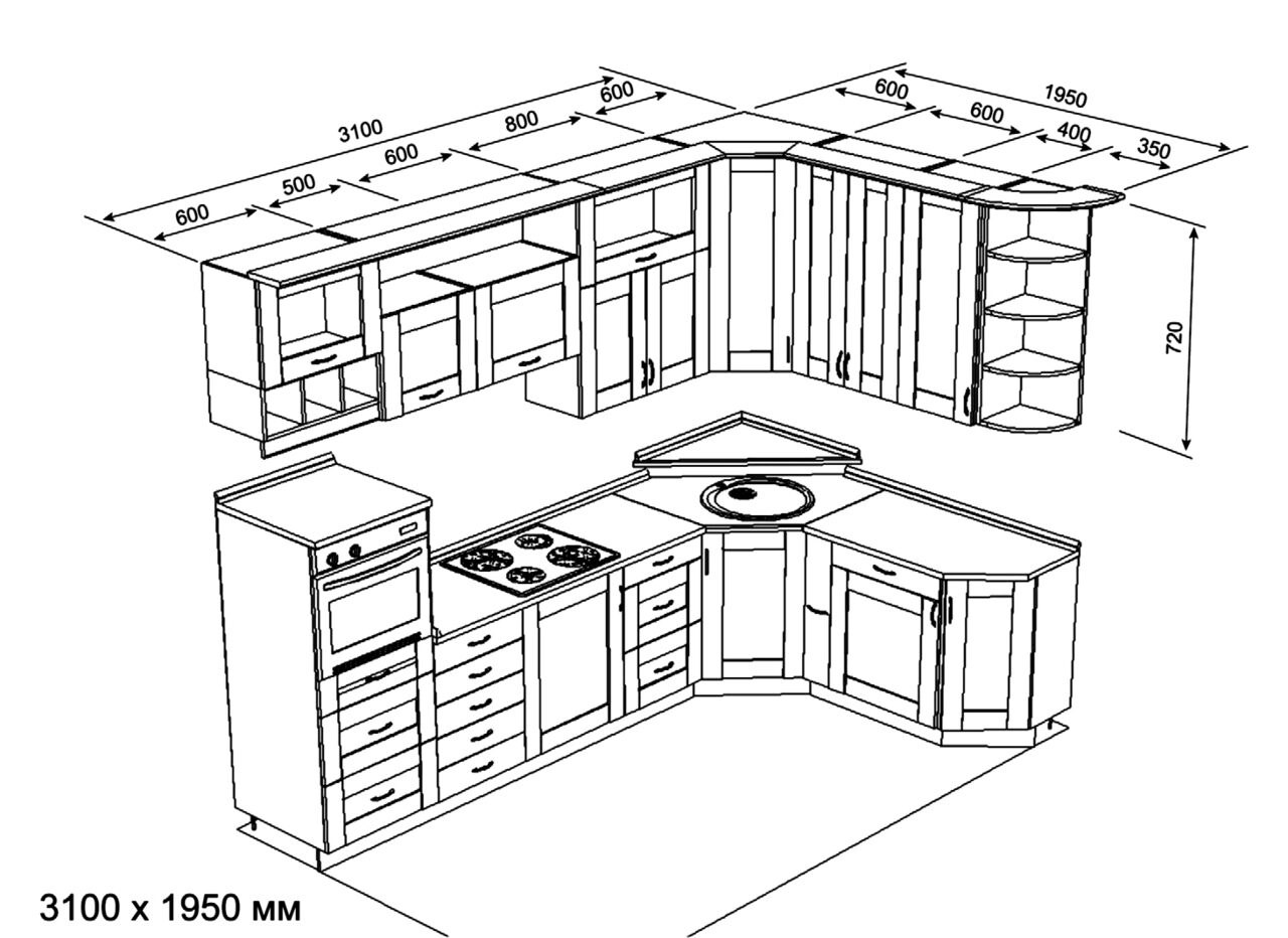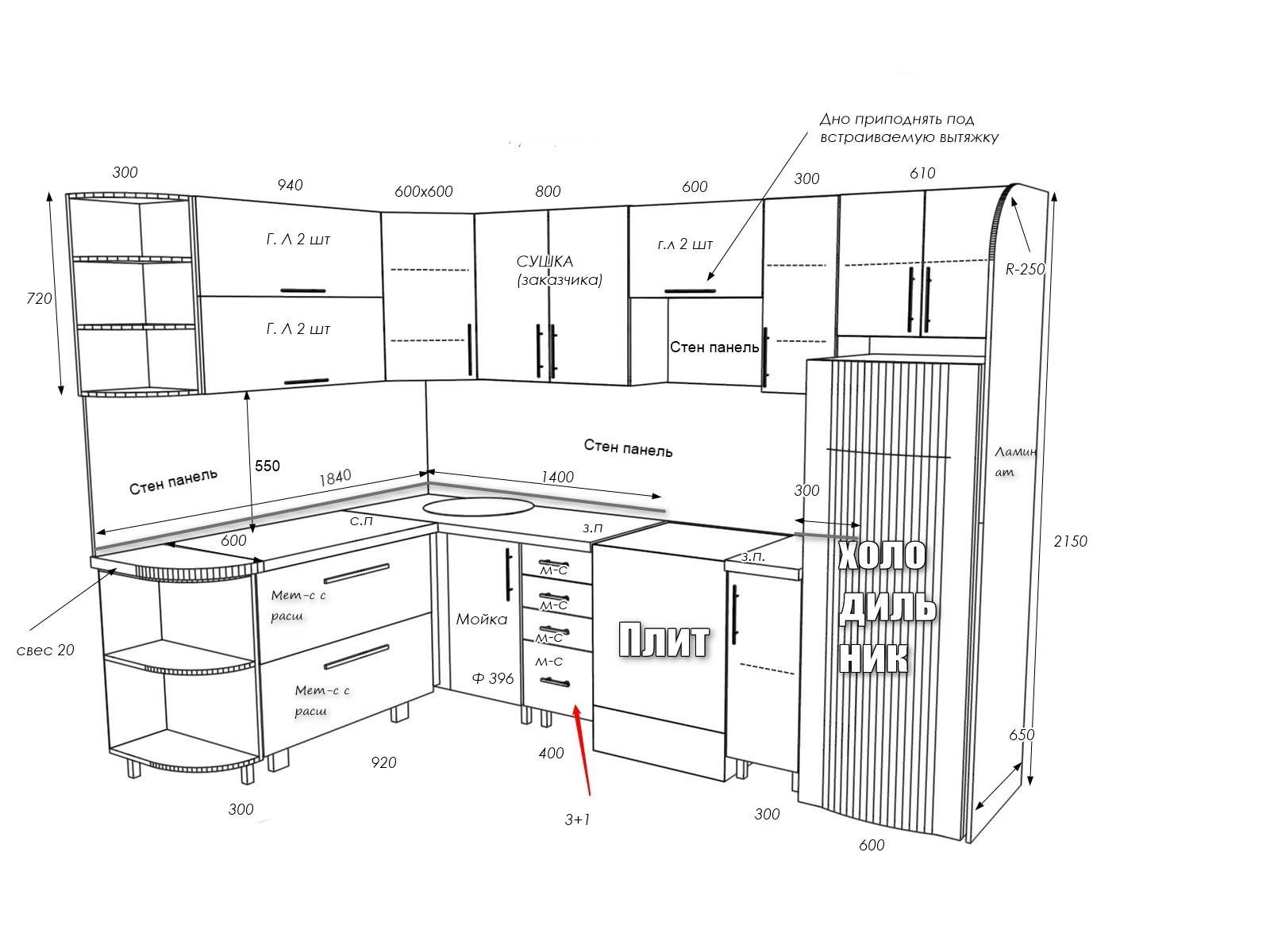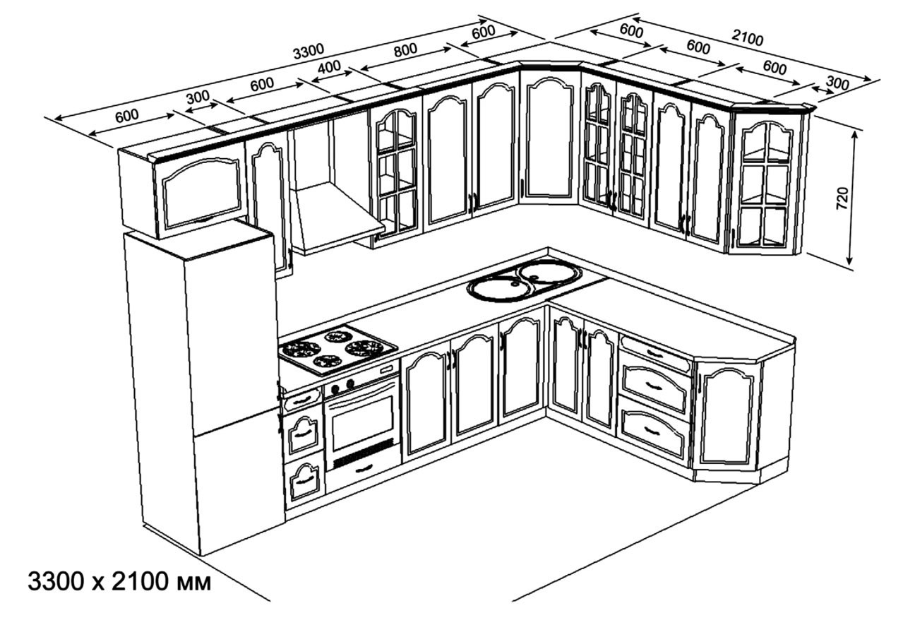 Кухонный мебель угловой 210х200 чертеж с размерами