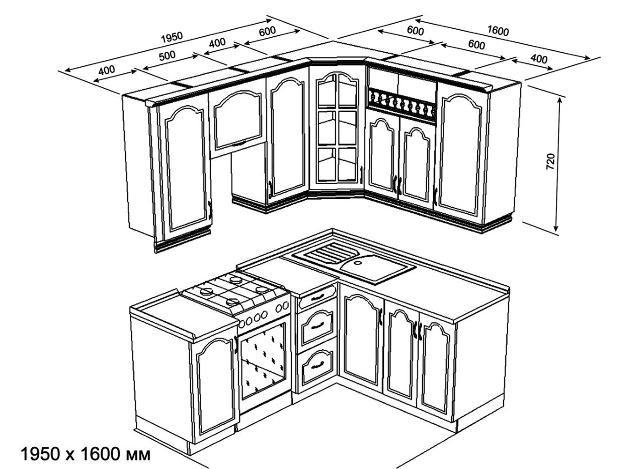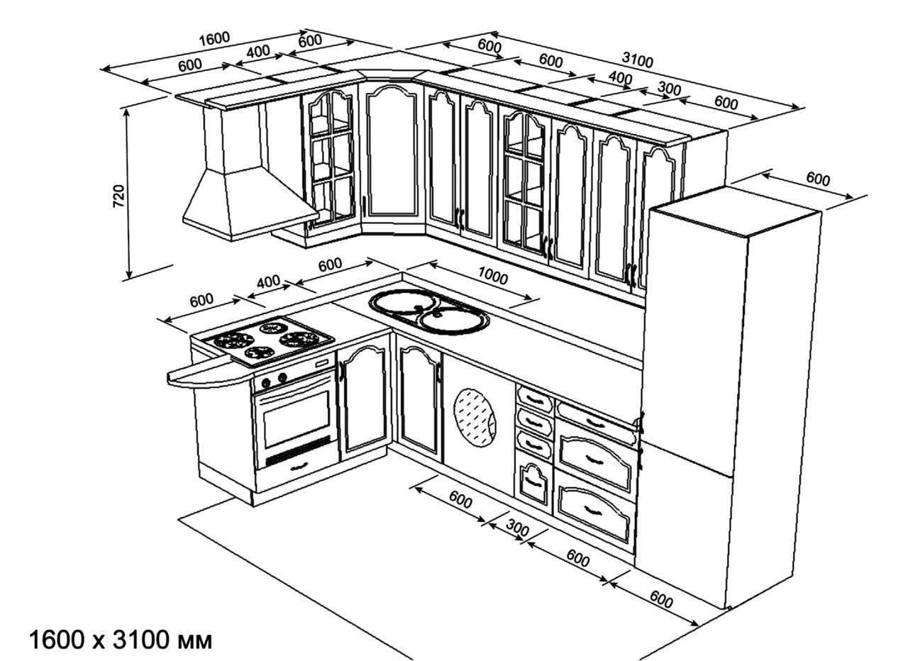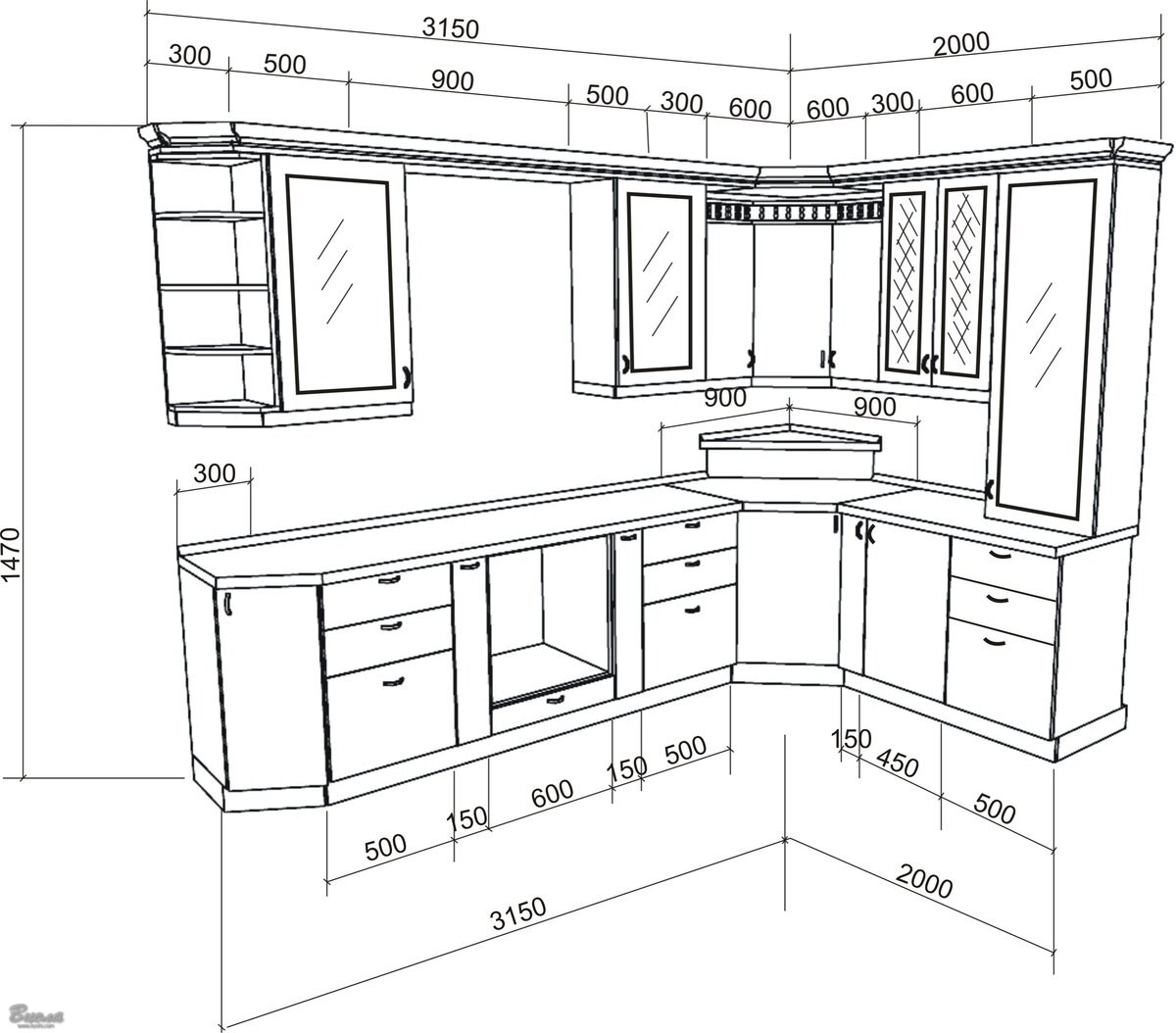 Чертежи кухонных гарнитуров угловых с размерами в хрущевке ,1600-2000мм