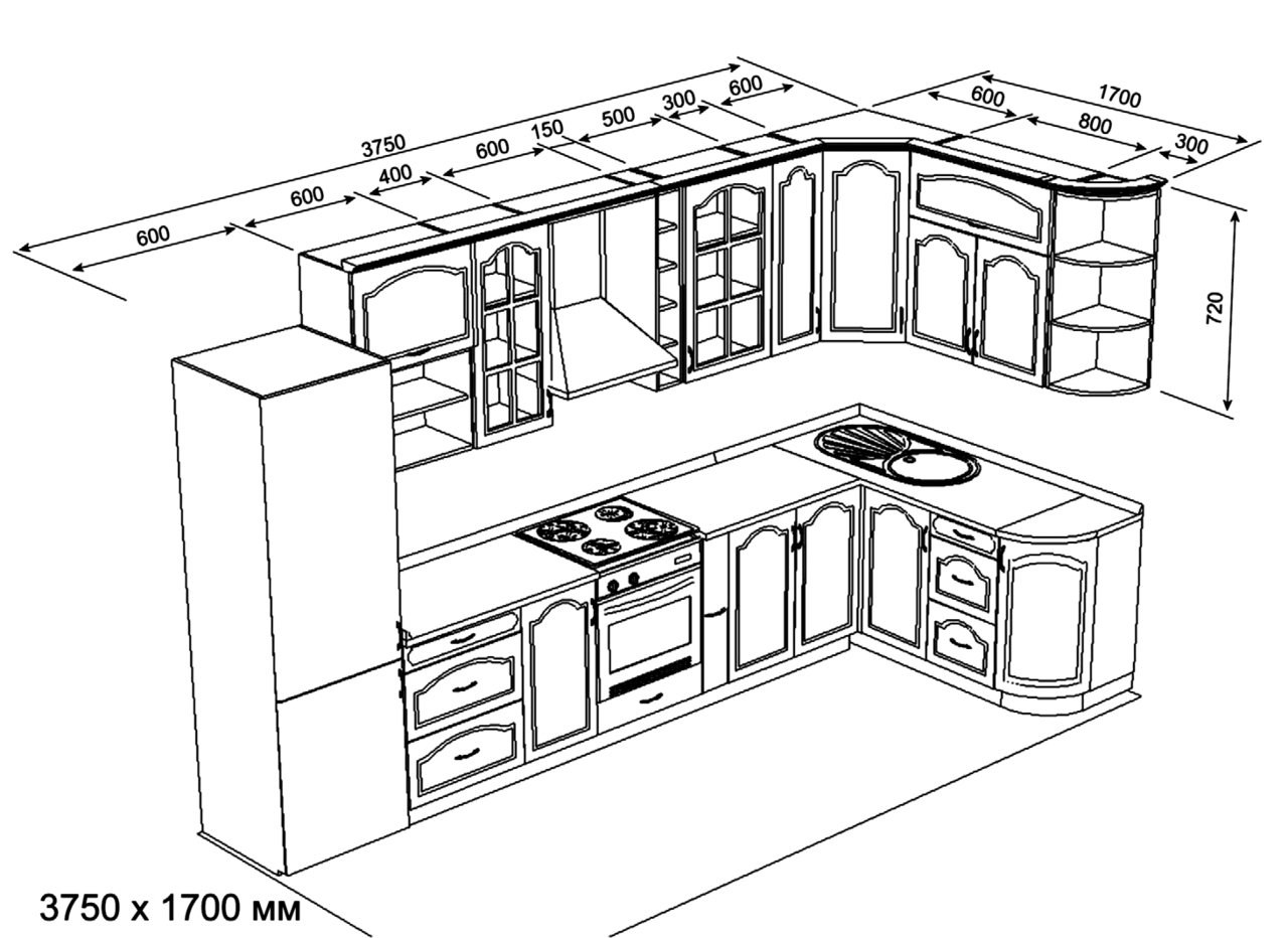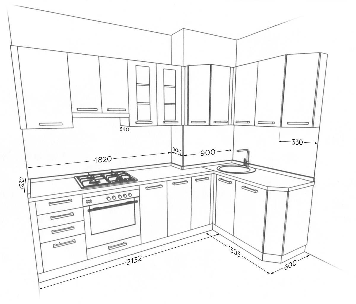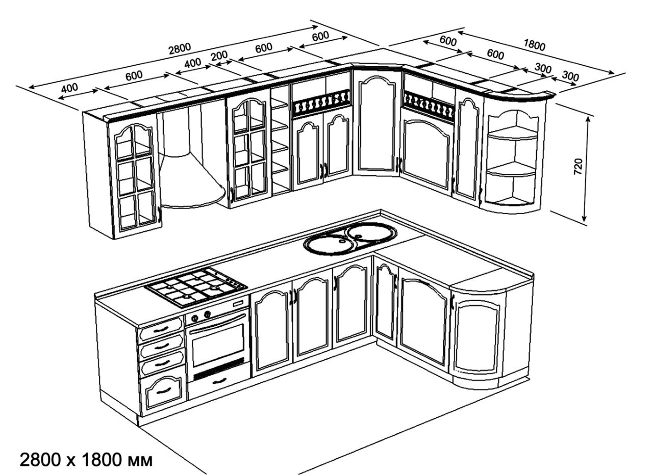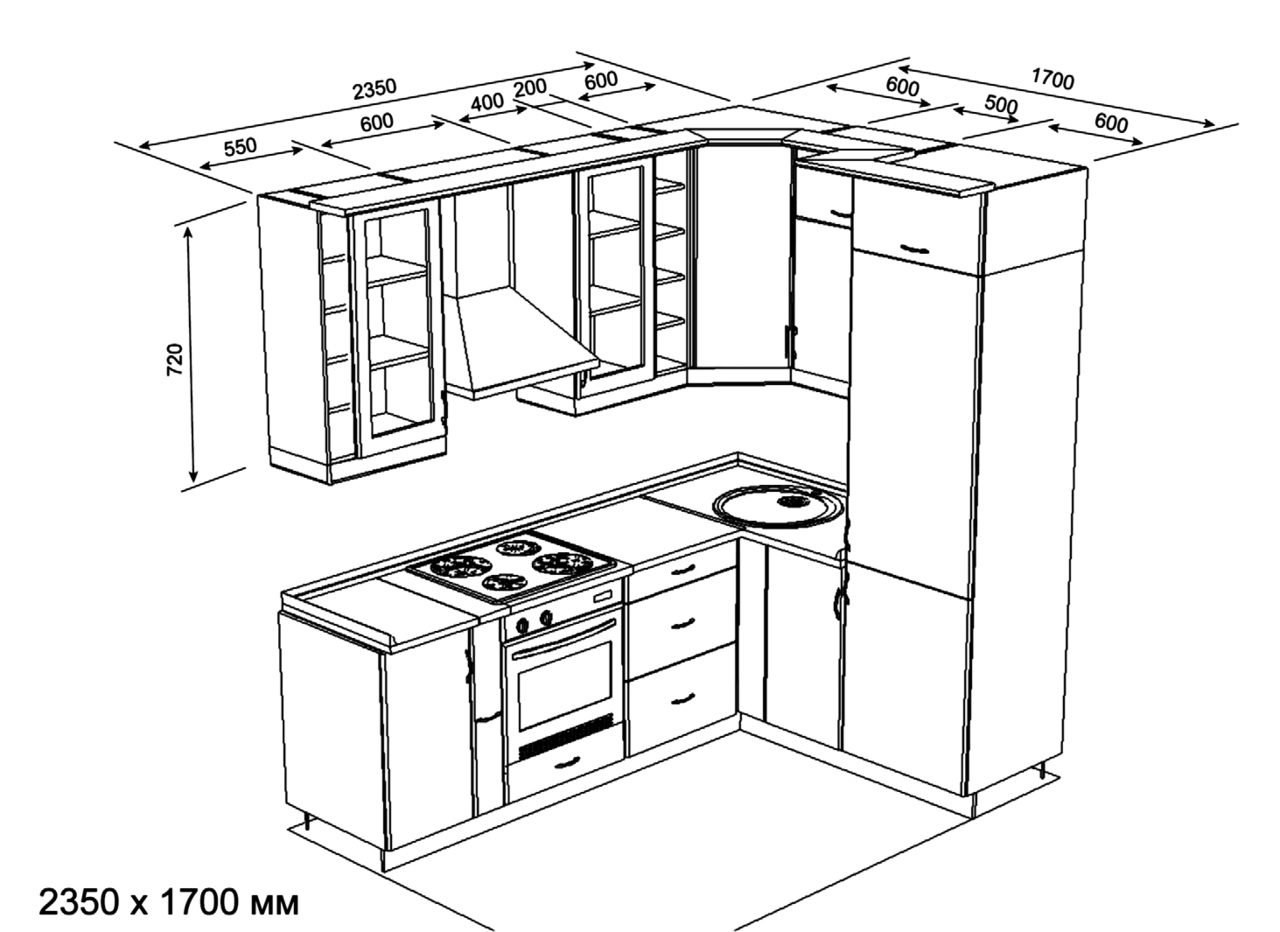 Чертежи кухонных гарнитуров угловых с размерами в хрущевке ,1600-2000мм