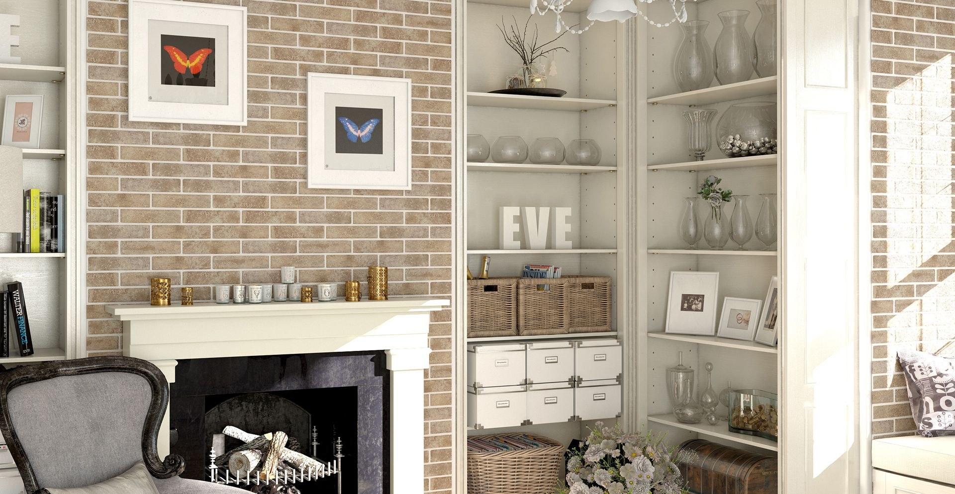 Декоративный белый кирпич в интерьере