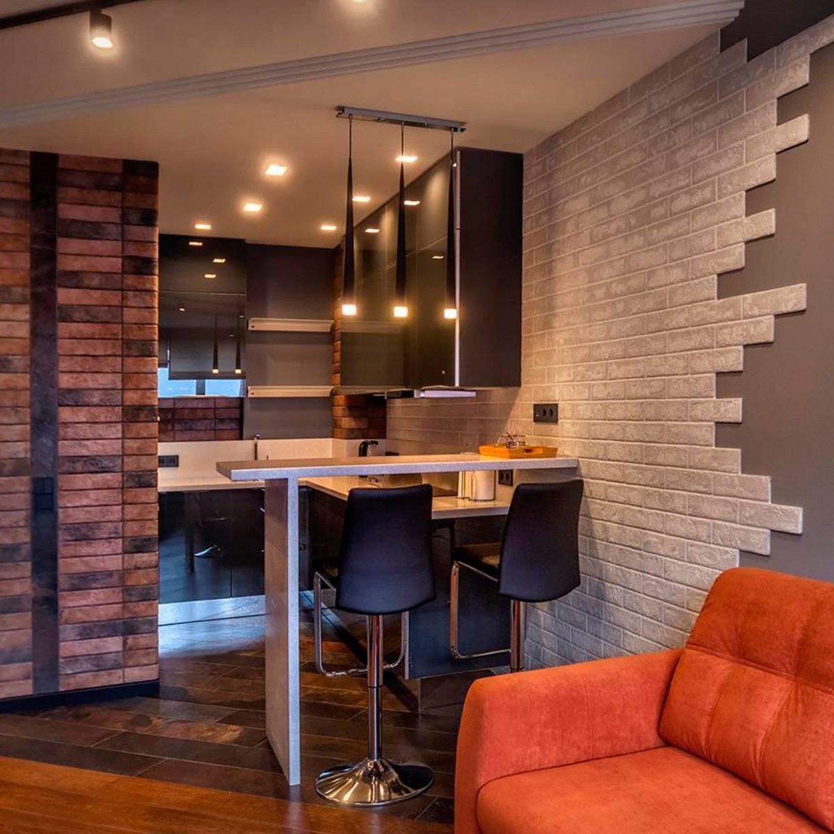 Отделка кухни под кирпич