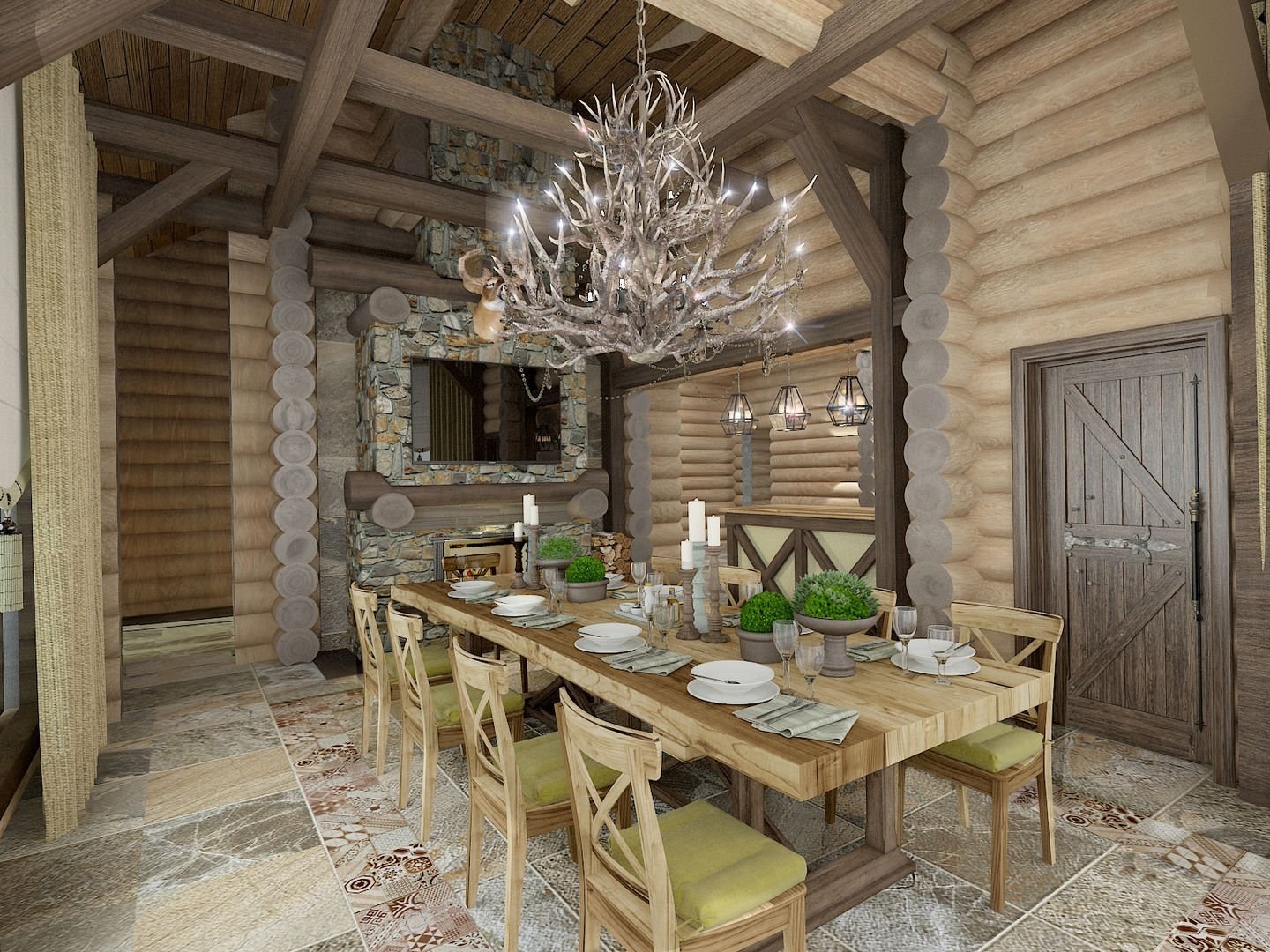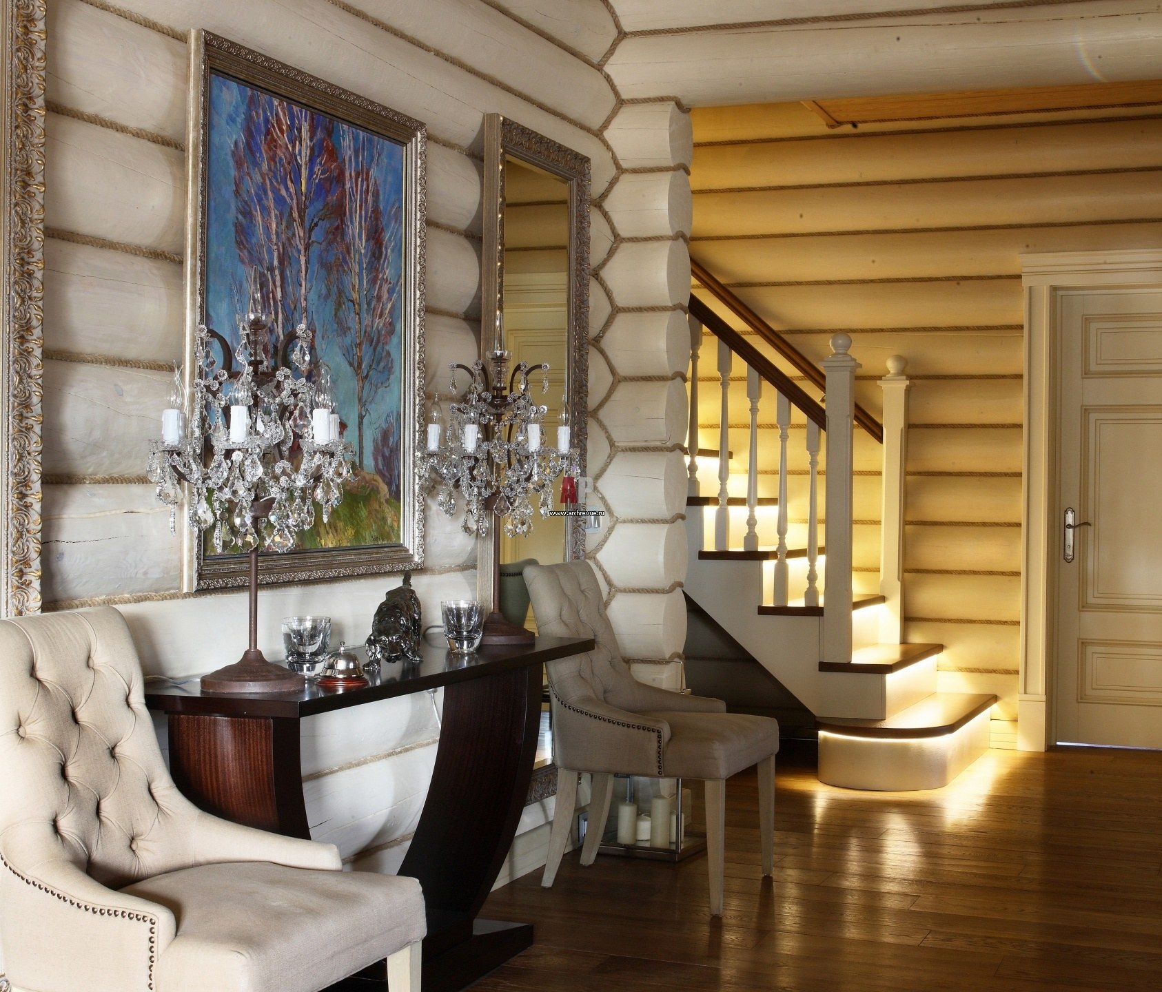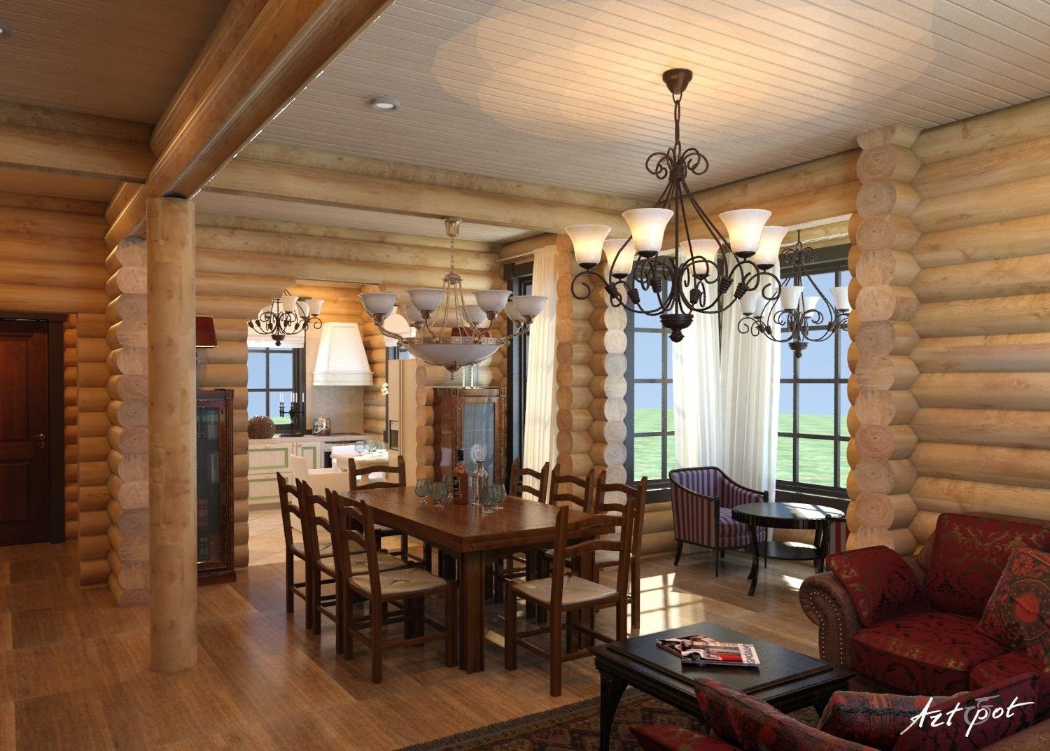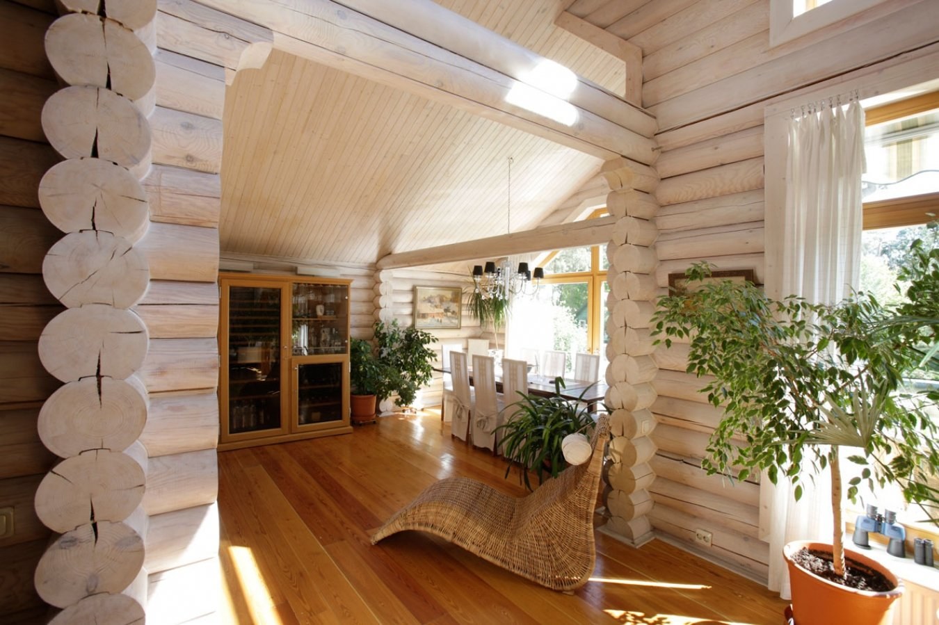 Интерьер дома из оцилиндрованного бревна