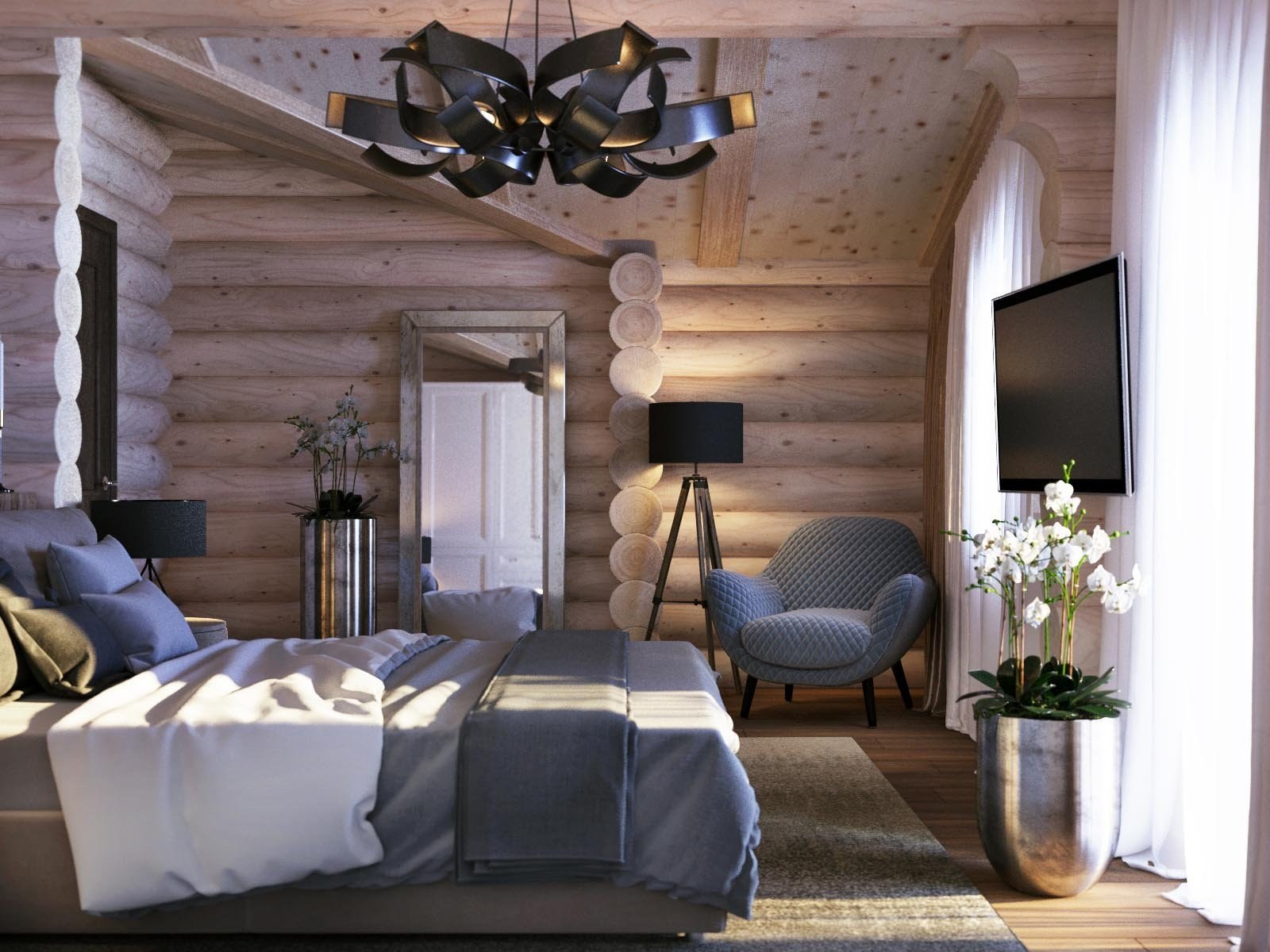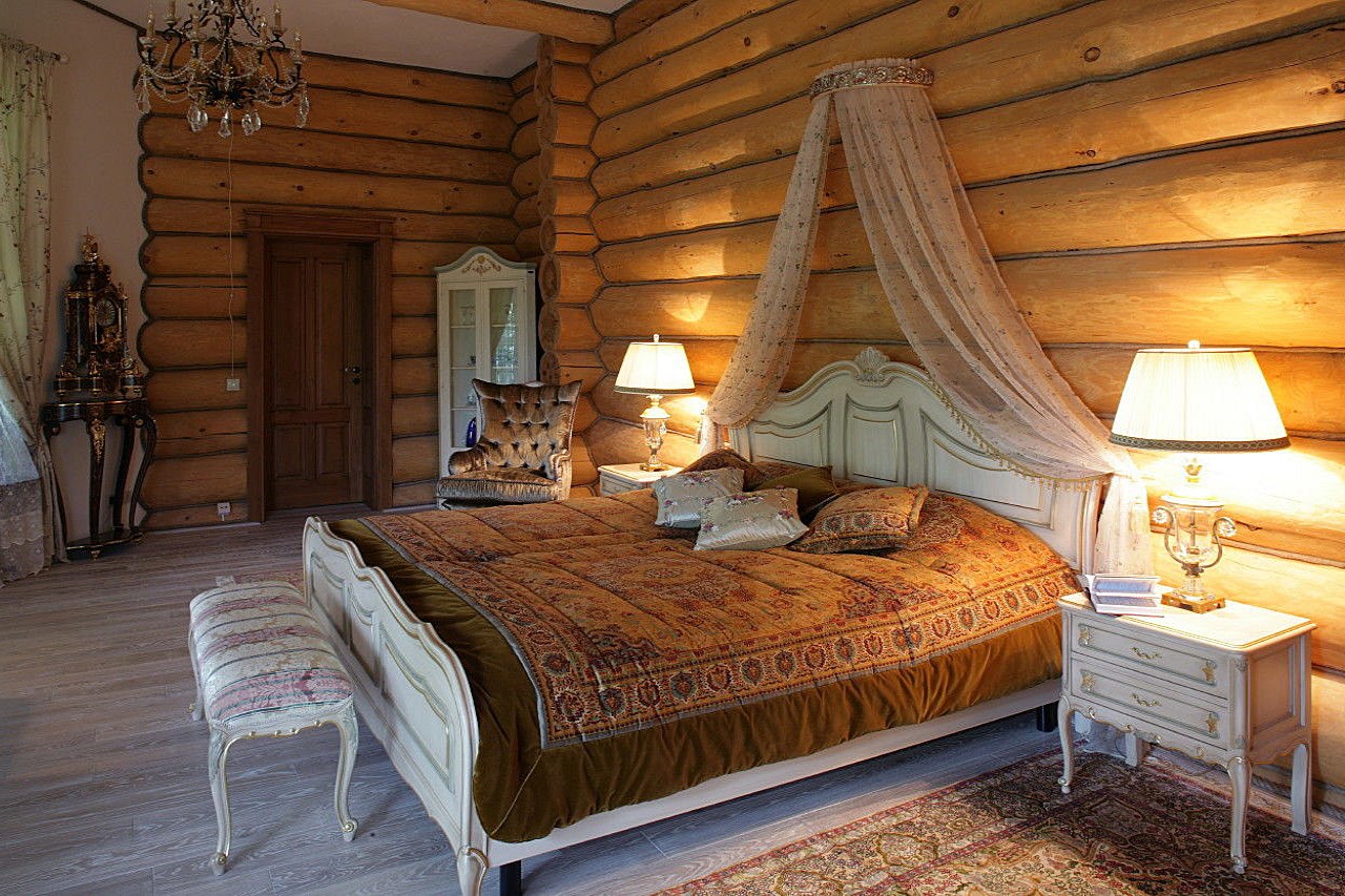 Интерьер спальни в деревянном доме