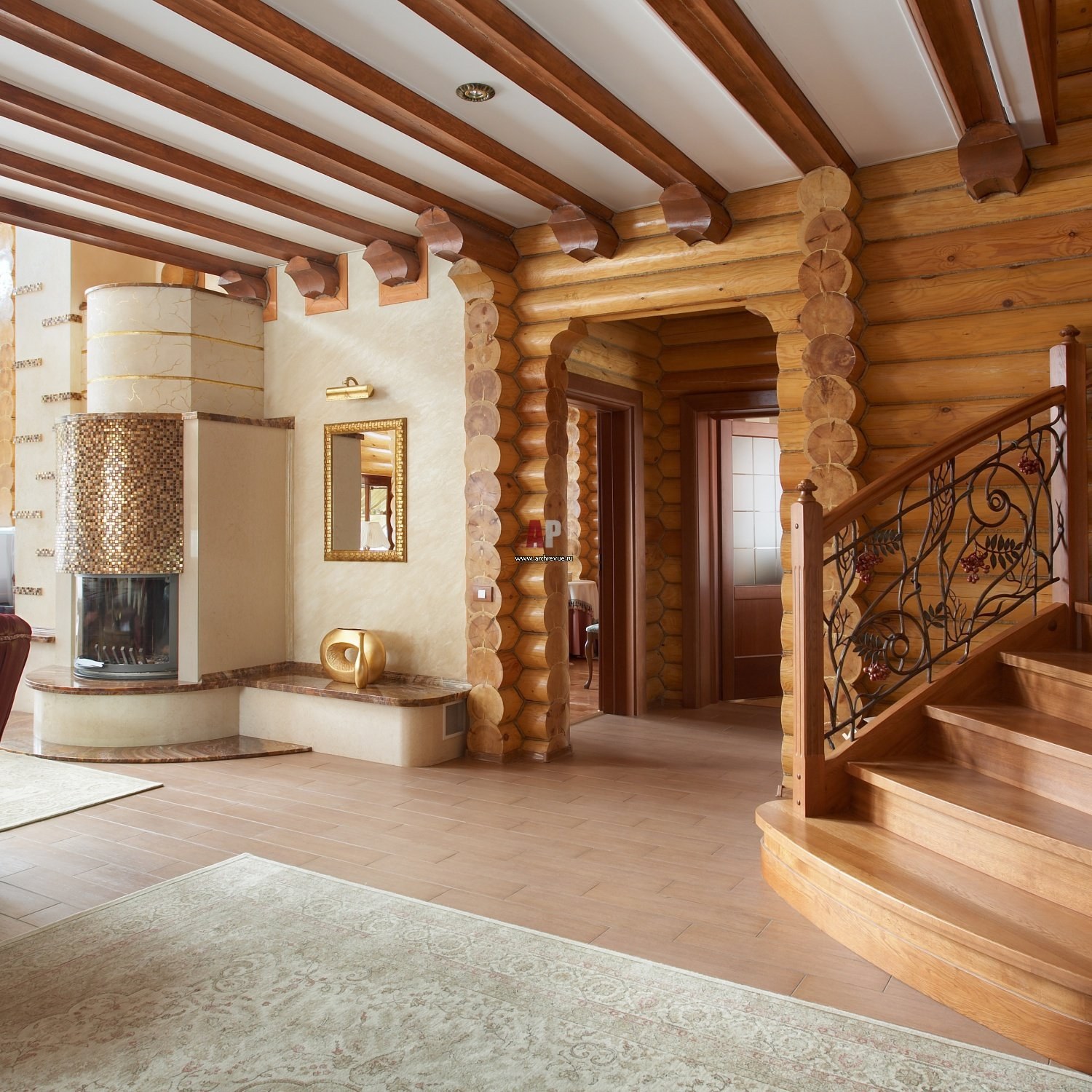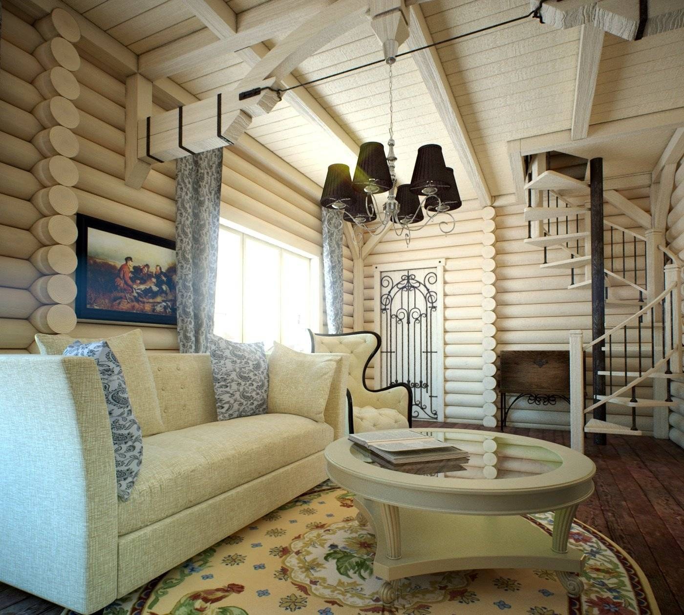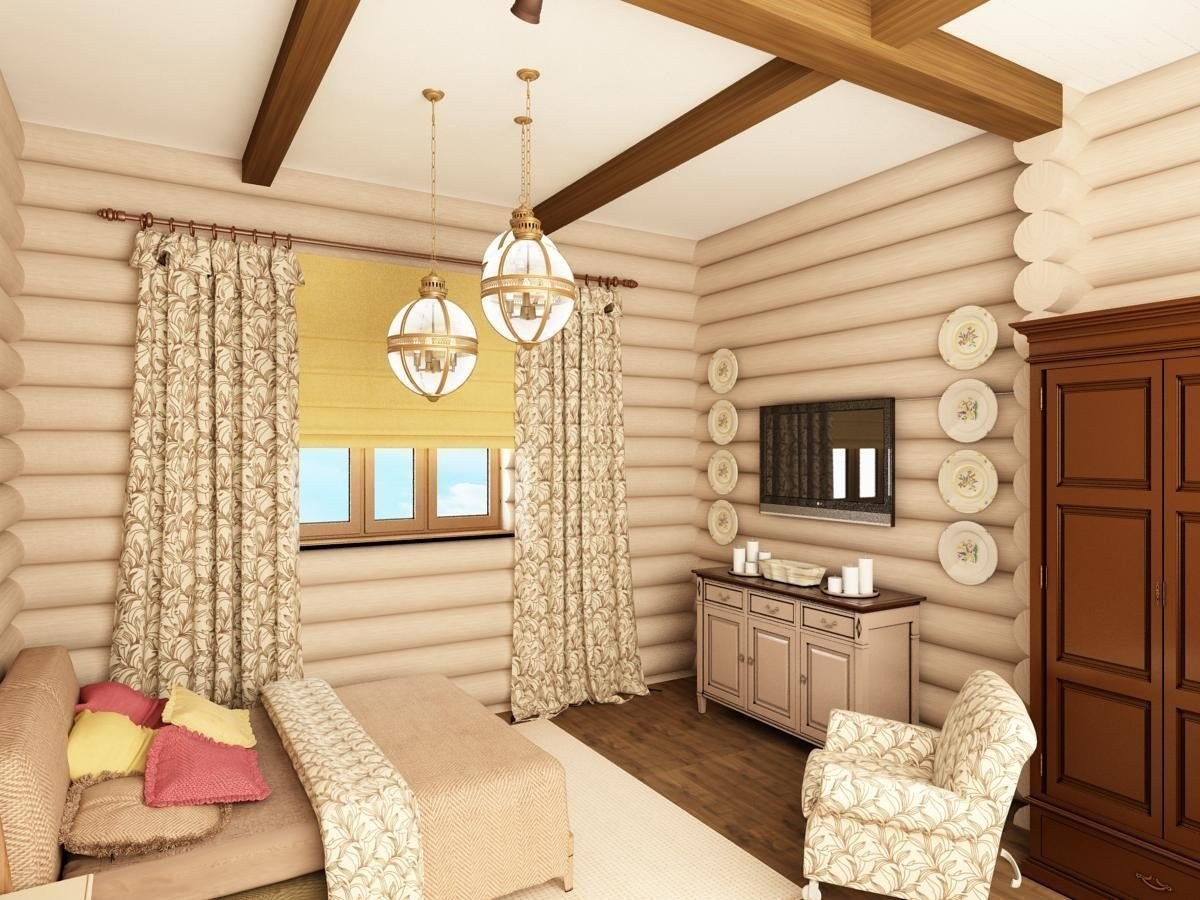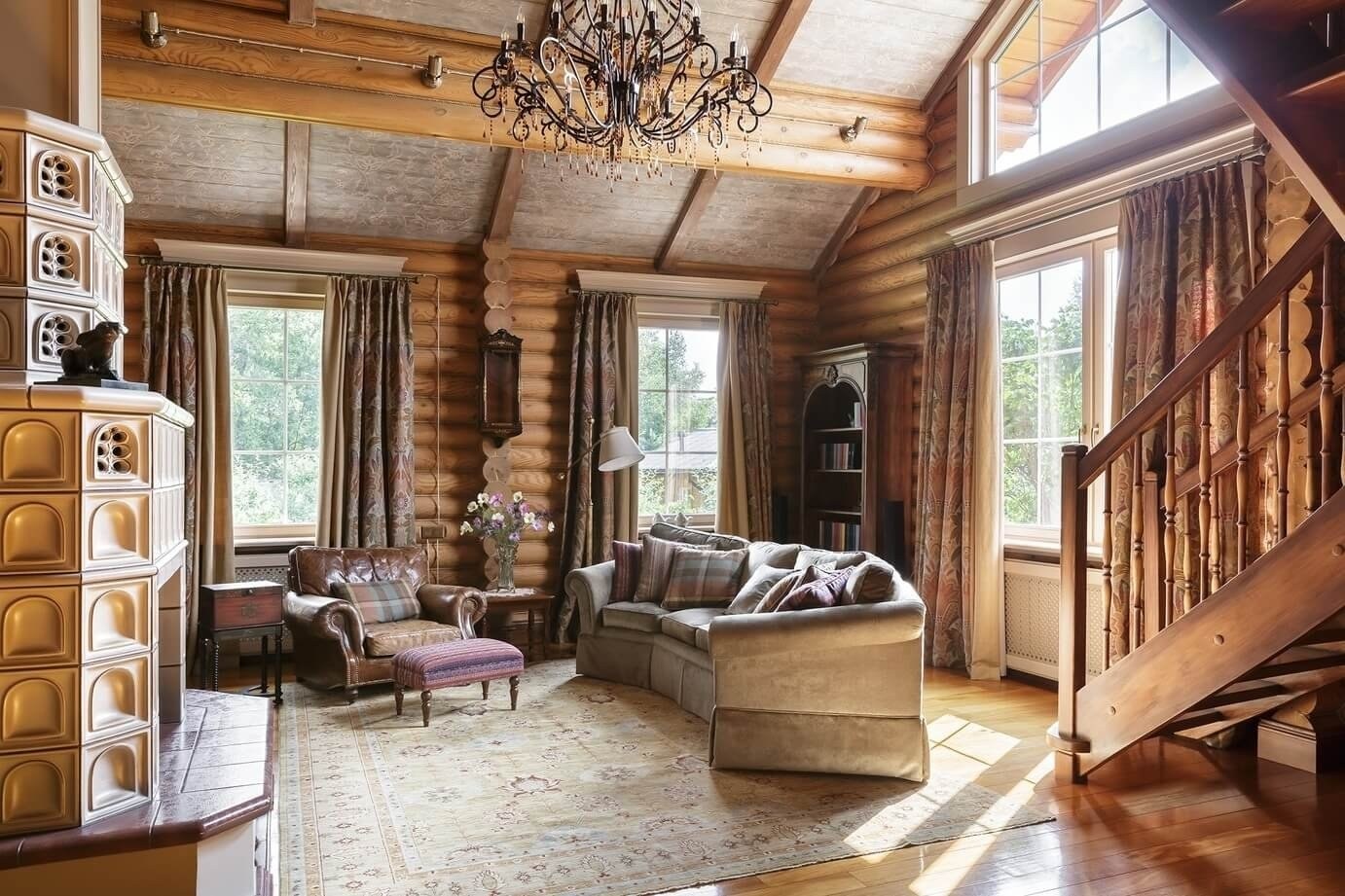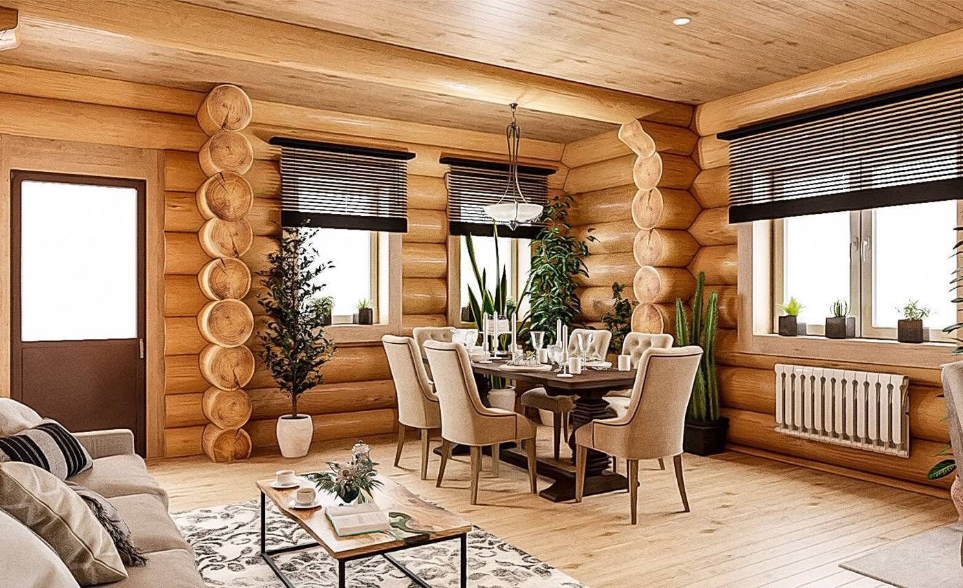 Интерьер деревянного дома из бревна
