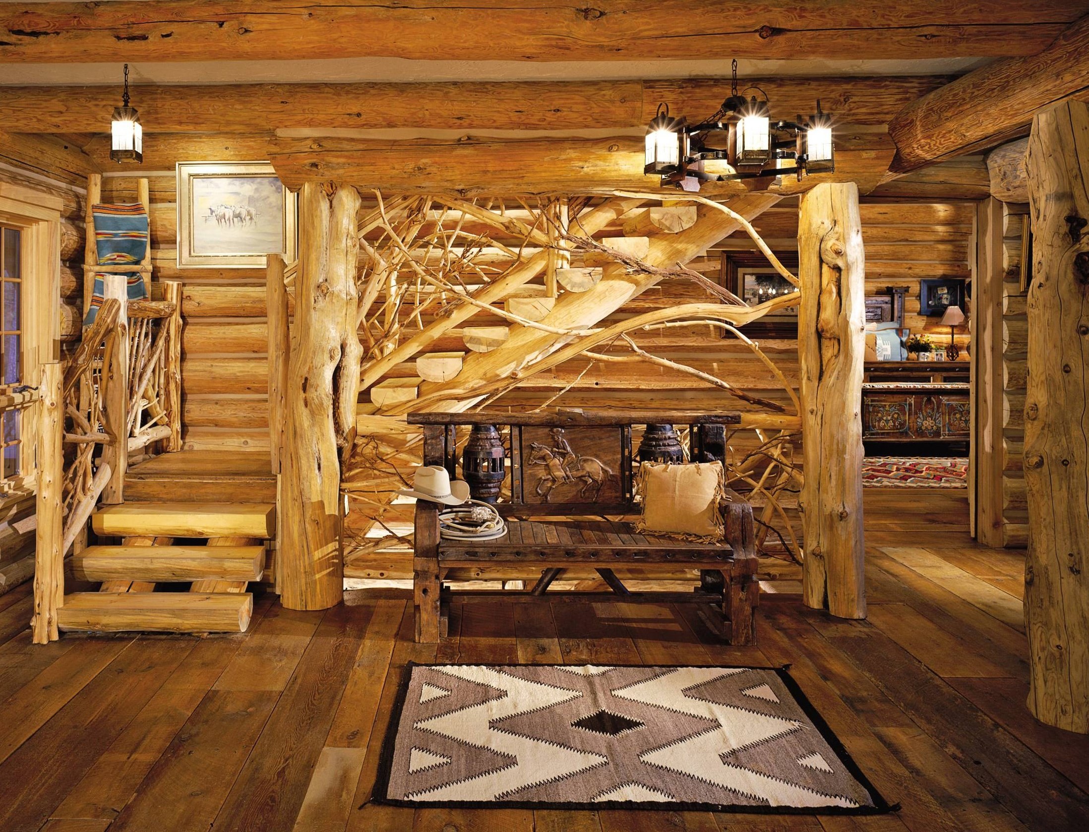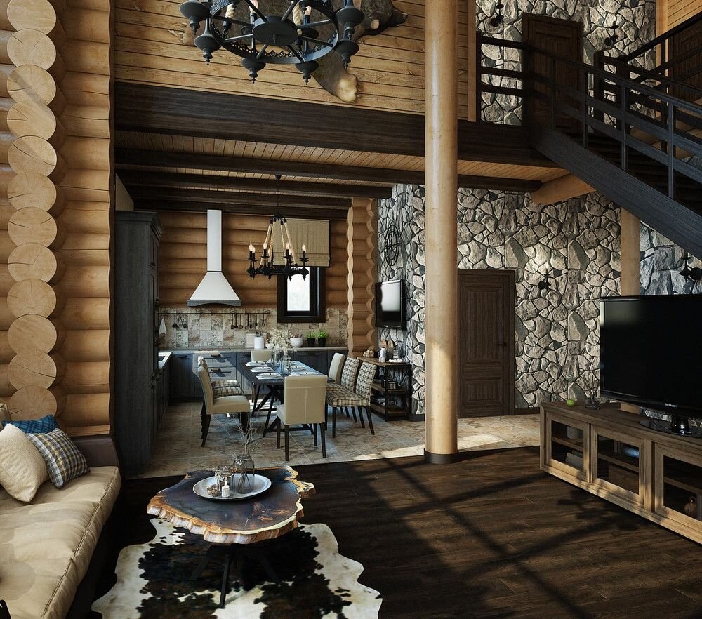 Дом из бревна интерьер (93 фото)