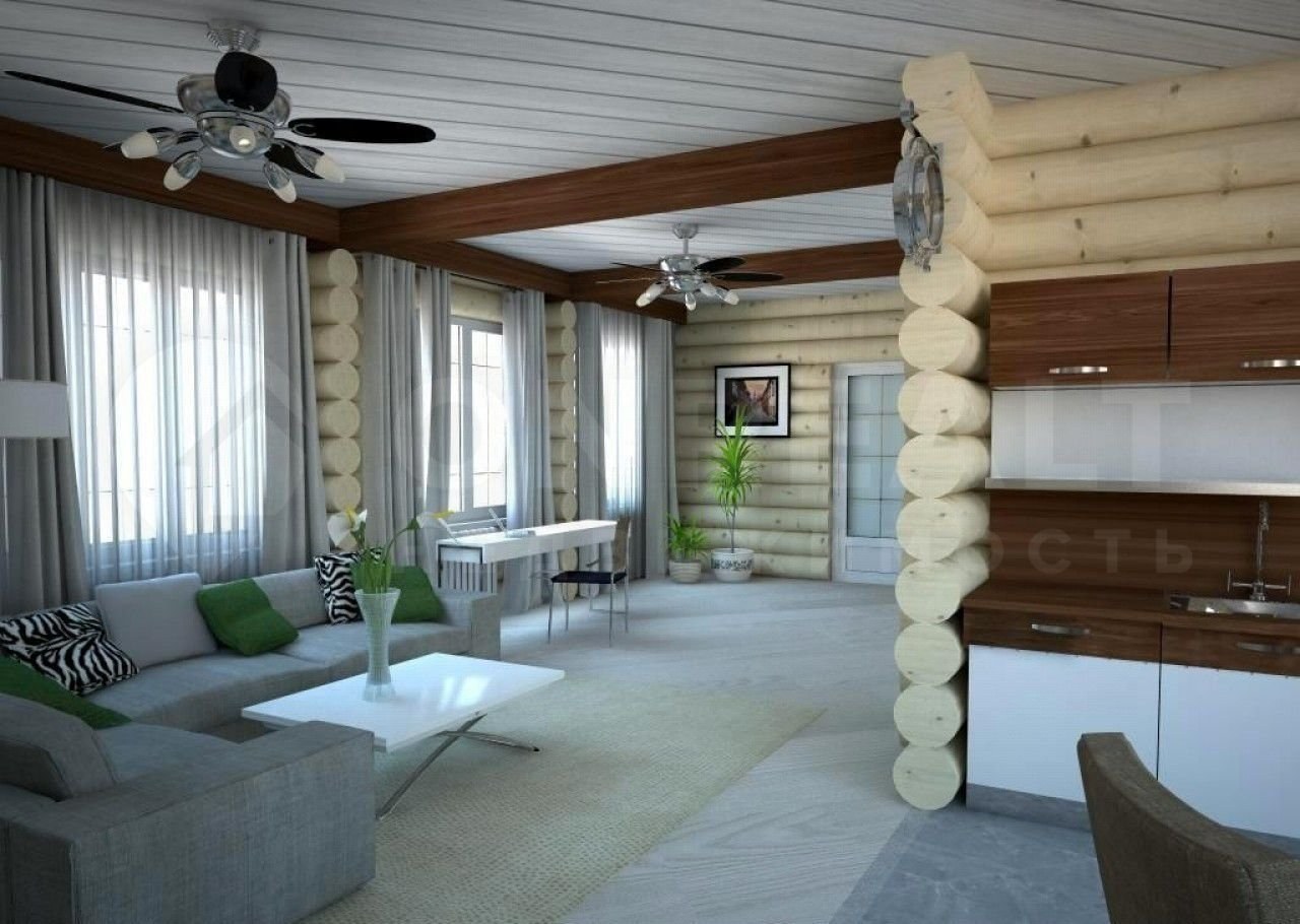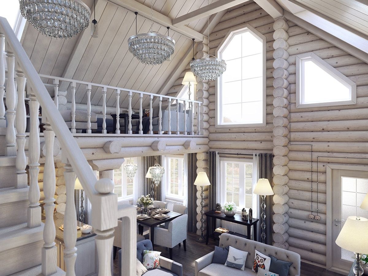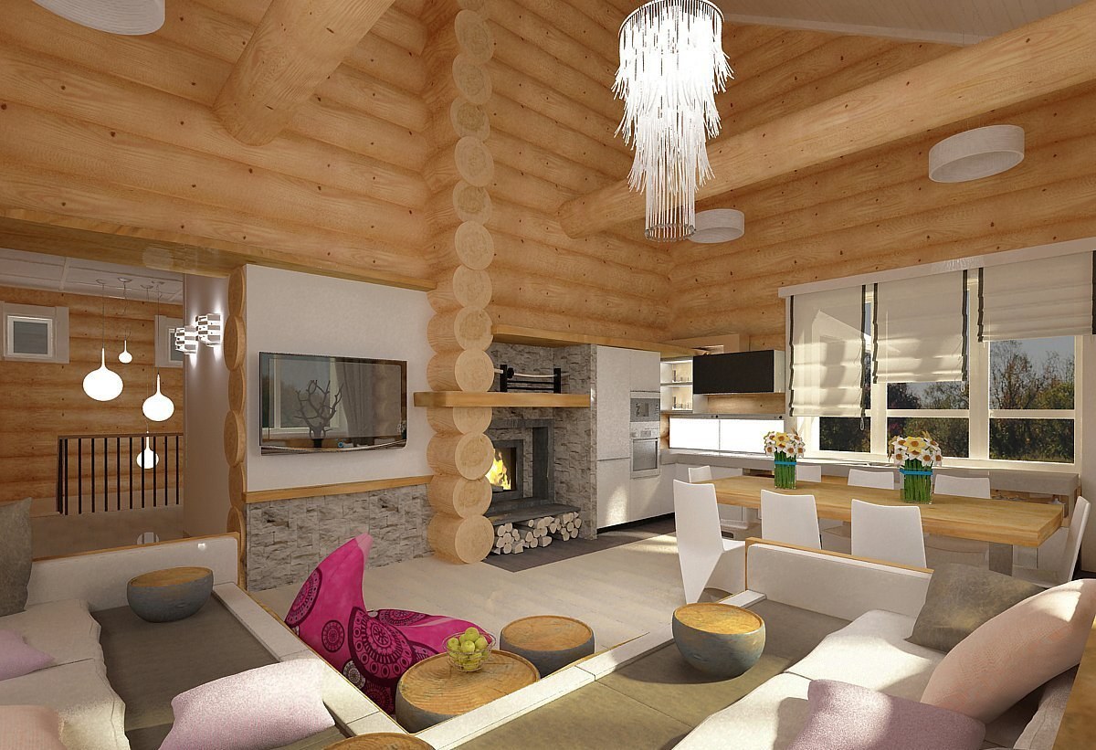 Дом из оцилиндрованного бревна внутри интерьер