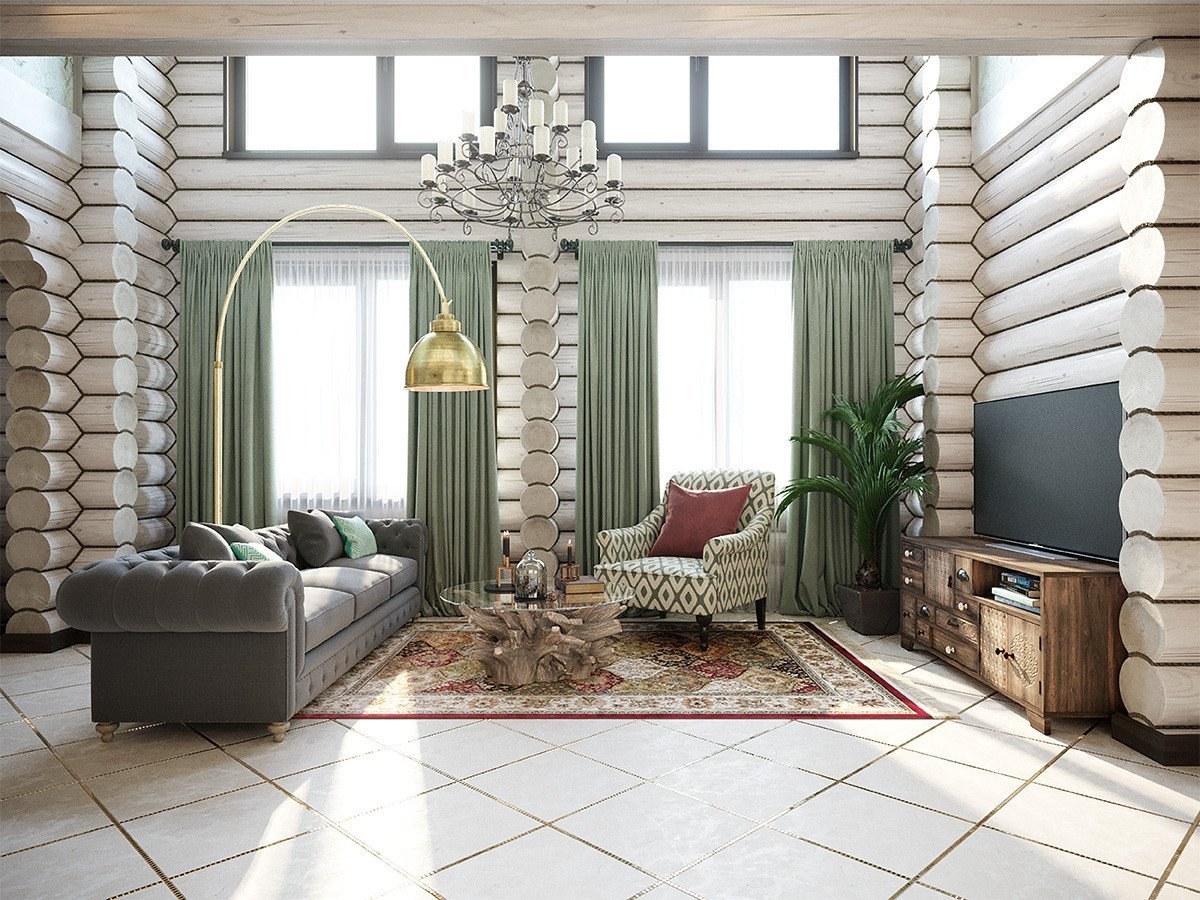 Интерьер сруба в современном стиле