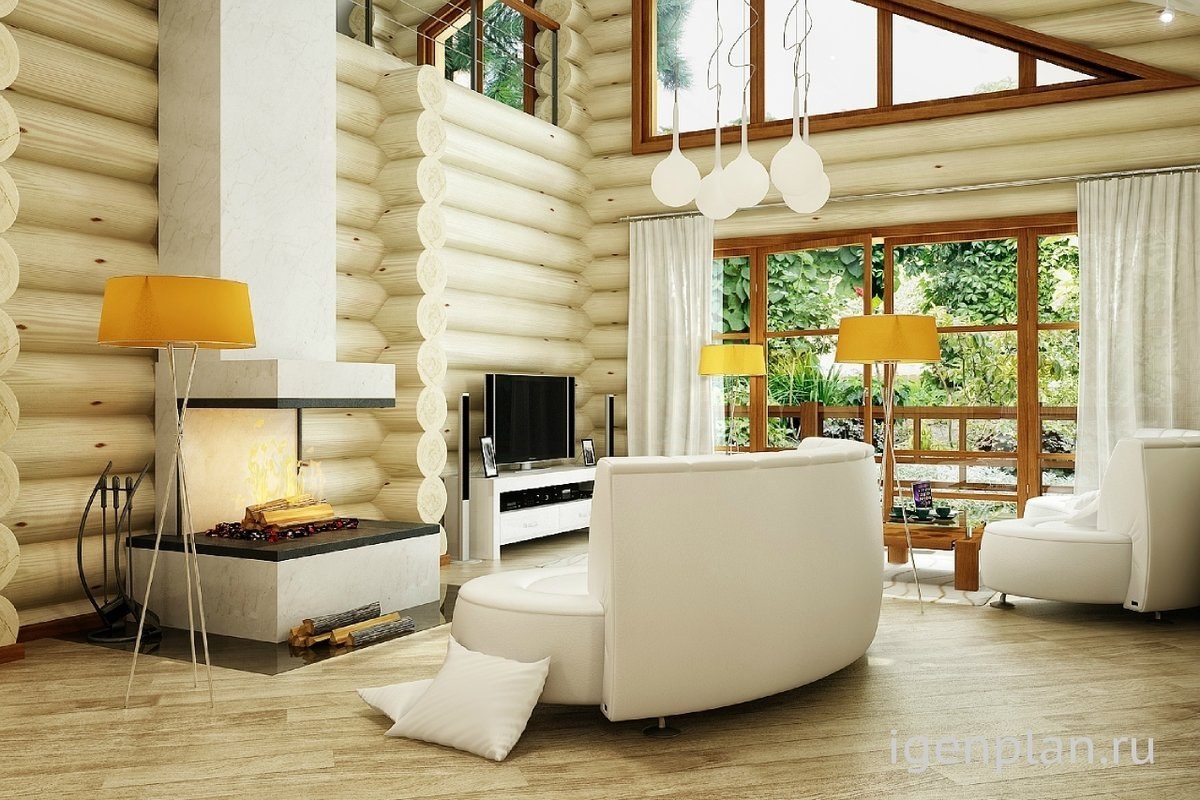 Дом из оцилиндрованного бревна интерьер Люкс
