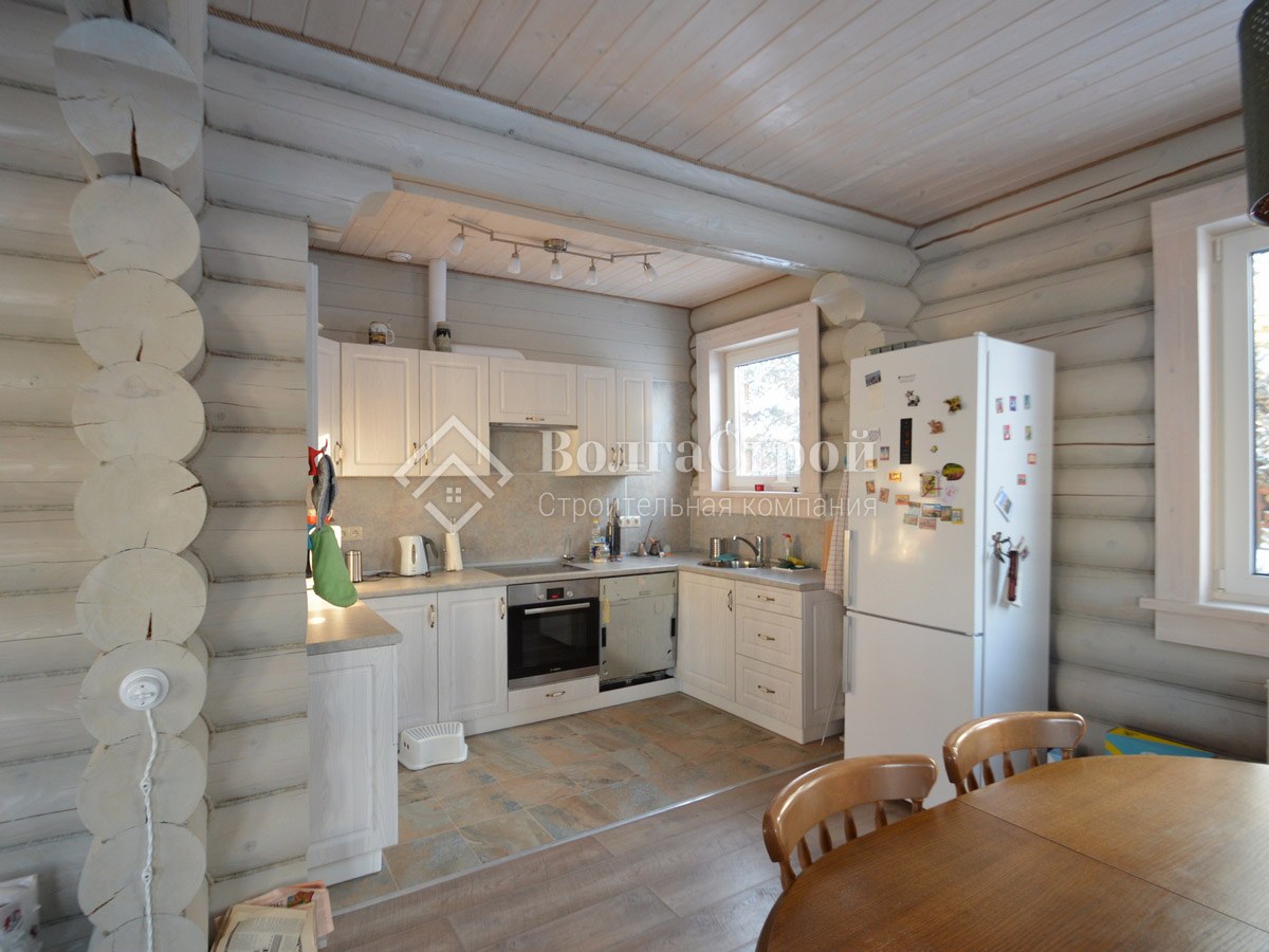 Дом из оцилиндрованного бревна внутри интерьер кухни