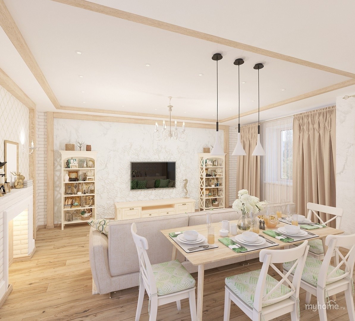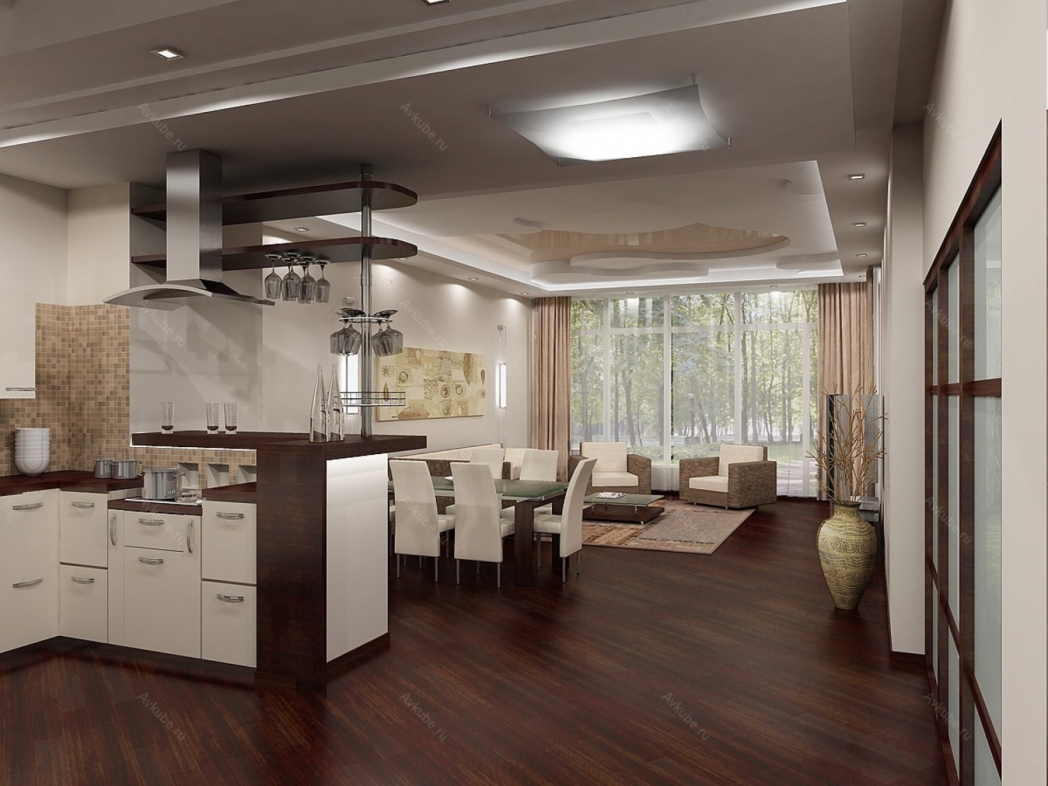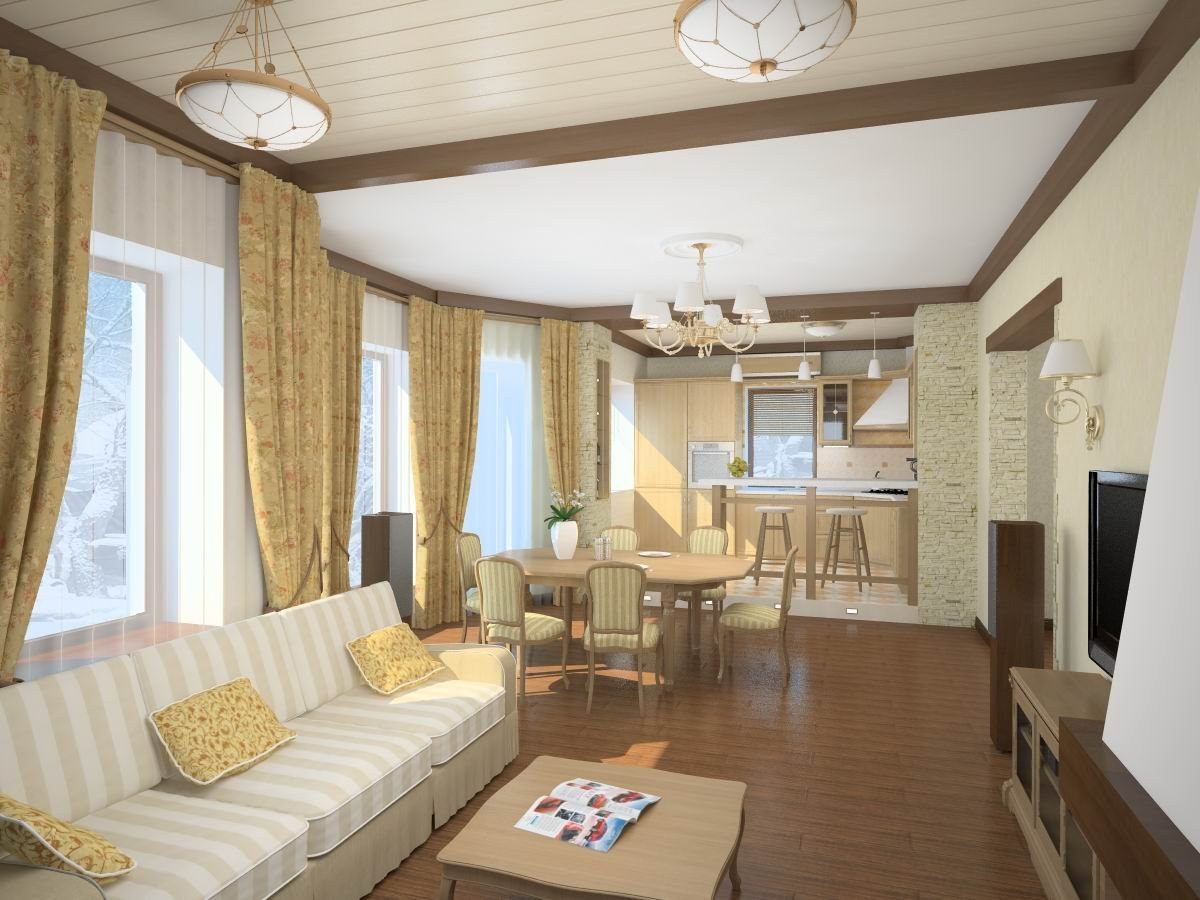 Интерьер кухни-гостиной 30 кв.м в загородном доме