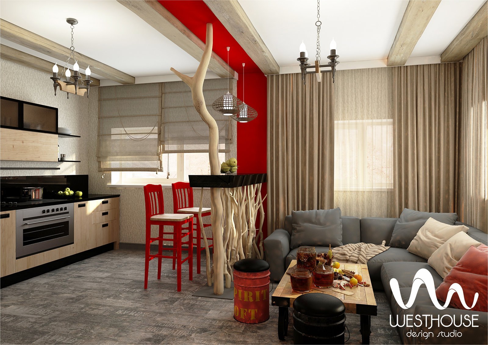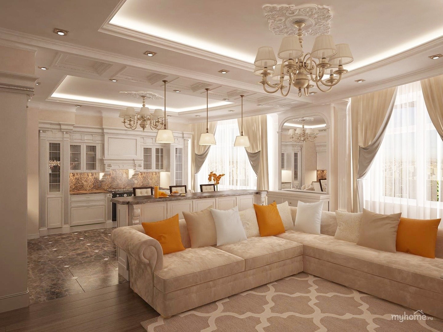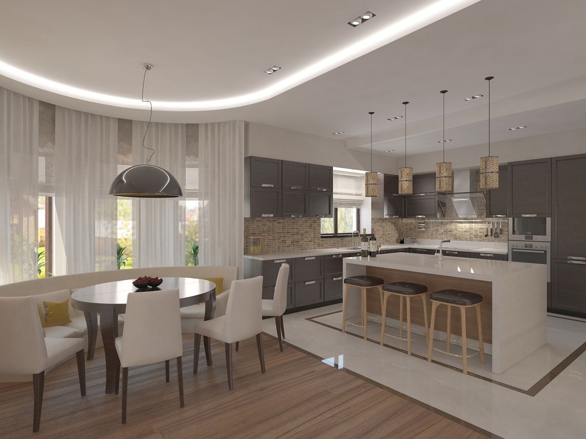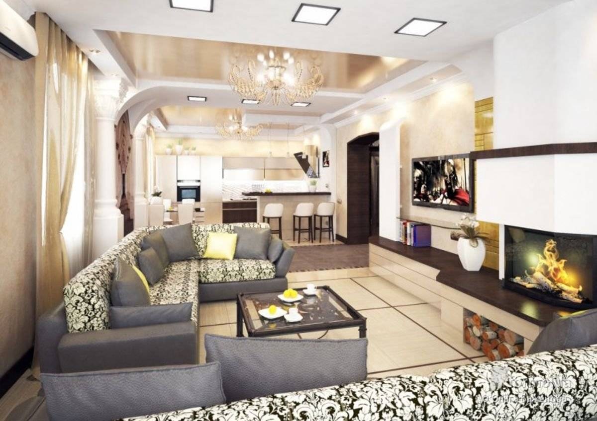 Интерьер кухни-гостиной 30 кв.м в загородном доме