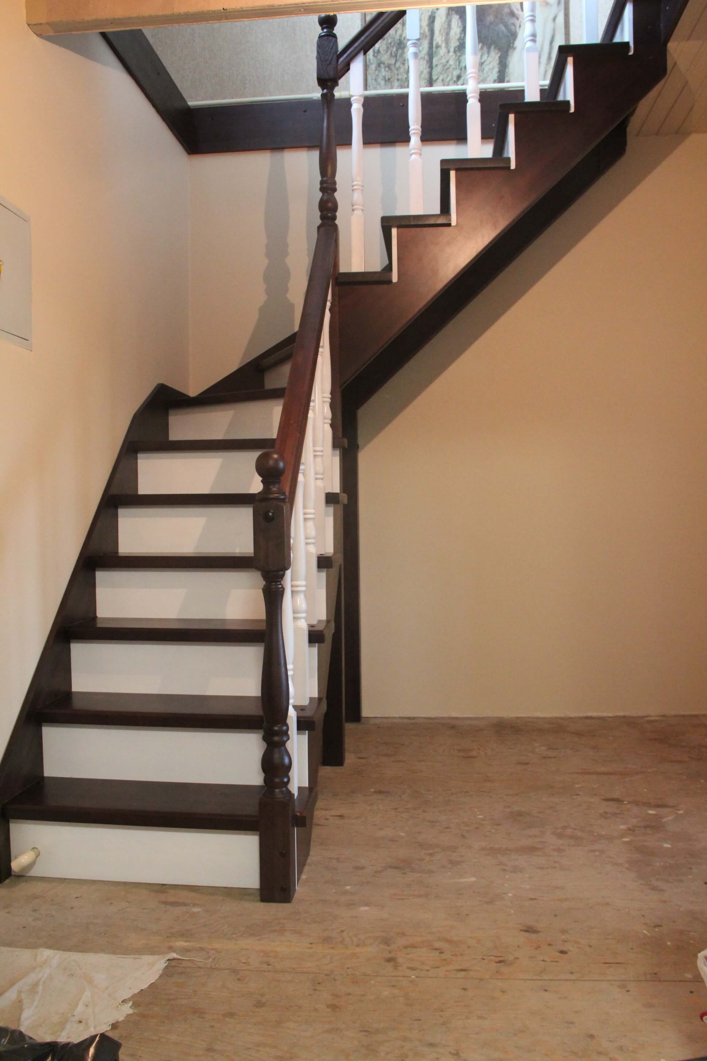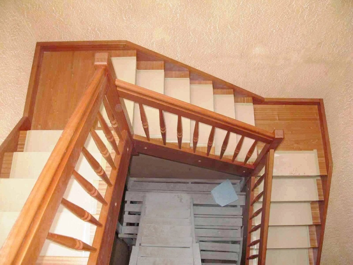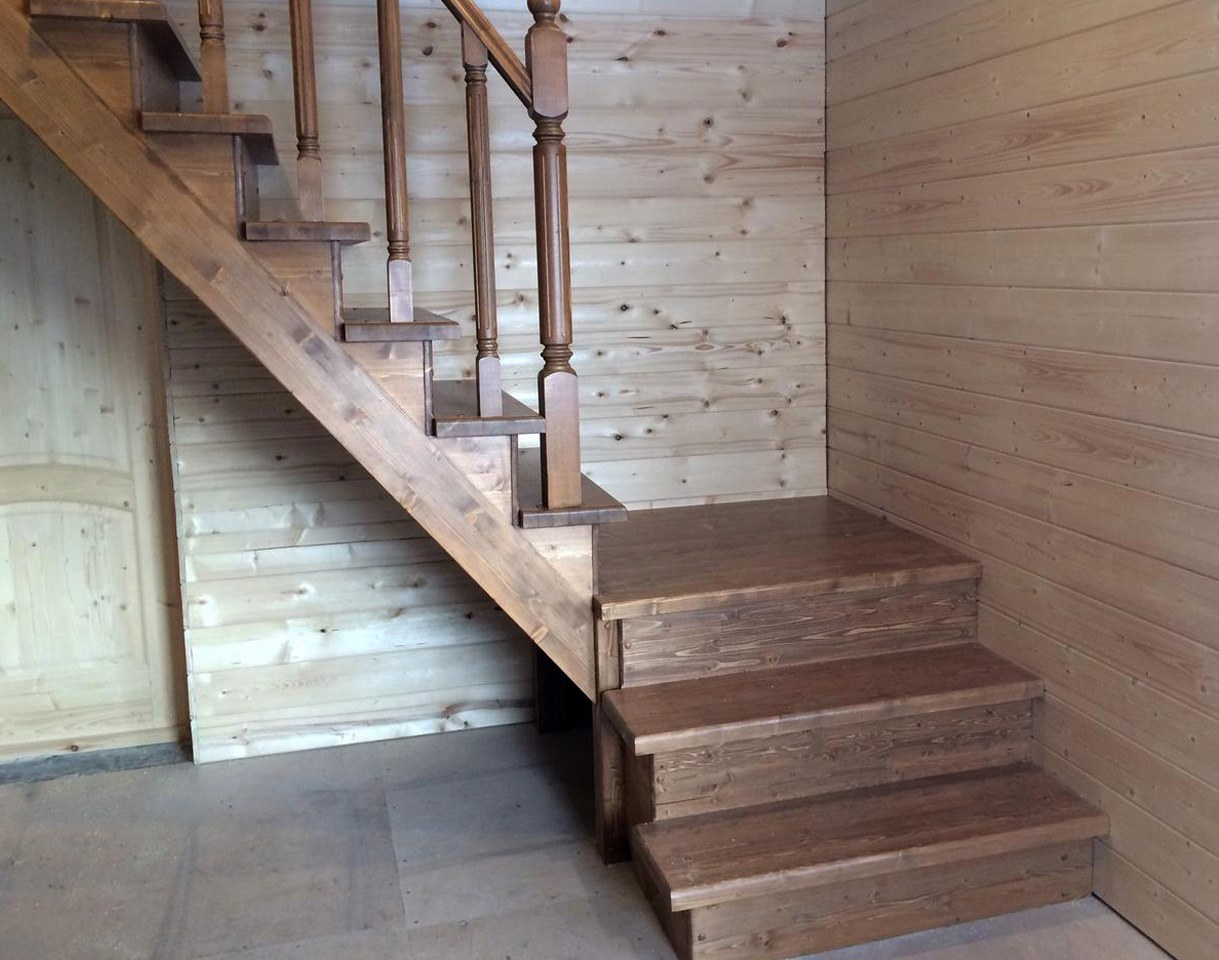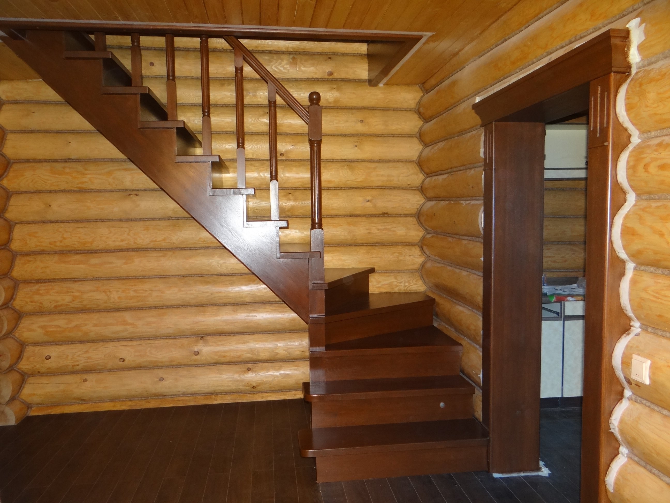 Лестница на второй этаж с поворотом на 90 с забежными ступенями