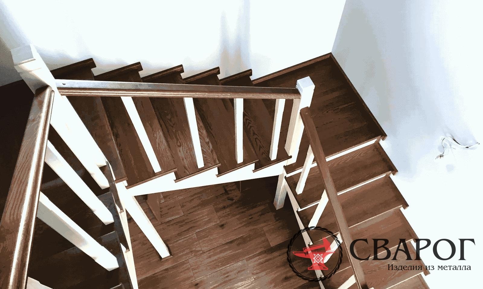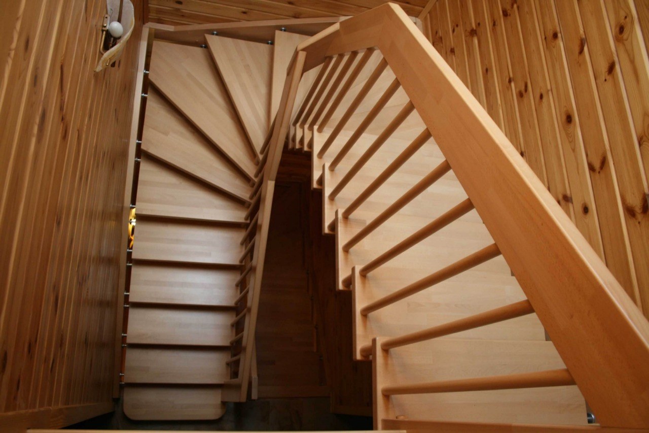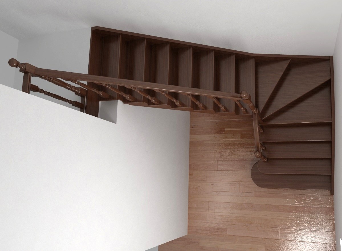Лестница на второй этаж 90 градусов с забежными ступенями