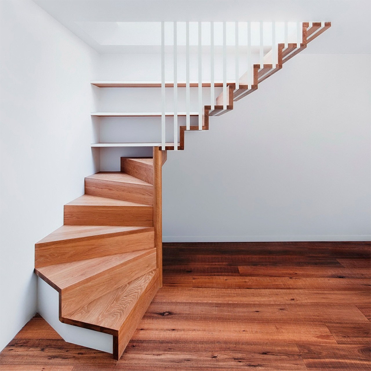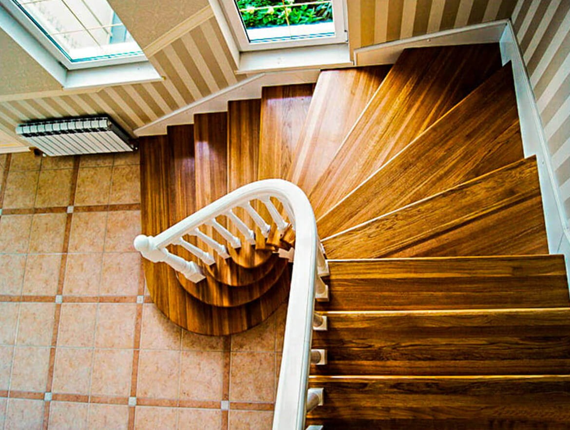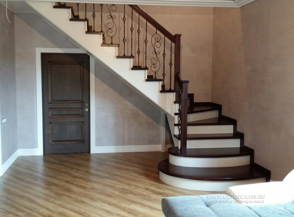 Лестница на второй этаж 90 градусов с забежными ступенями