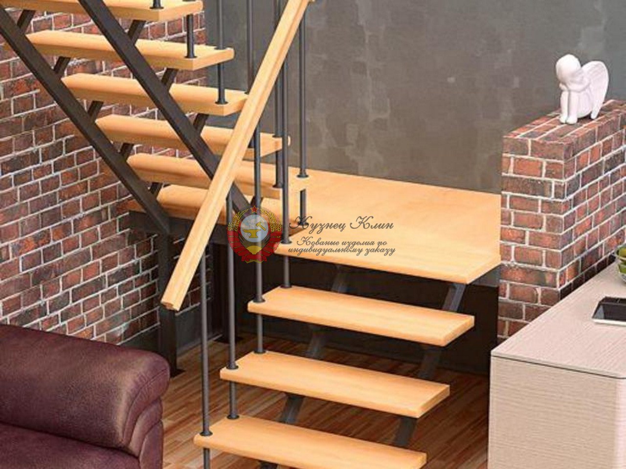 Лестницы на одном косоуре с поворотом на 90 с забежными ступенями