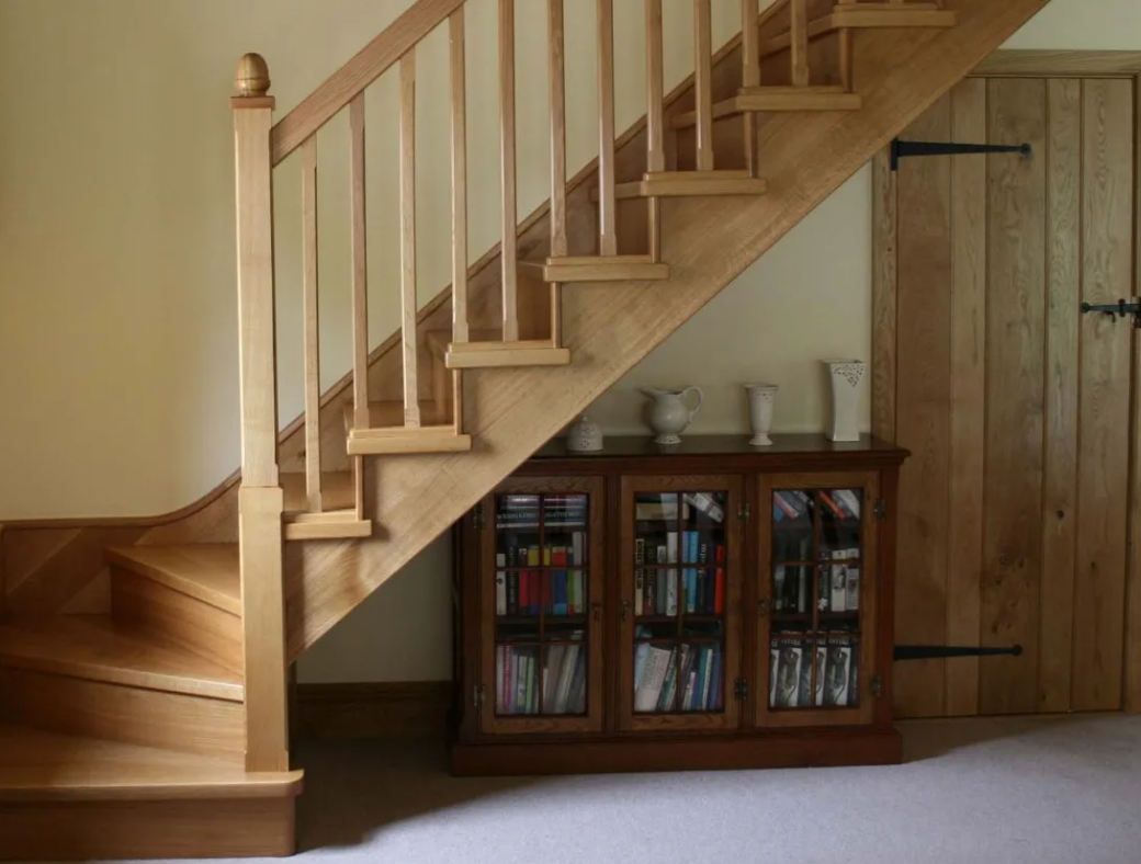 Лестница на второй этаж деревянная с забежными ступенями 90 градусов