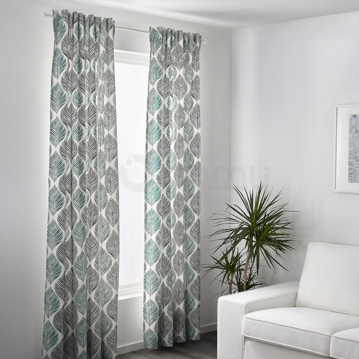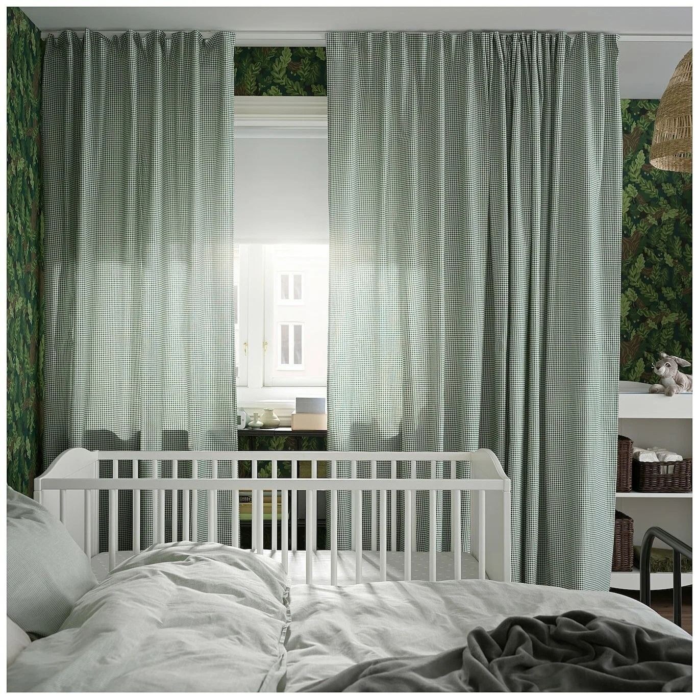 Гардины икеа орденсфли на ленте, 145х300 см, 2 шт., белый/зеленый