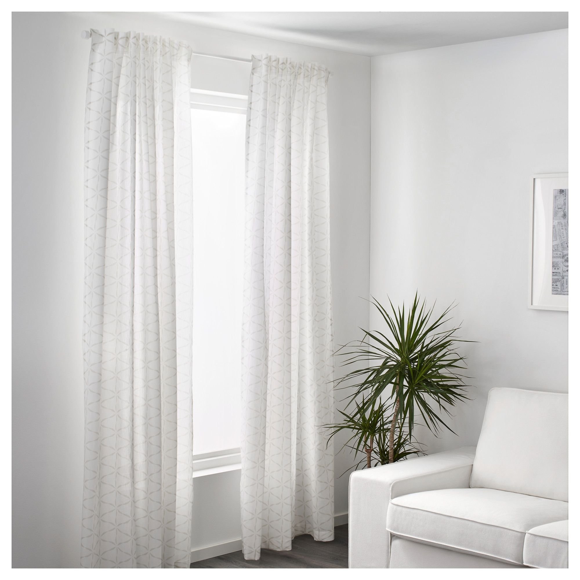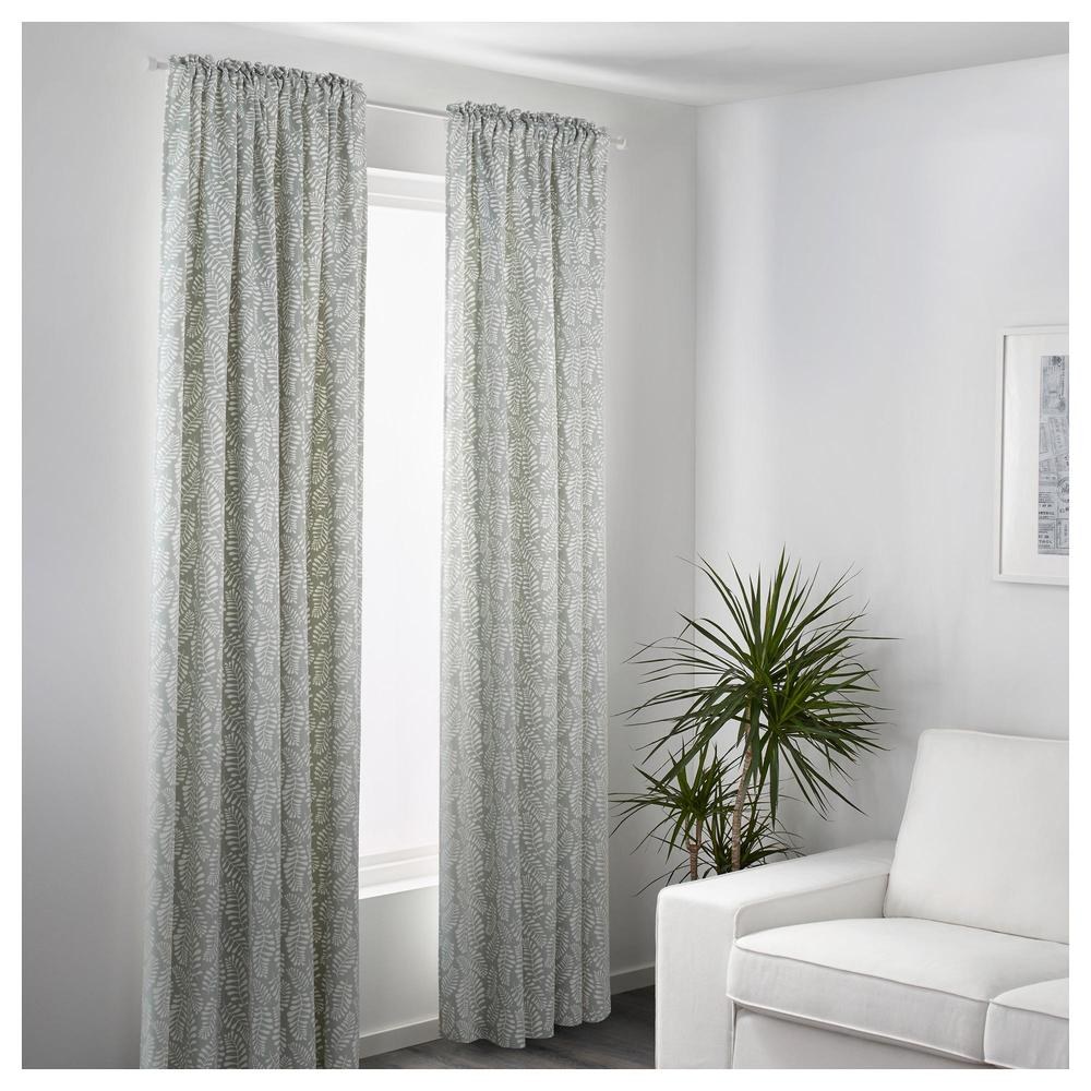 Гардины икеа фьедермотт на ленте, 145х300 см, 2 шт., белый/серо-зеленый
