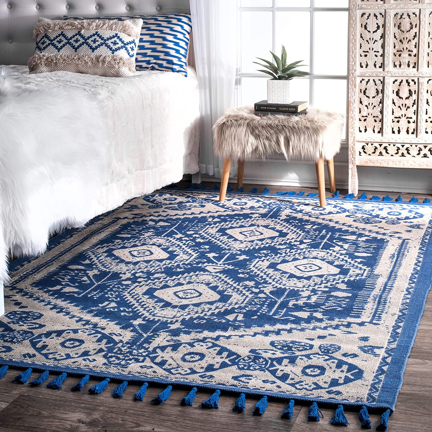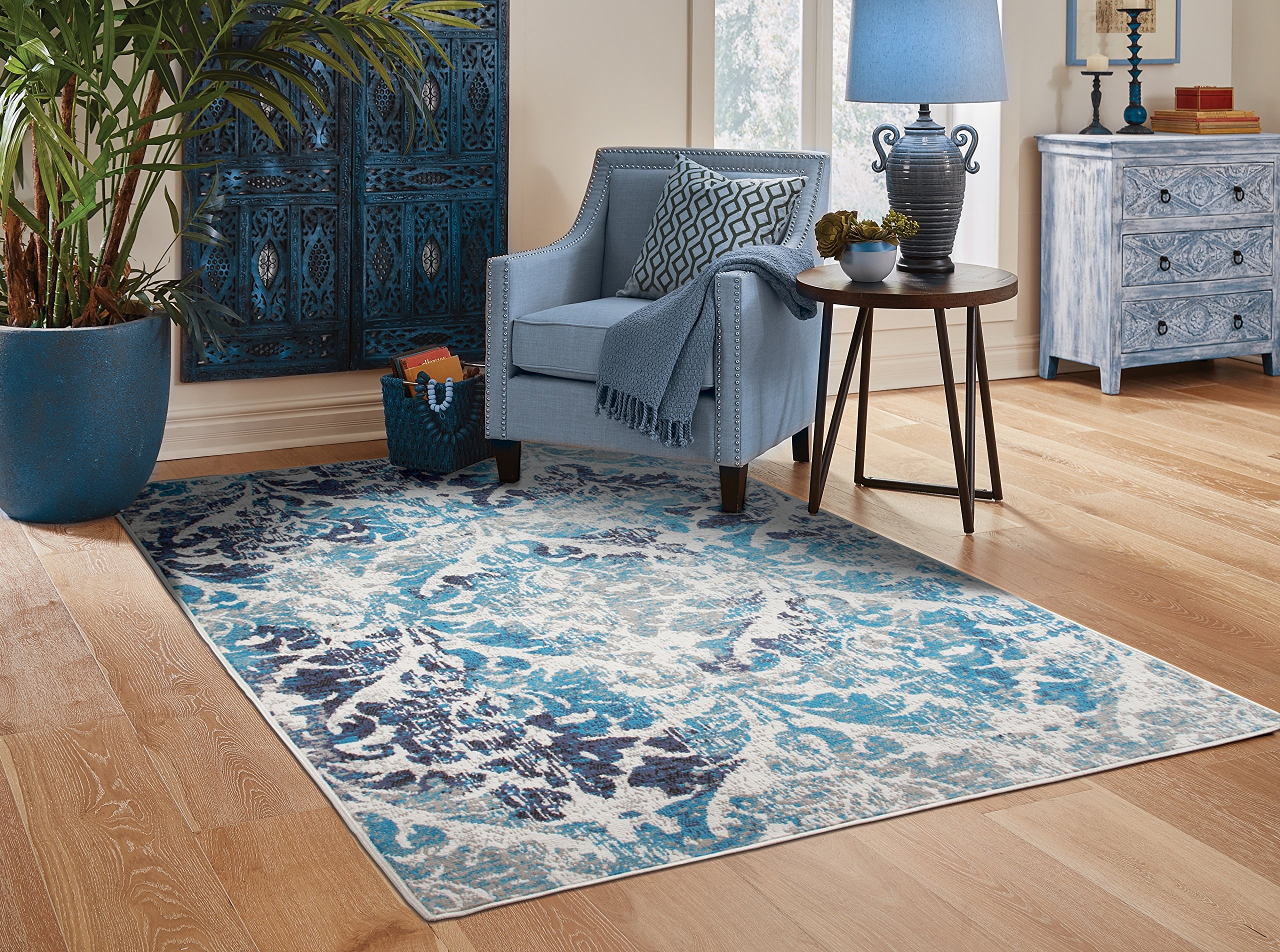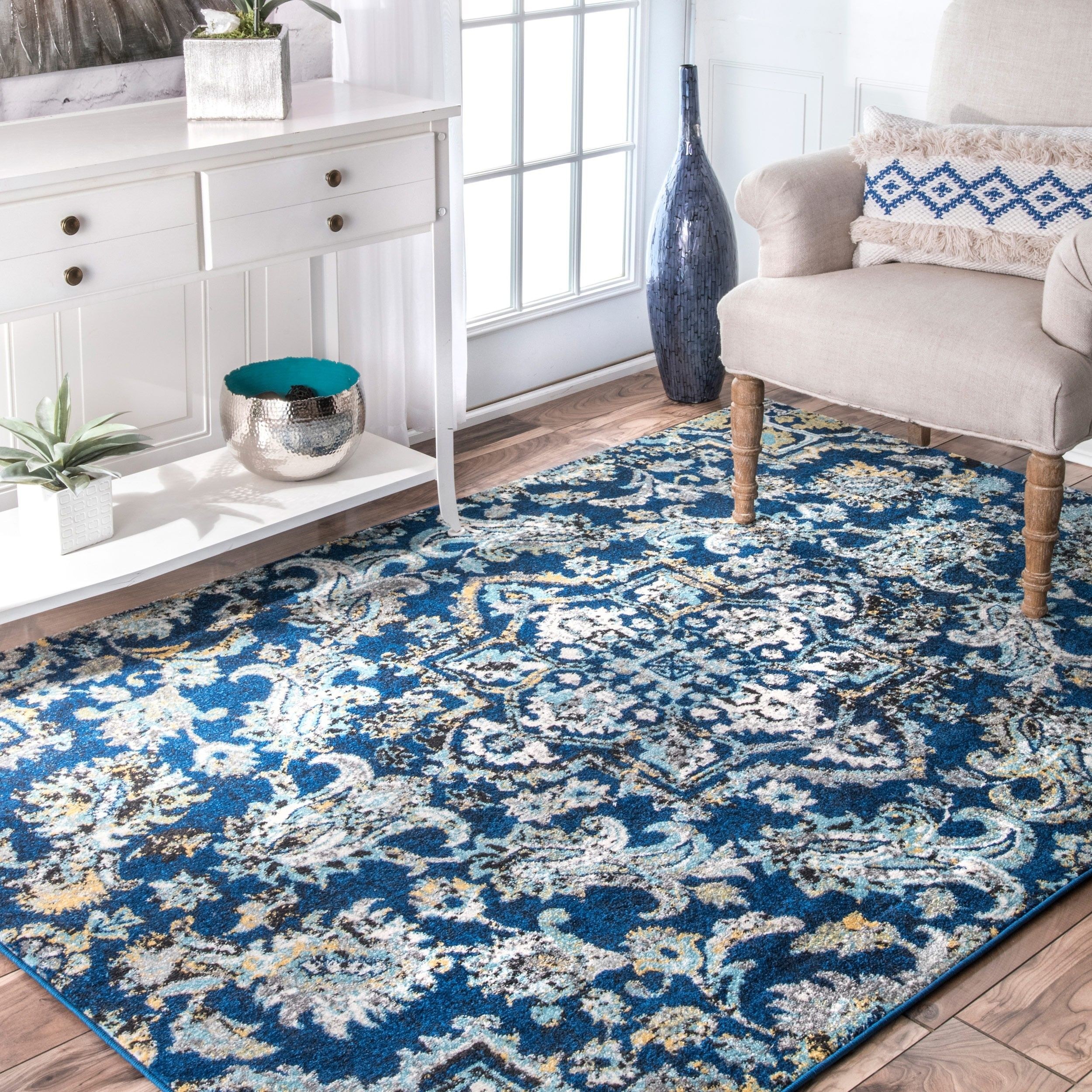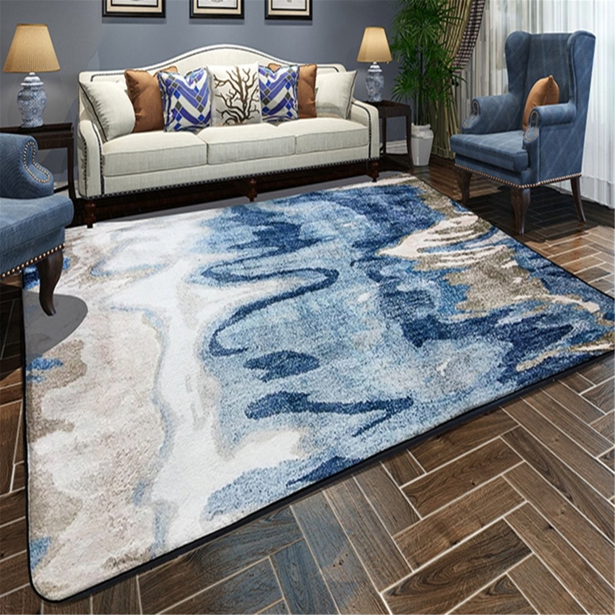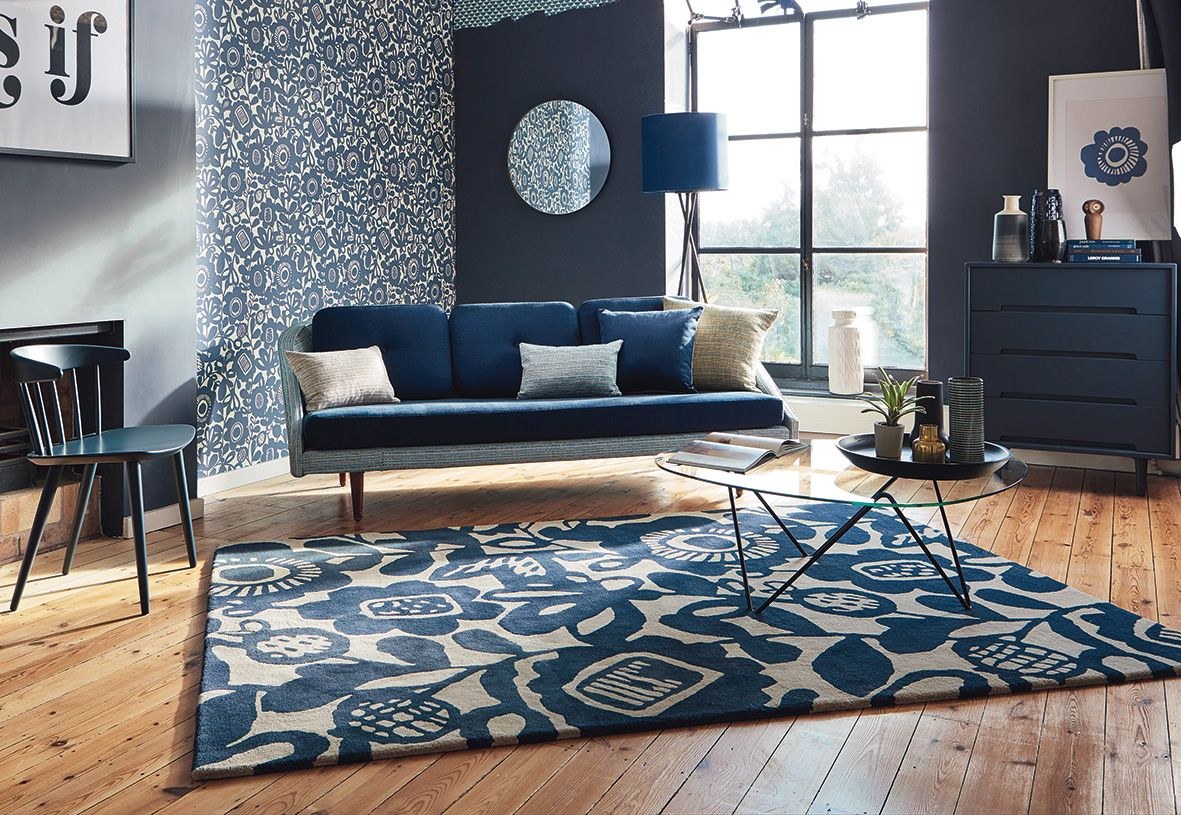 Синий ковер в интерьере (87 фото)