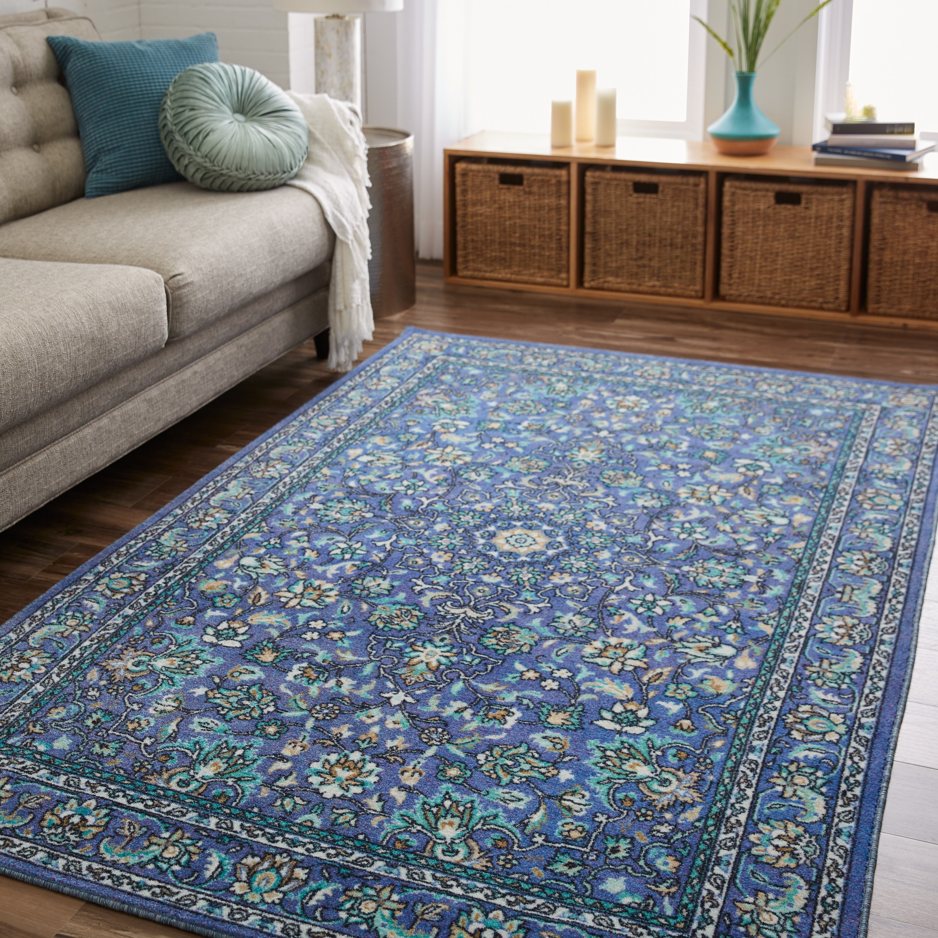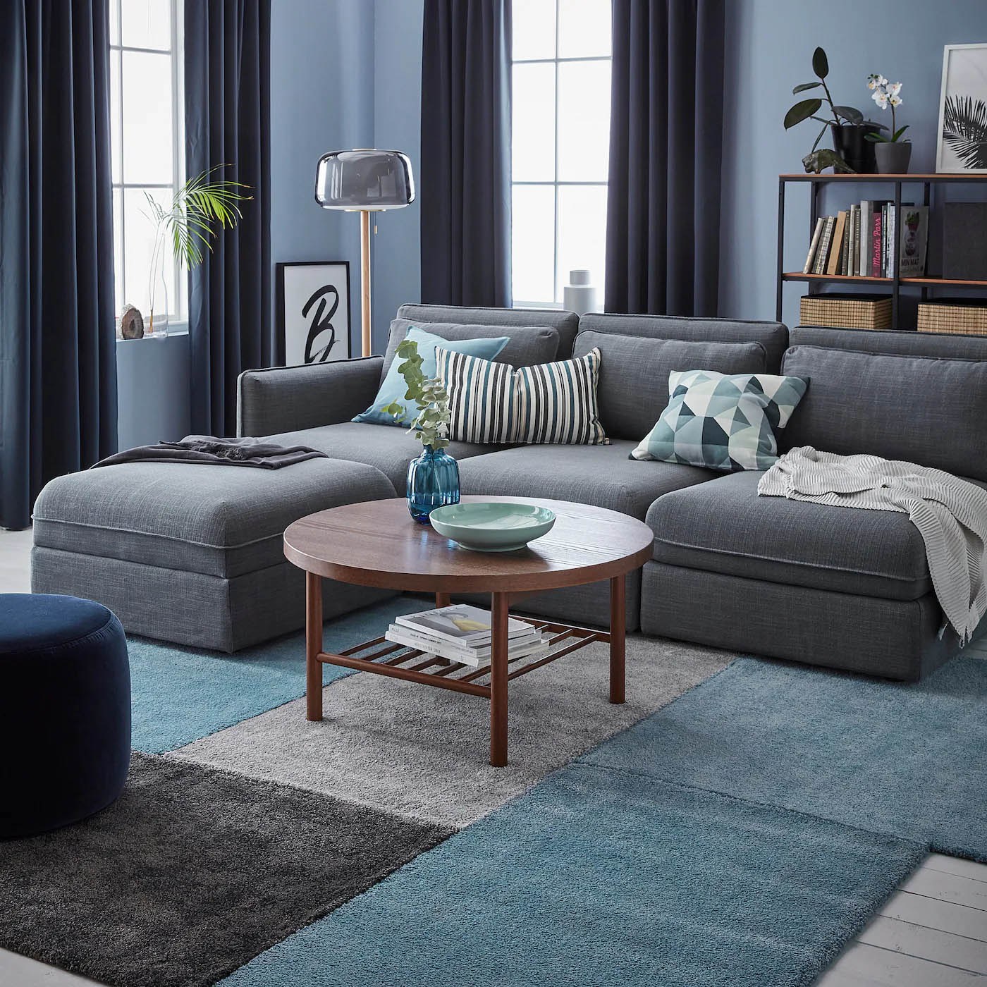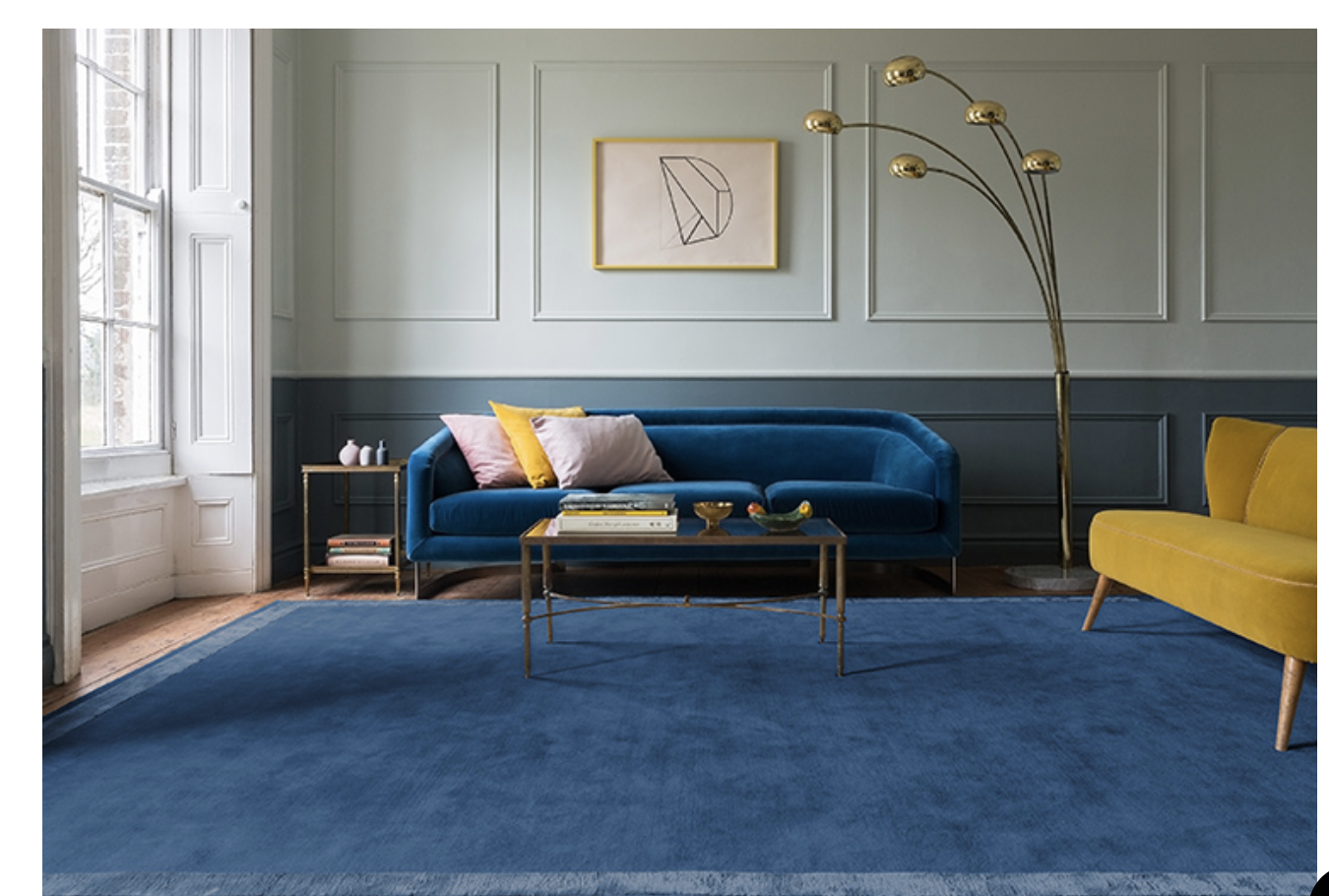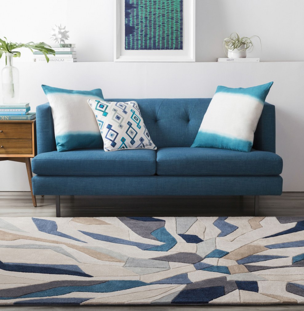 Ковер под синий диван