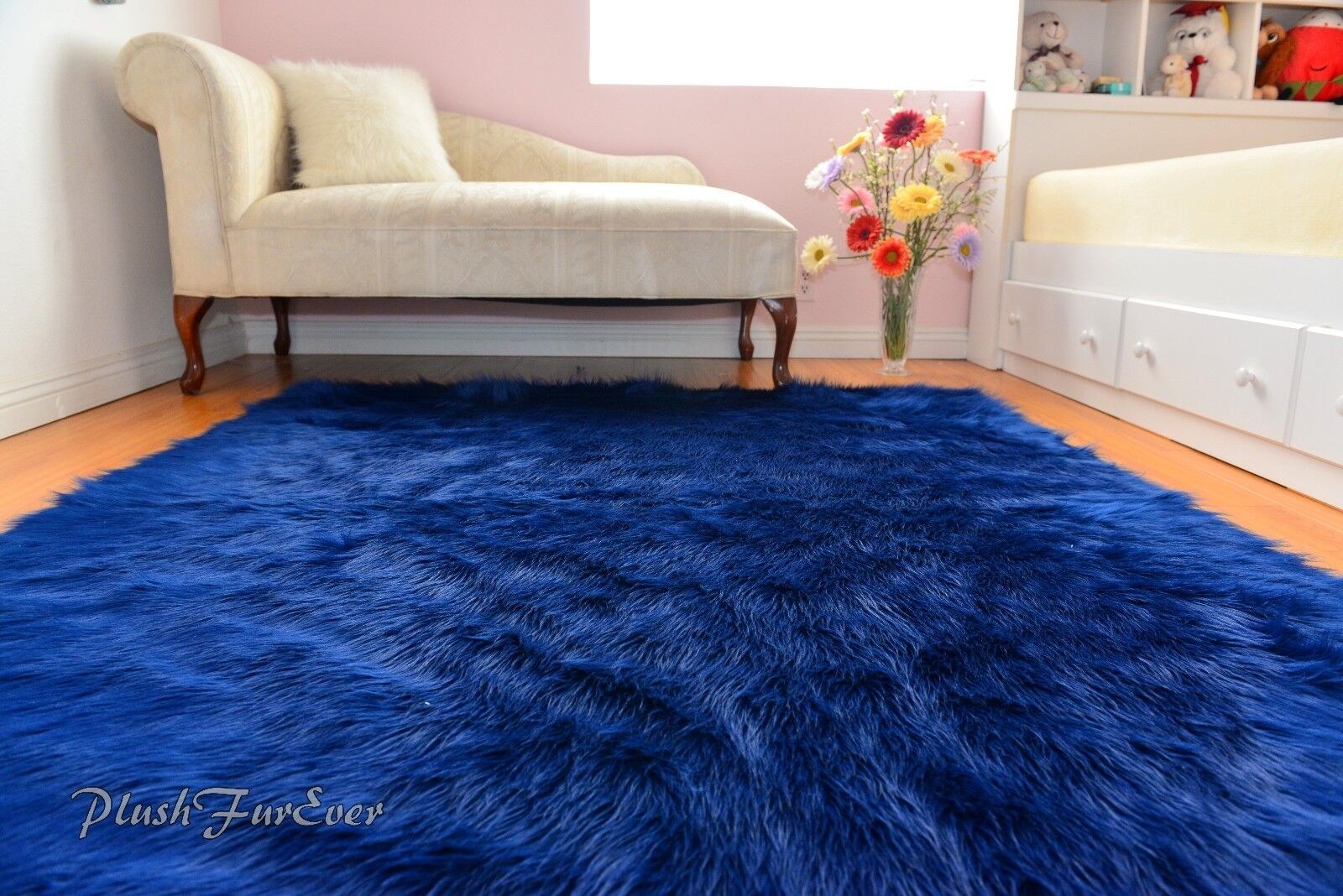Пушистый коврик синий
