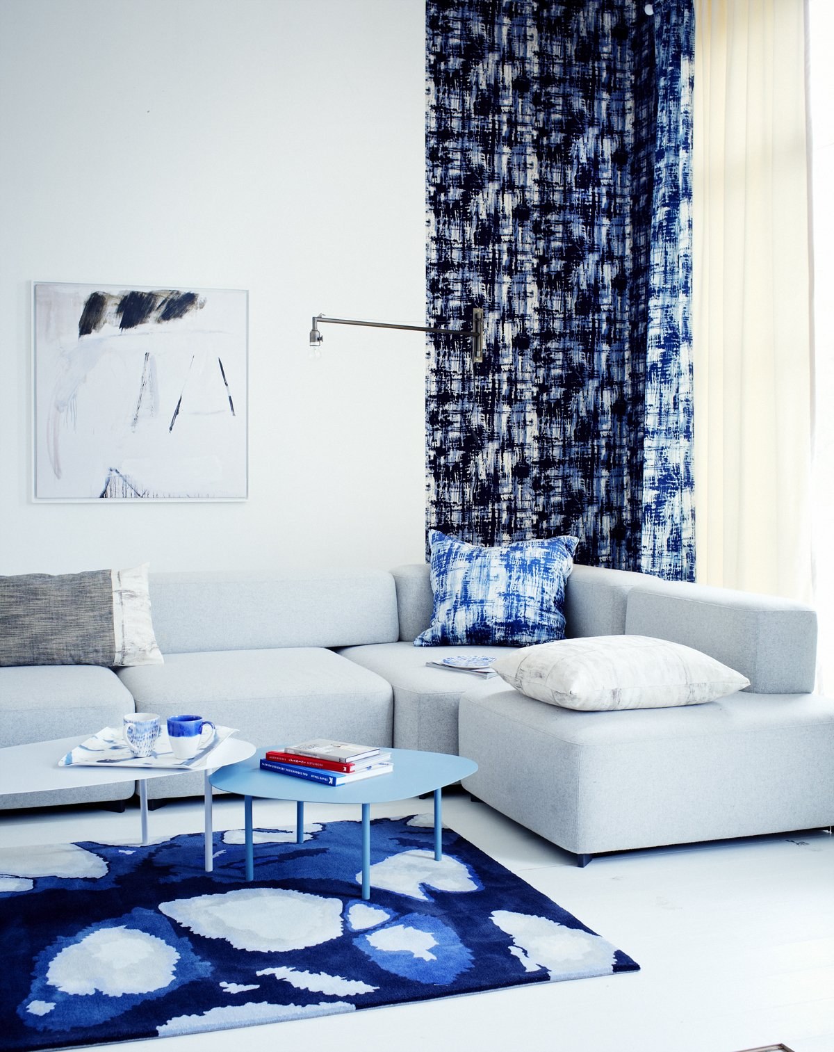 Бело синий интерьер гостиной
