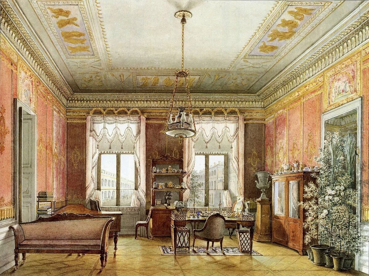 Николай Тихобразов «интерьер в имении Лопухиных» (1844)