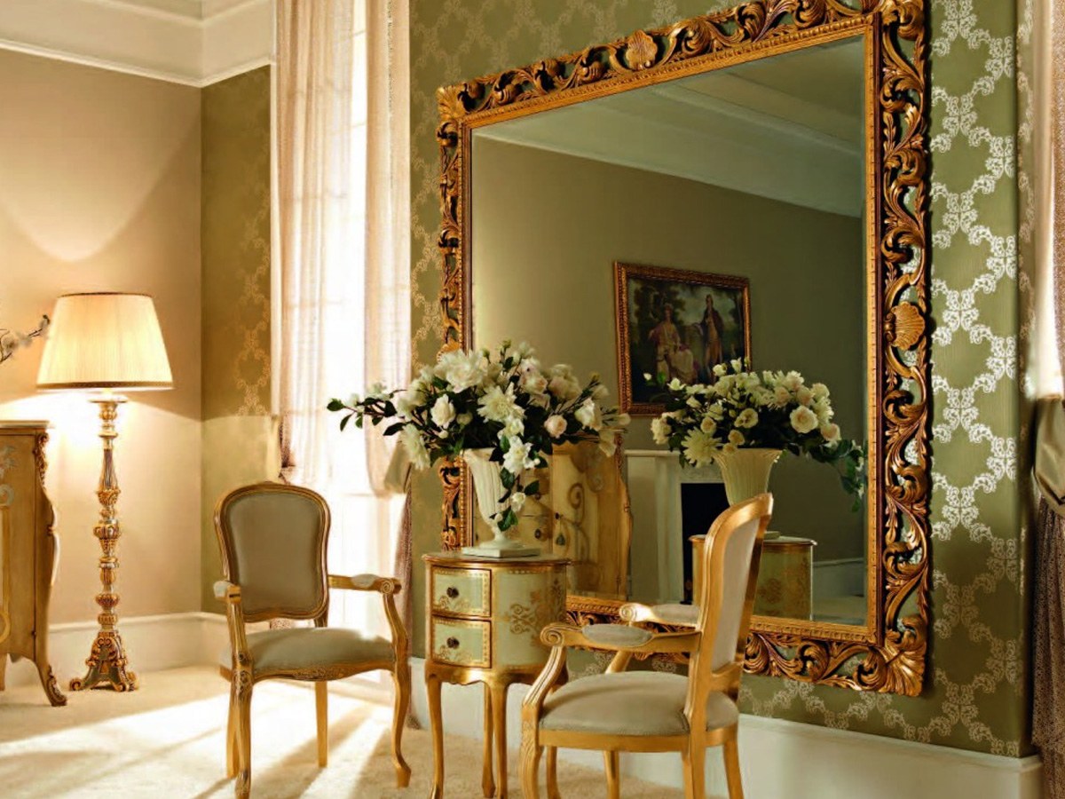Золотое зеркало в интерьере с чем сочетается (95 фото)