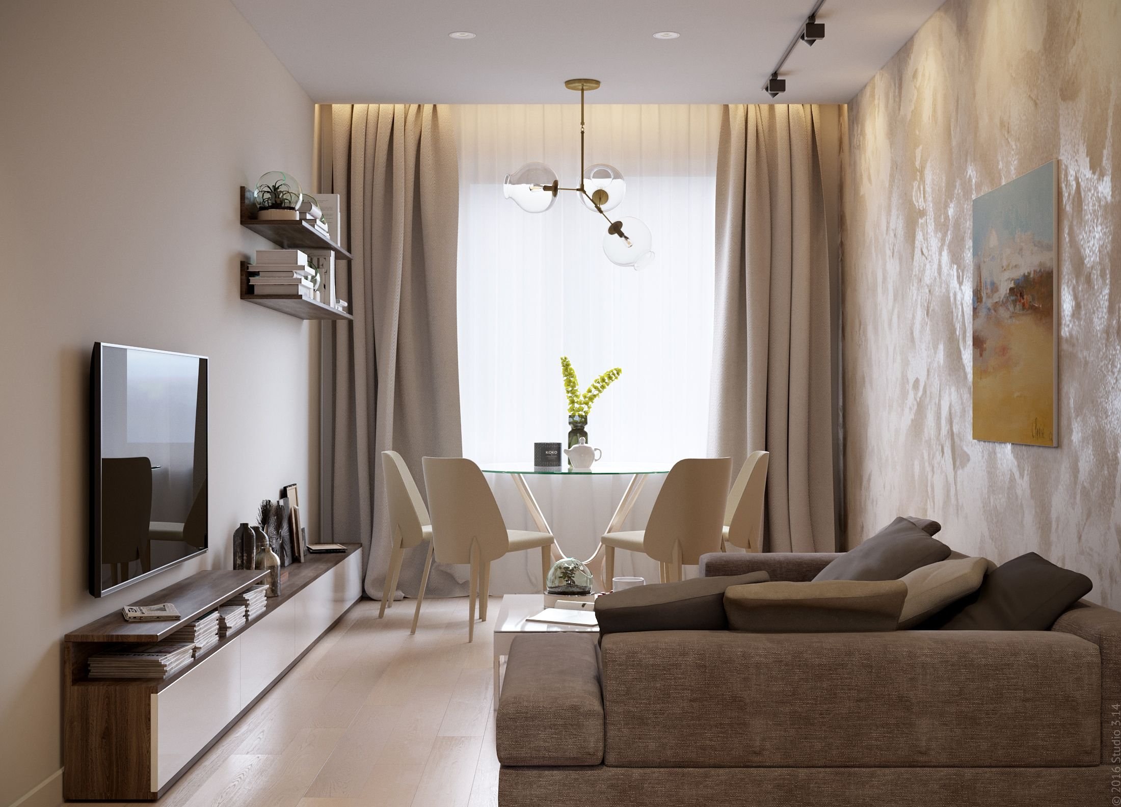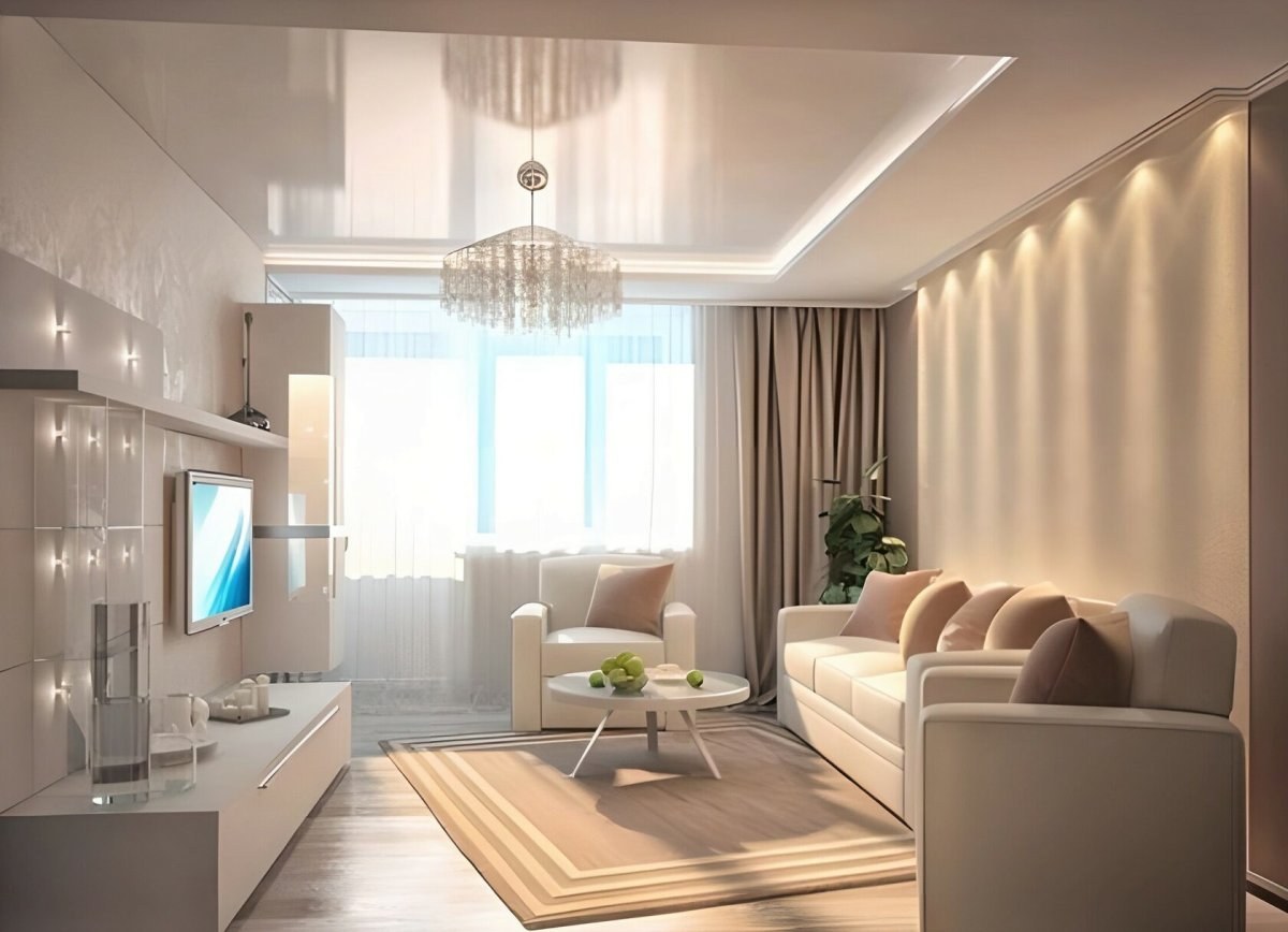 Интерьер зала в светлых тонах