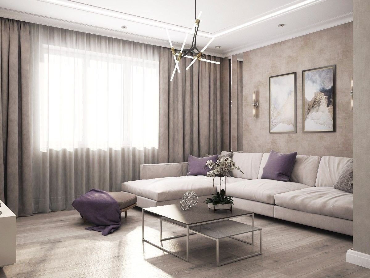 Гостиная в бежево сиреневых тонах