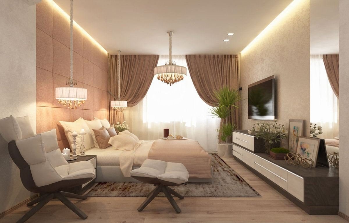 Спальня гостиная в бежевых тонах