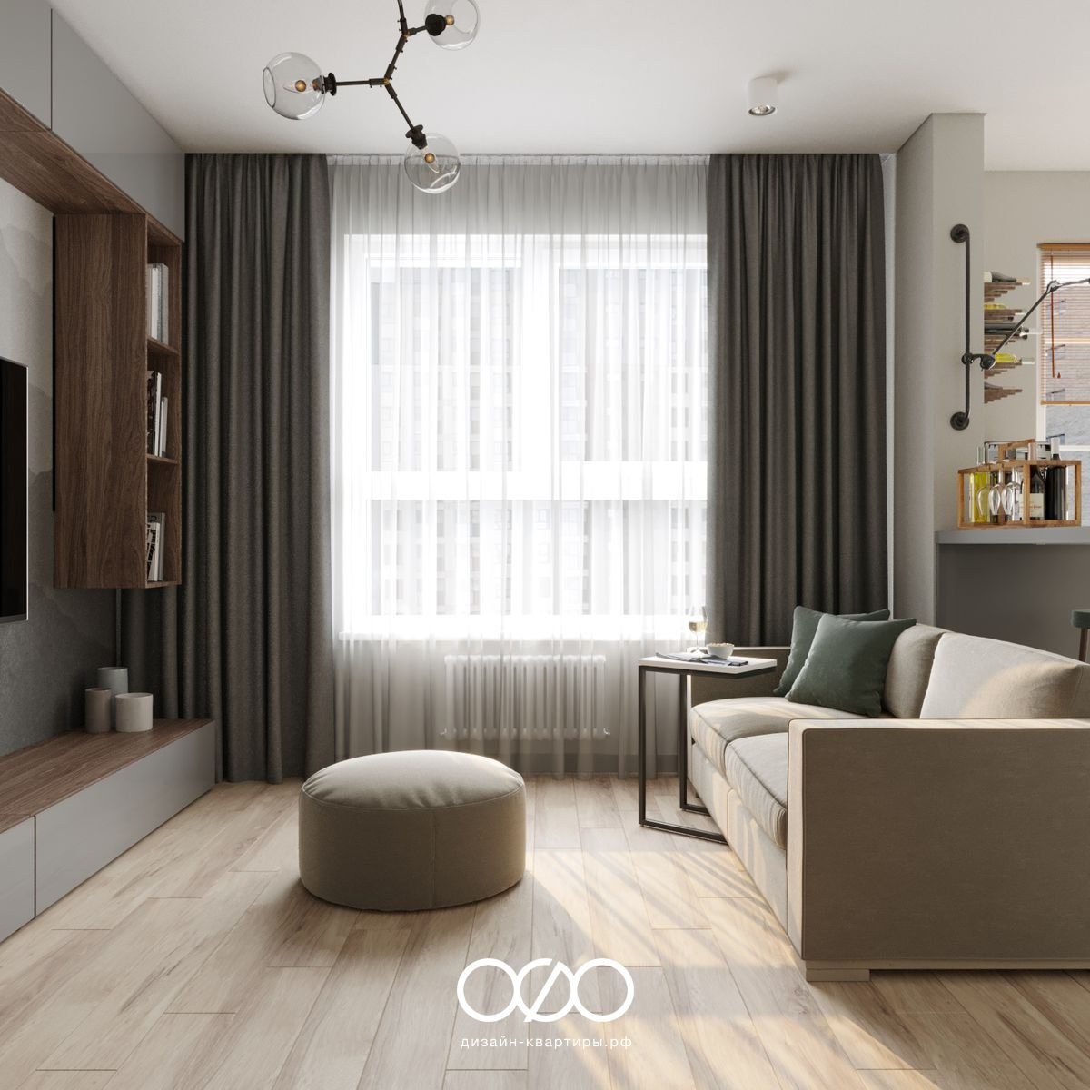 Гостиная в бежево серых тонах