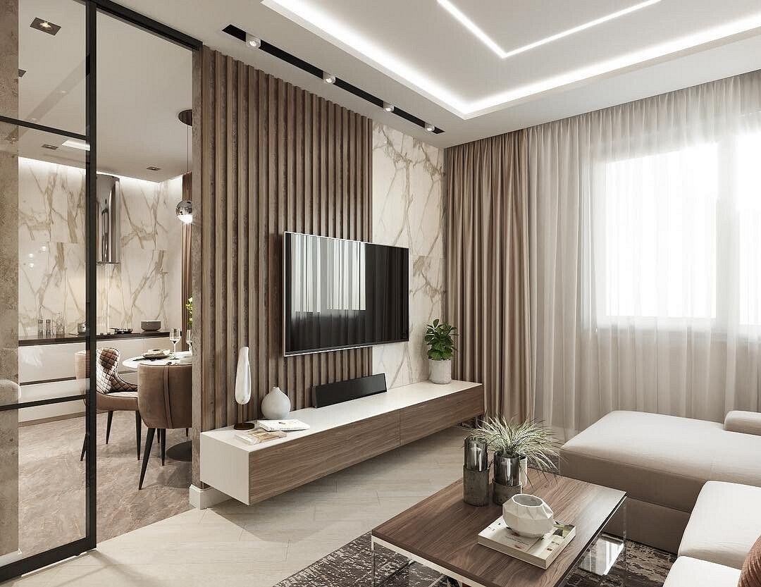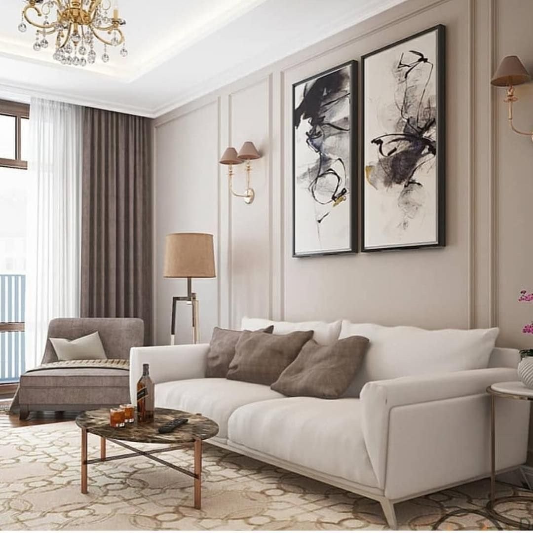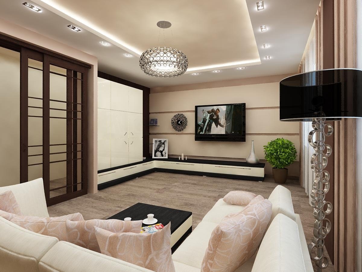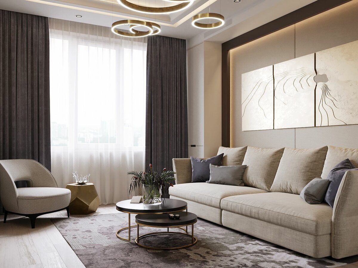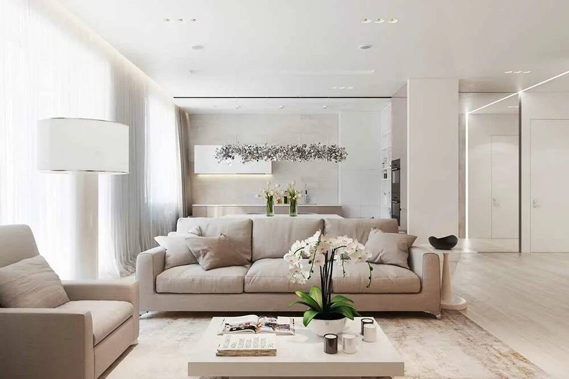 Бежевая гостиная в современном стиле (98 фото)
