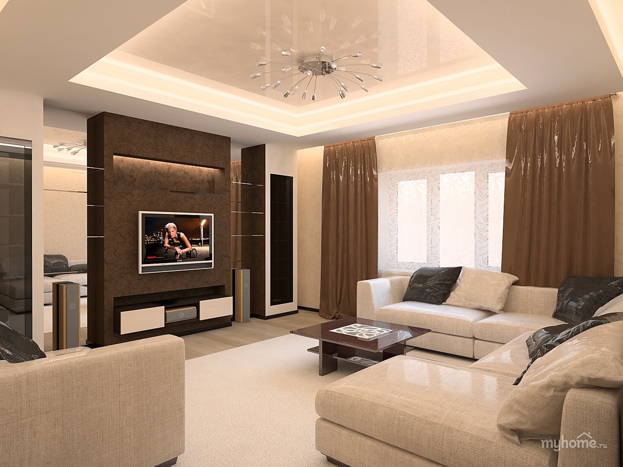 Интерьер гостиной в коричнево-бежевых тонах