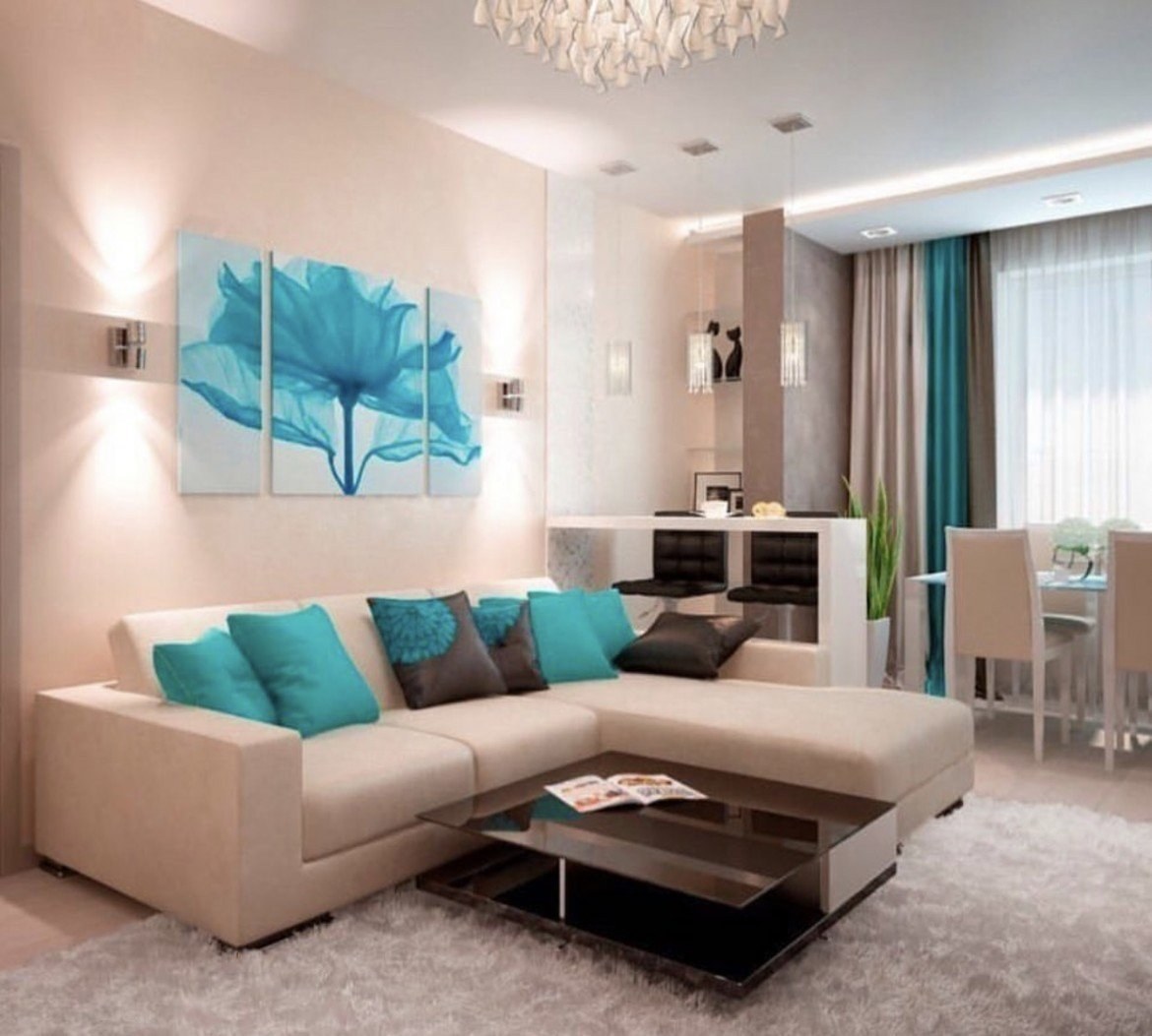Гостиная в бирюзовых тонах