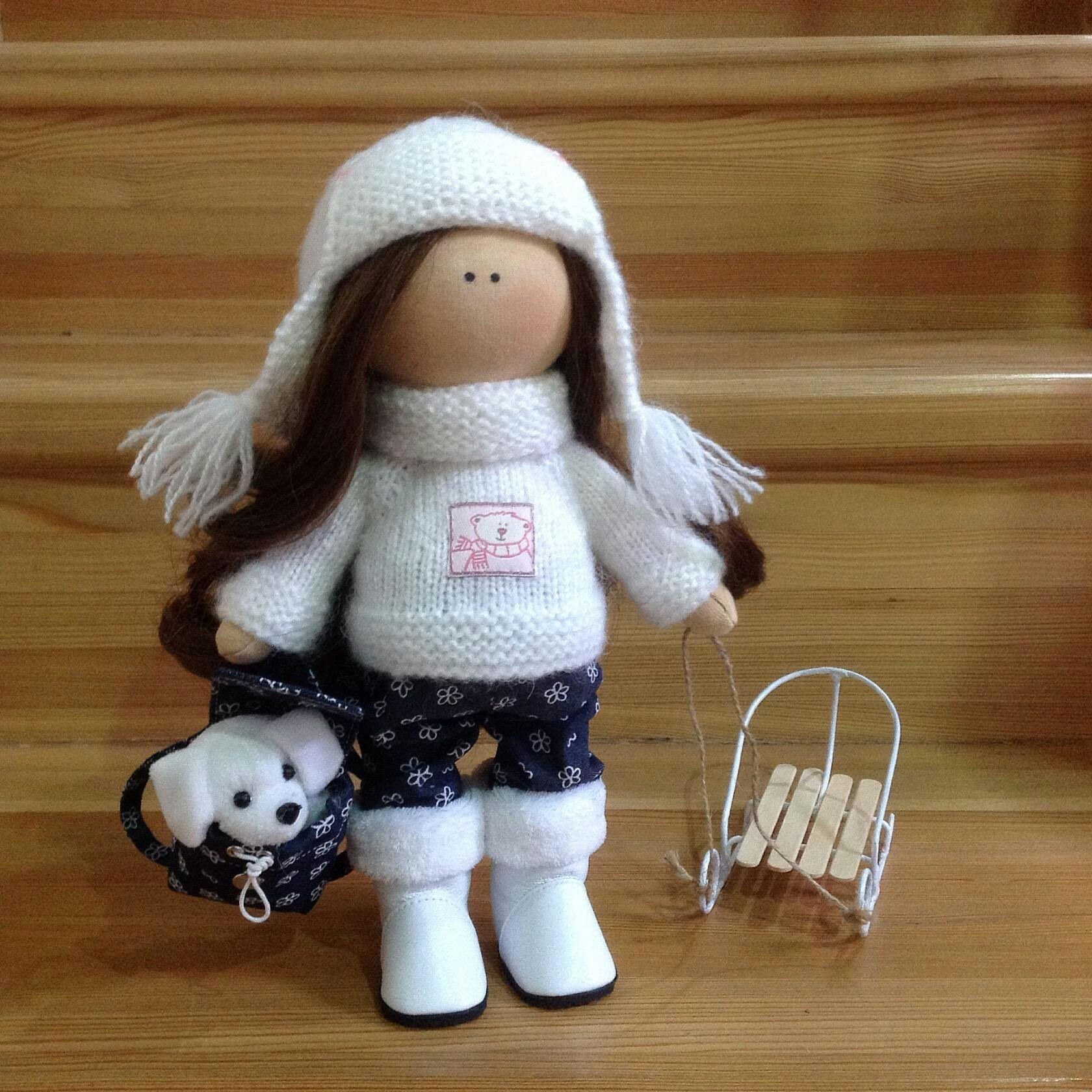 Текстильная кукла Снежка