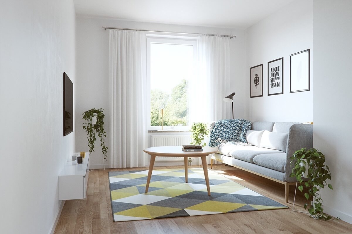 Интерьер прямоугольной комнаты