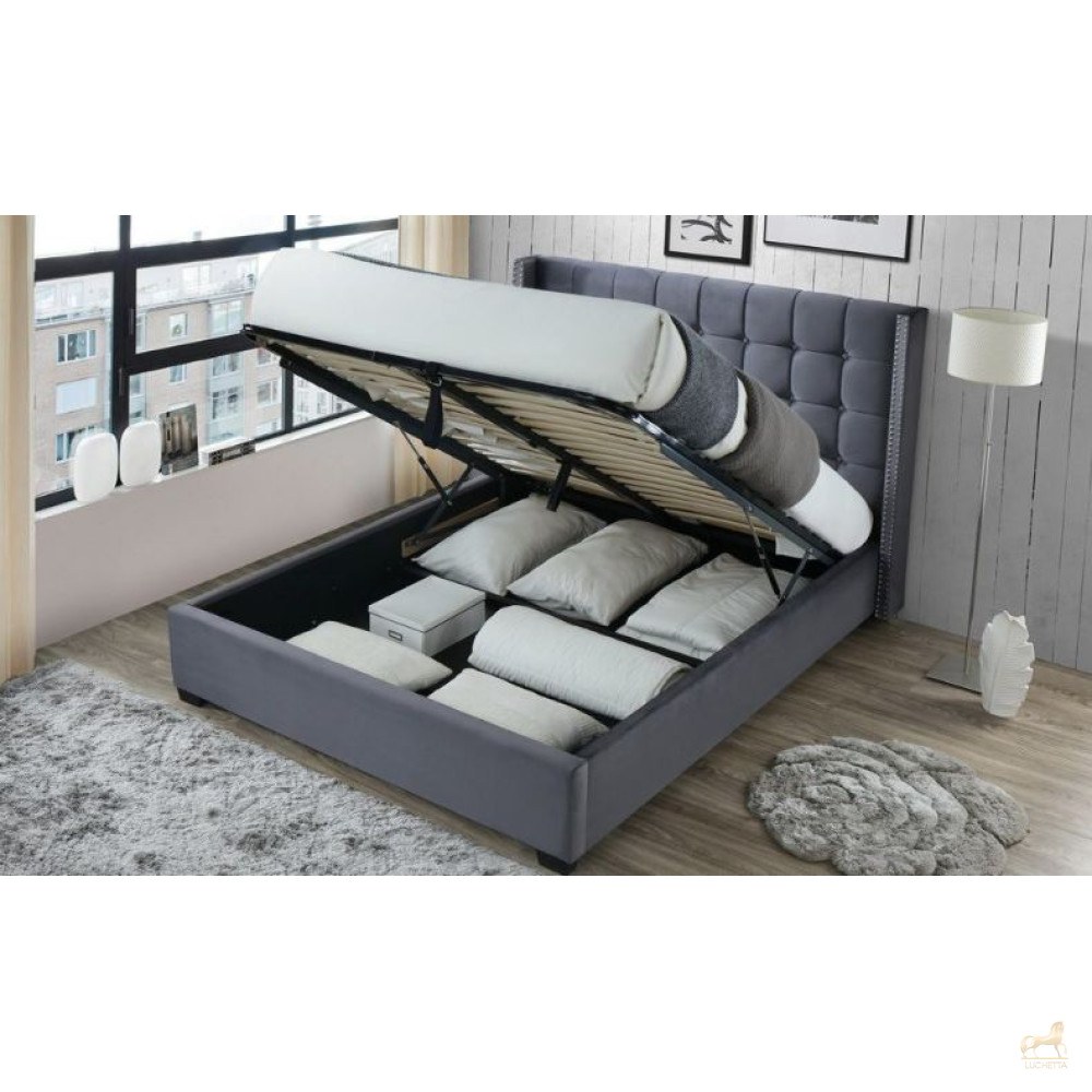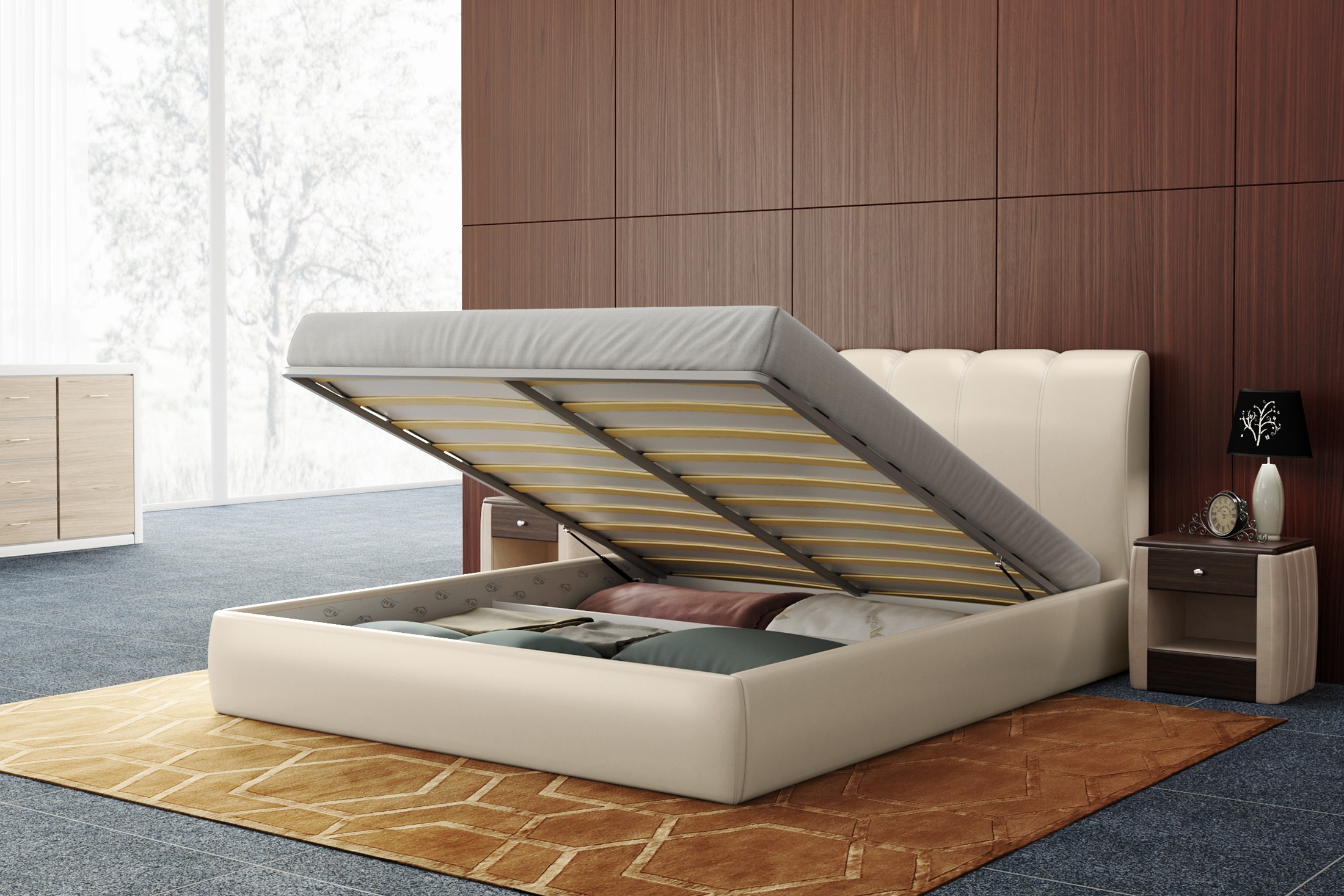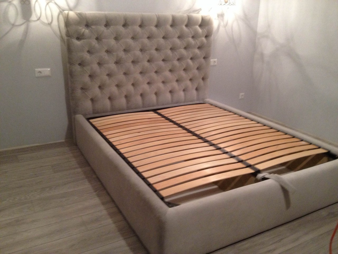 Кровать с подъемным механизмом с изголовьем ткань (87 фото)