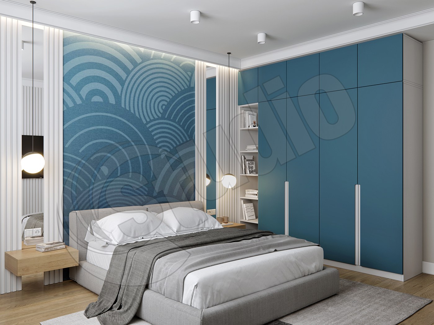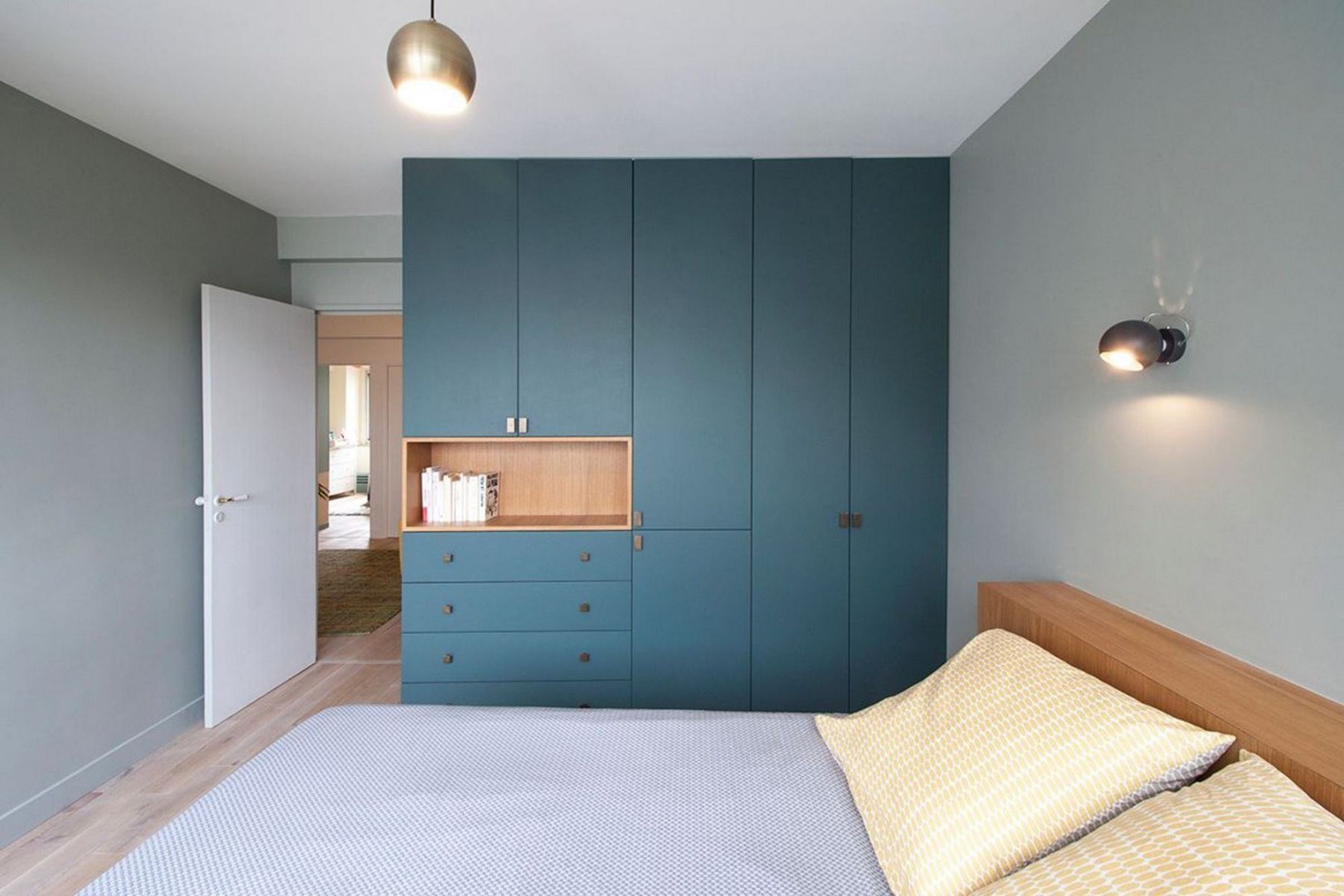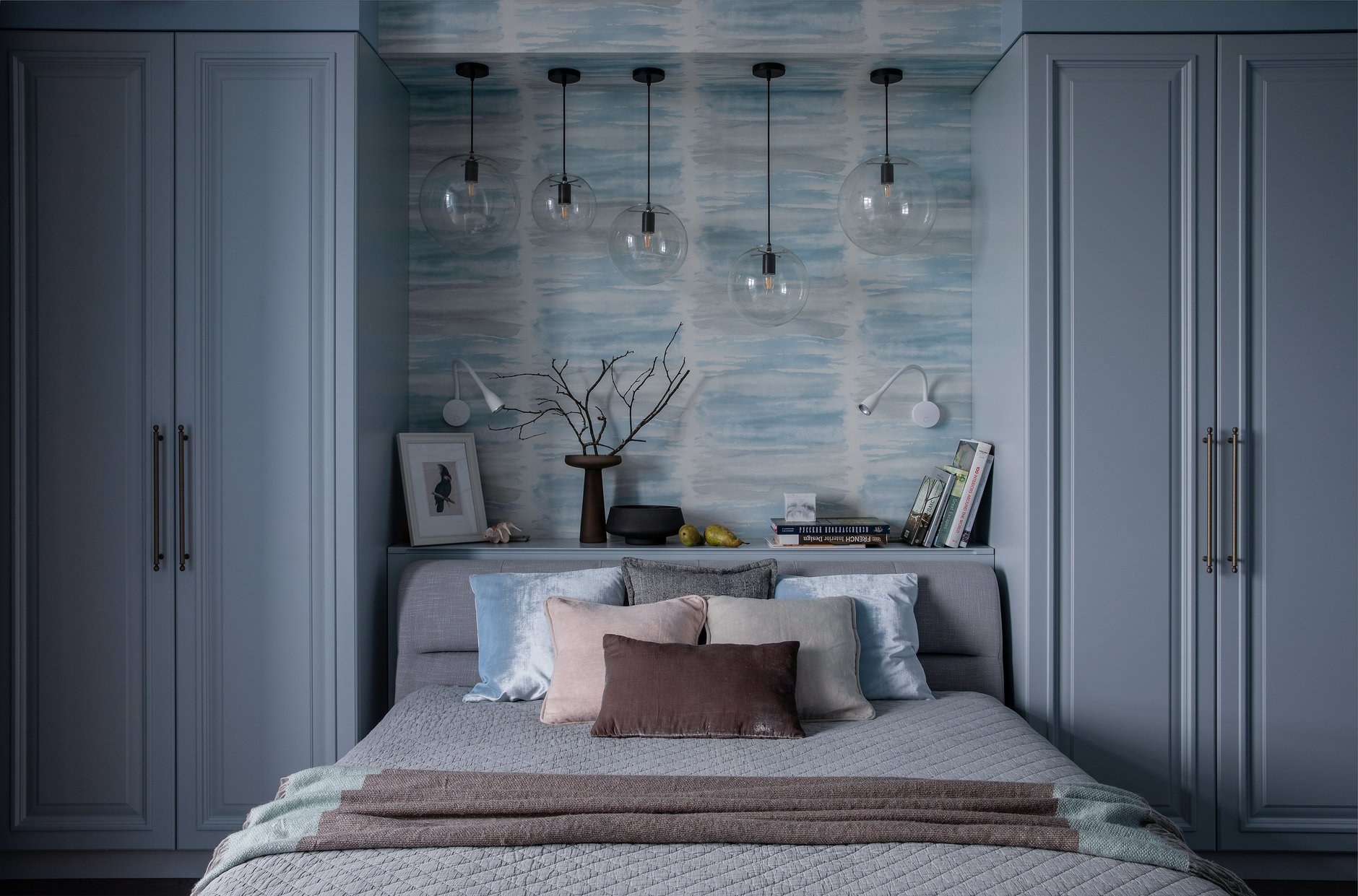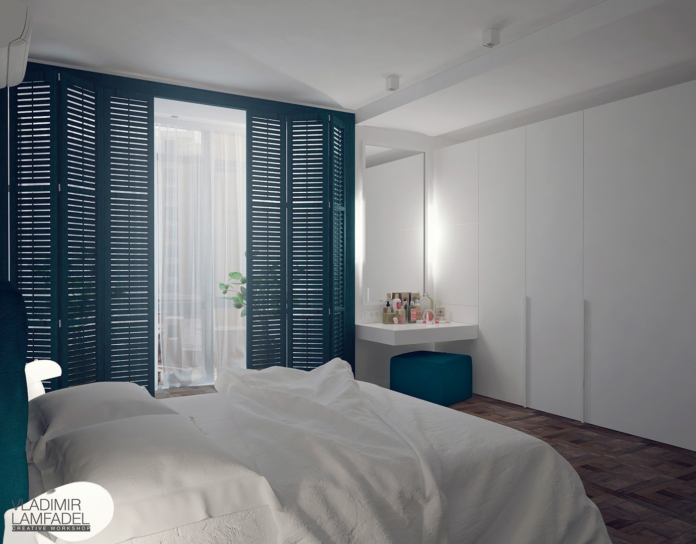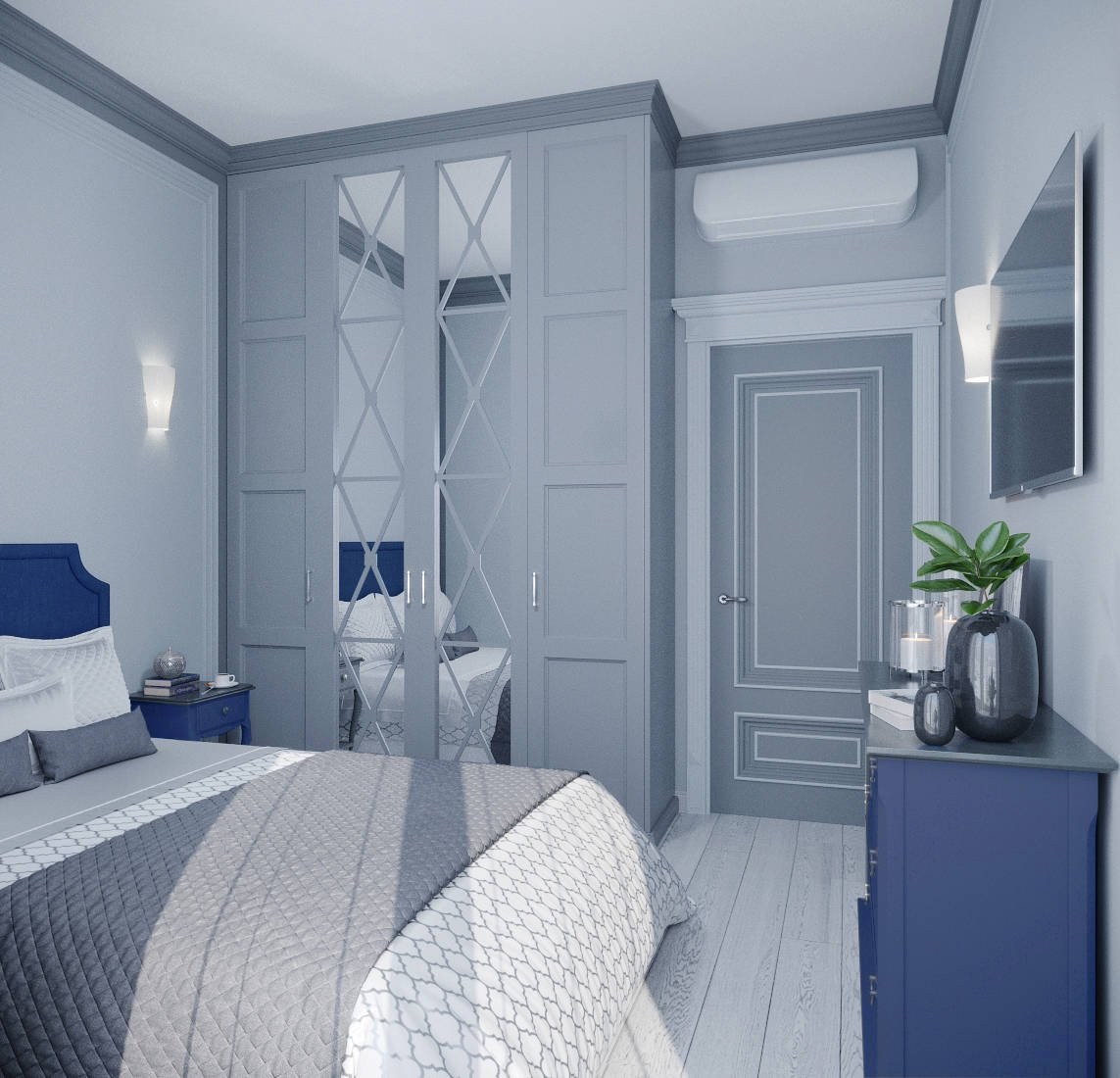 Шкаф с жалюзийными дверцами в интерьере спальни