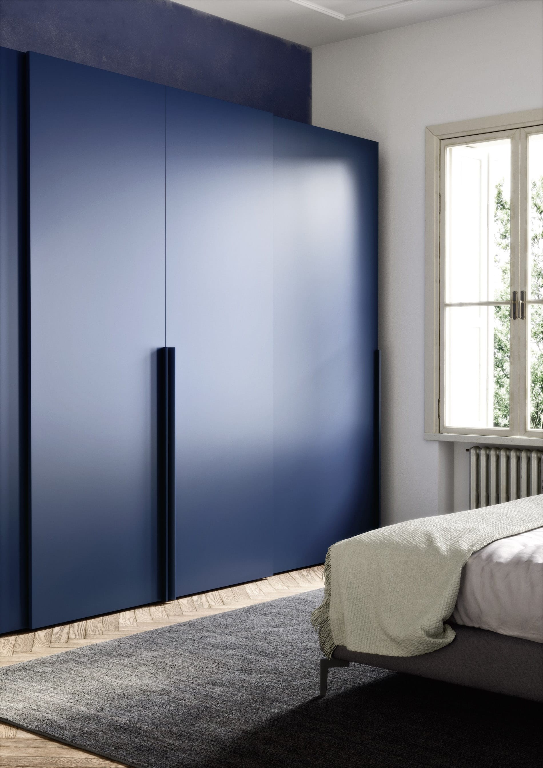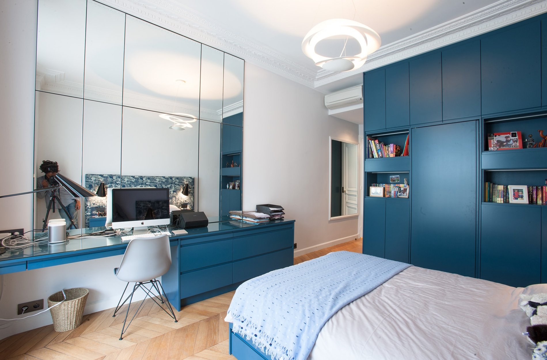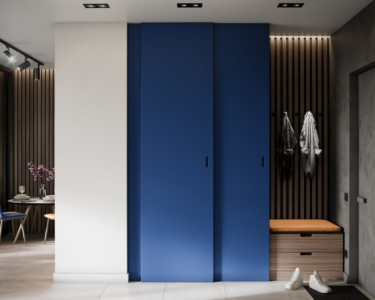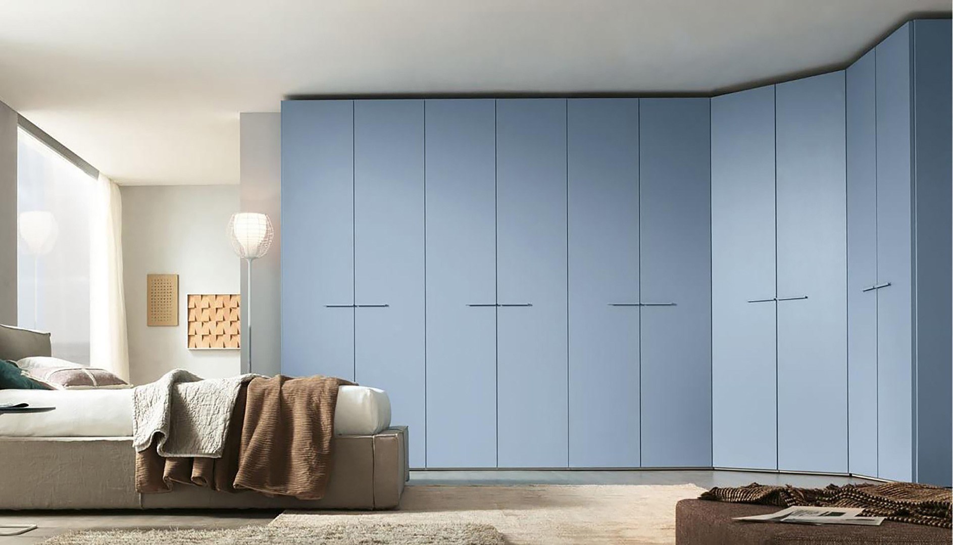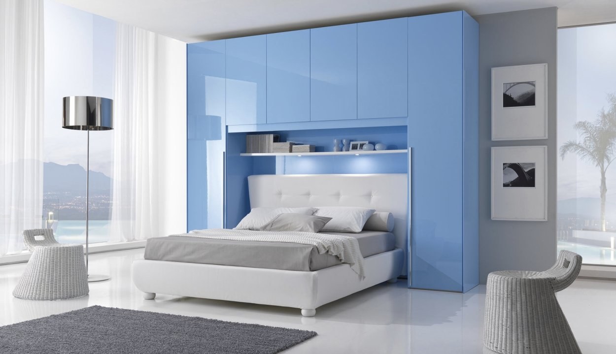 Шкаф с жалюзийными дверцами в интерьере спальни